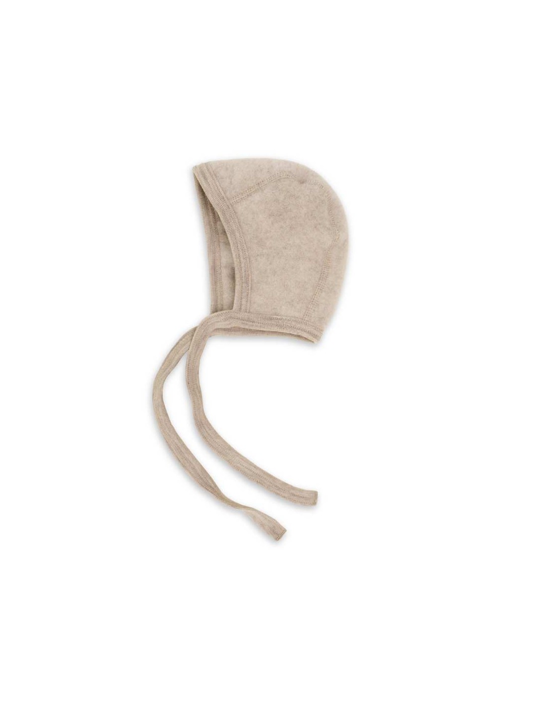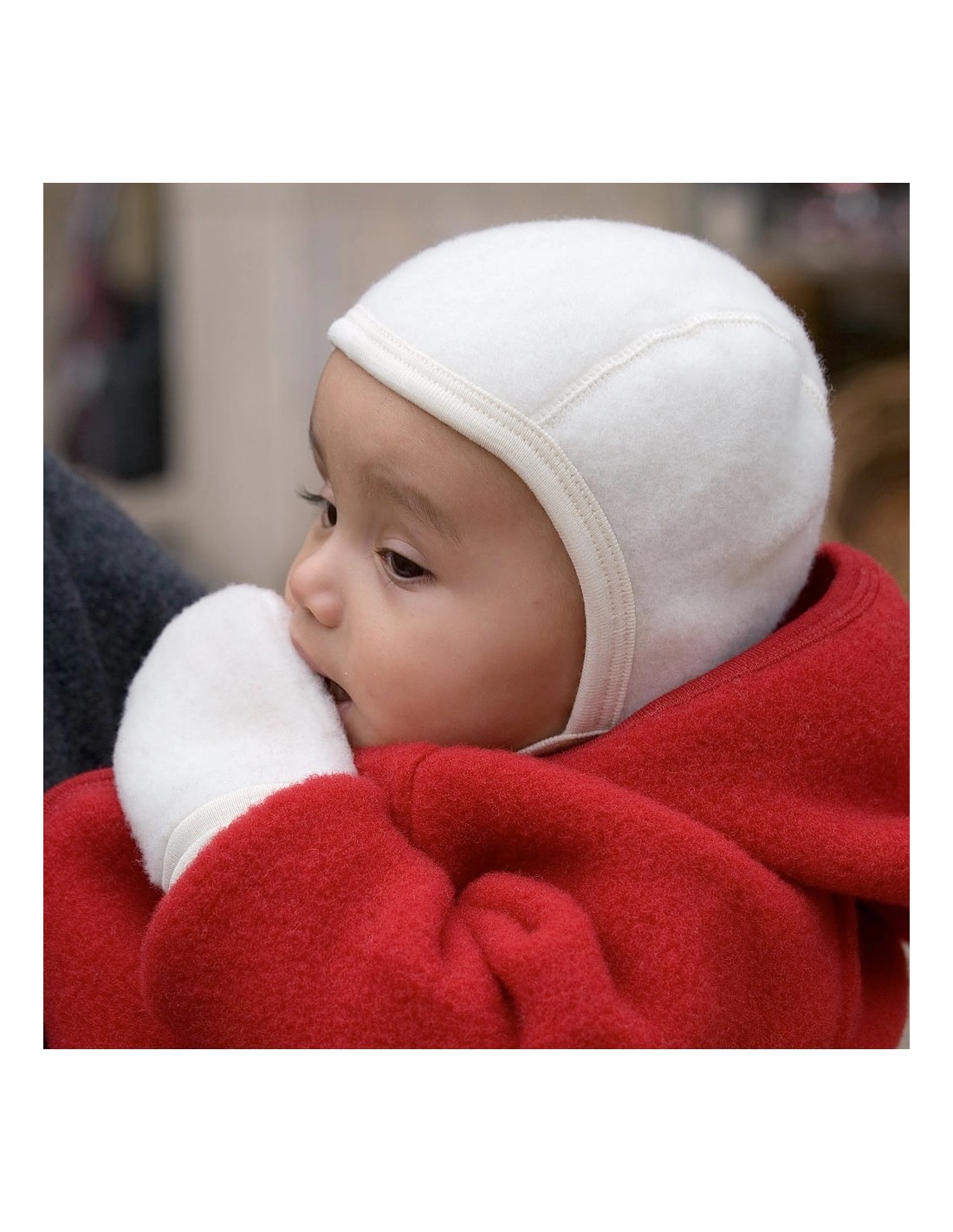 Morbidissima e calda cuffietta Baby realizzata in felpa di Pura Lana vergine Biologica.