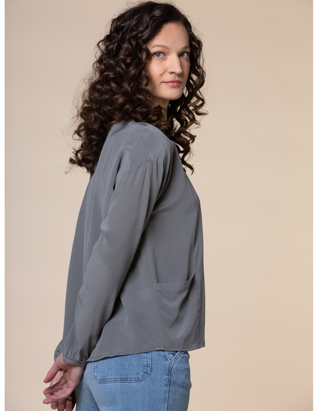 Bellissima Blusa in Pura Seta, con scollo a goccia e taschina laterale. Finitura opaca, vestibilità scivolata.