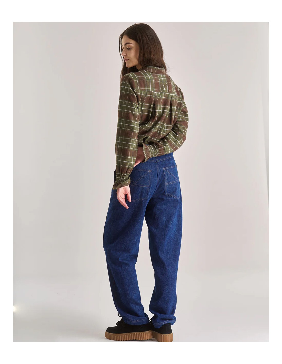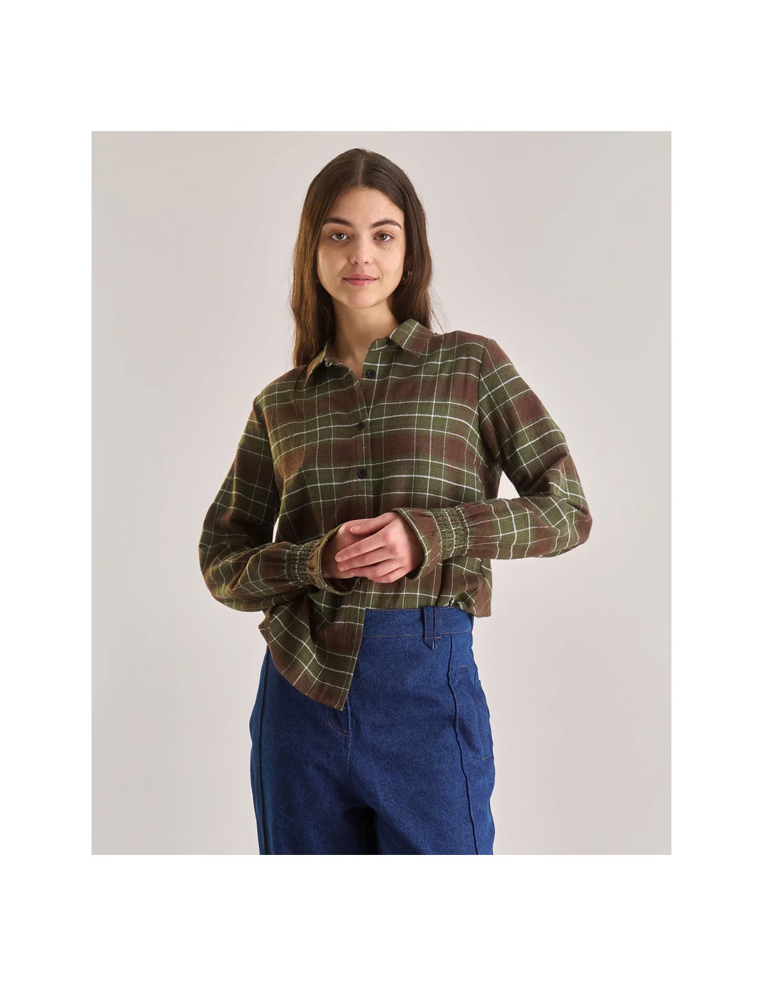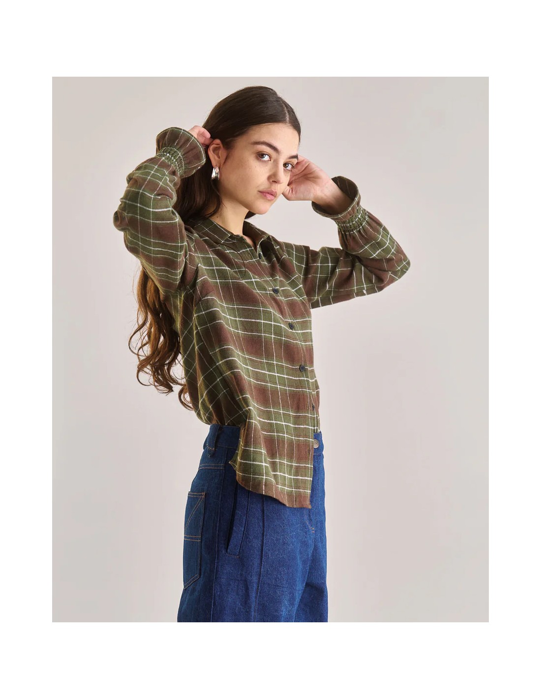 Il motivo a quadretti verdi è fresco, versatile e ideale per tutti i giorni. La vestibilità è regular, segue il corpo con naturalezza e permette di muoversi comode in ogni momento. Perfetta da sola, sopra una canotta in cotone o sotto un cardigan nelle mezze stagioni.