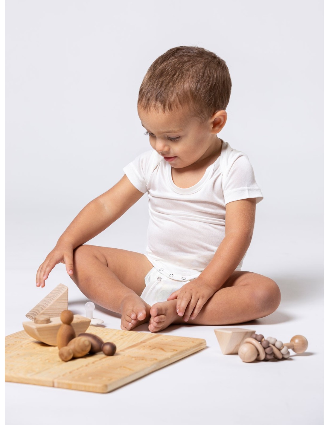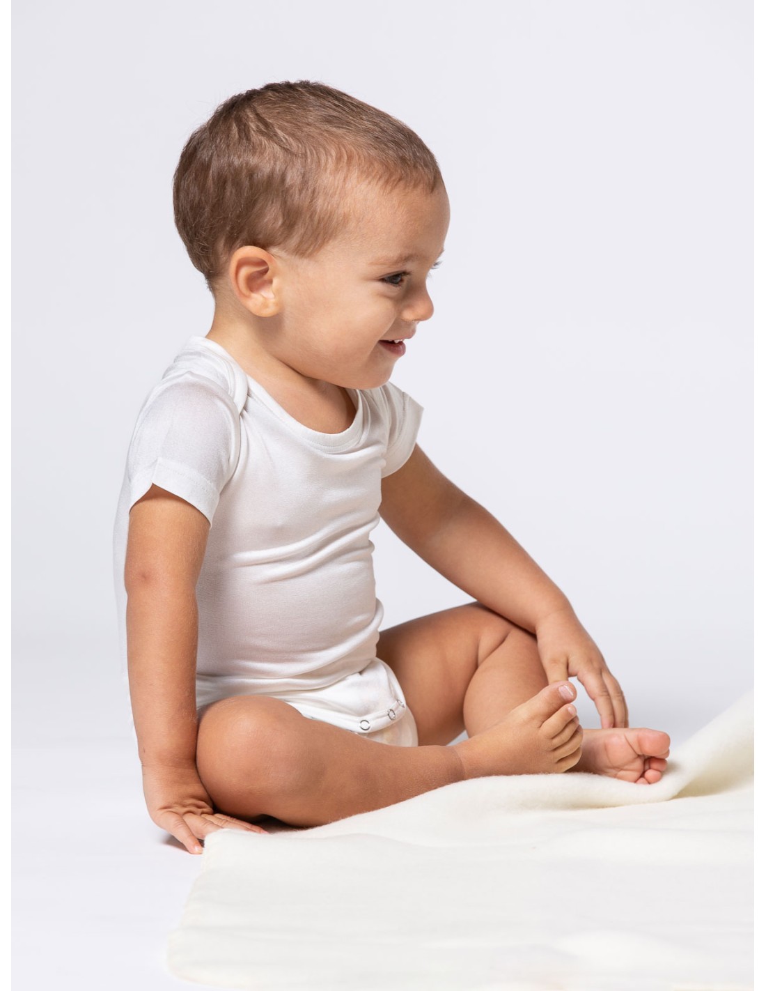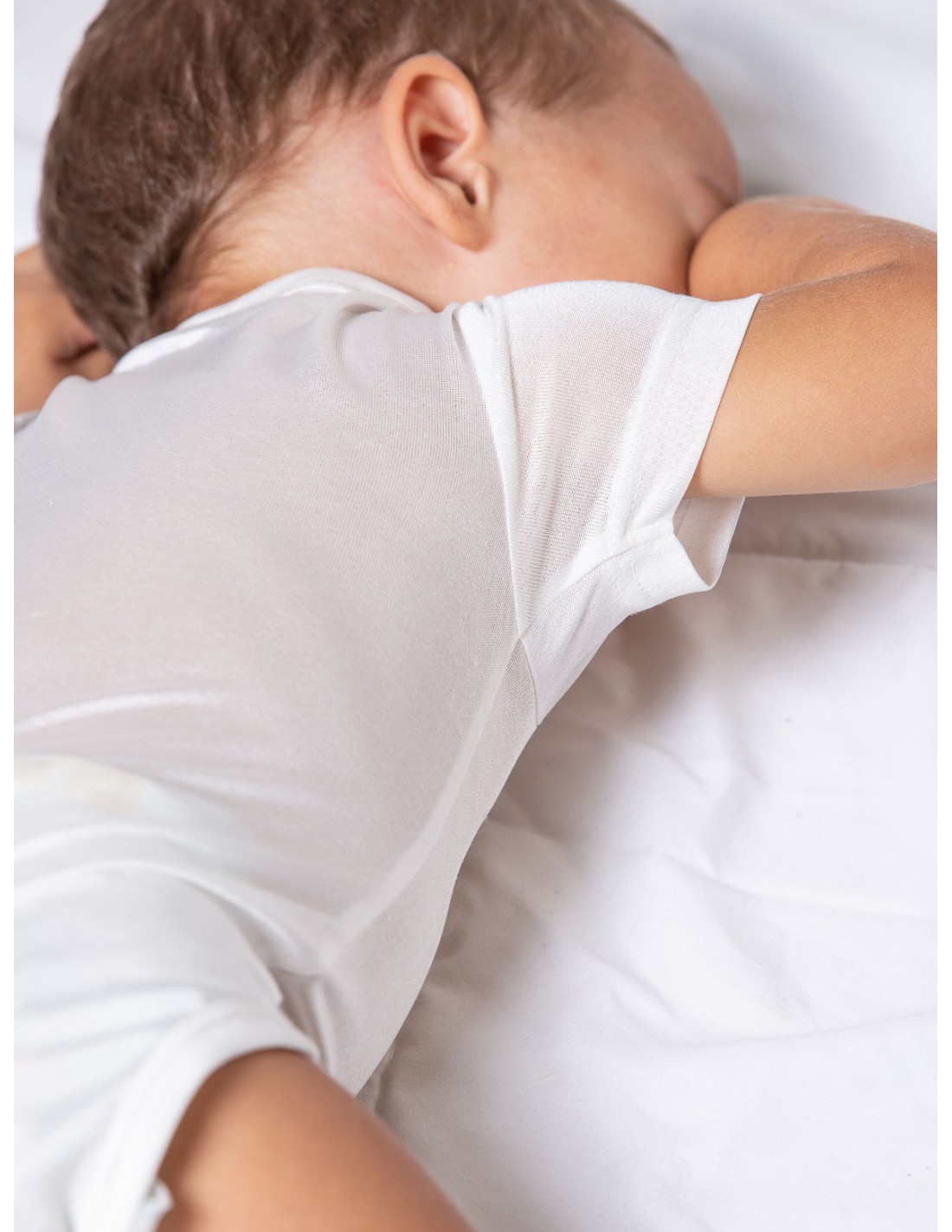 Body Baby a manica corta in 100% Seta Biologica ideale in tutte le stagioni come primo livello sotto i vestiti e anche per la notte. Lenitivo in caso di dermatiti, pruriti e arrossamenti alla pelle.