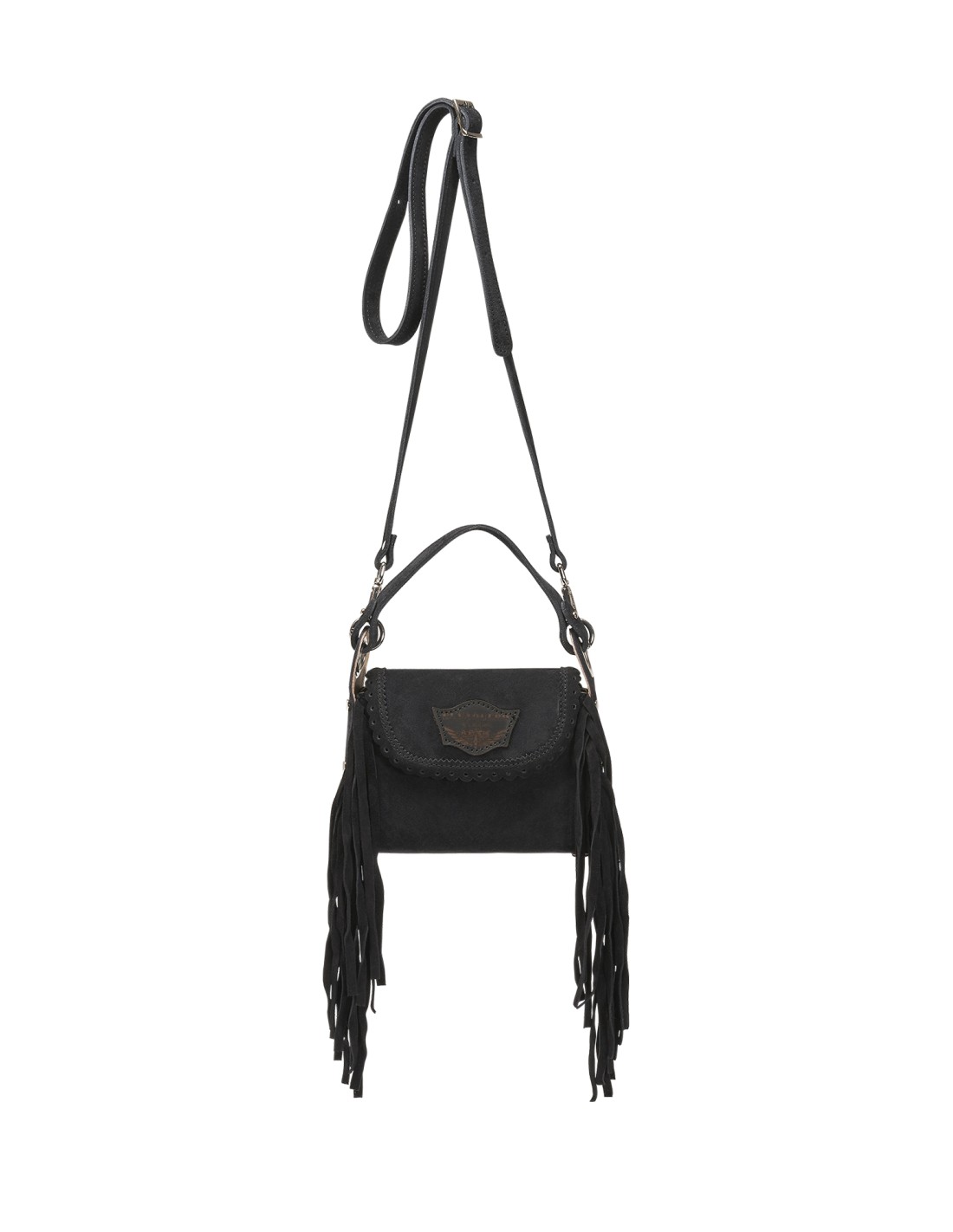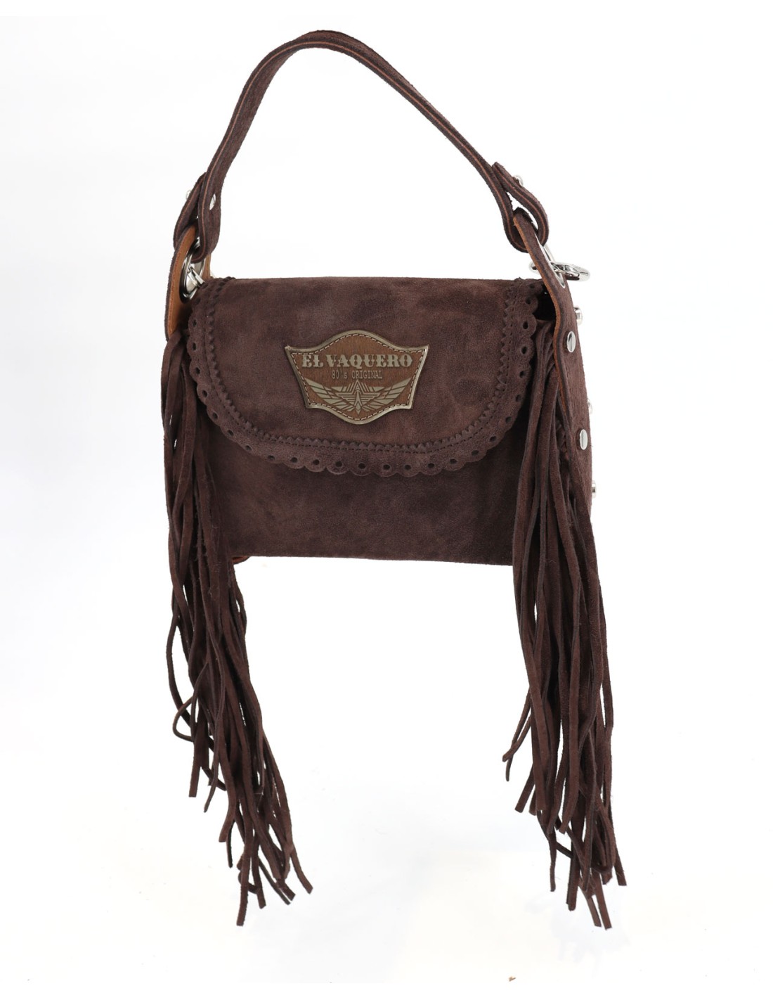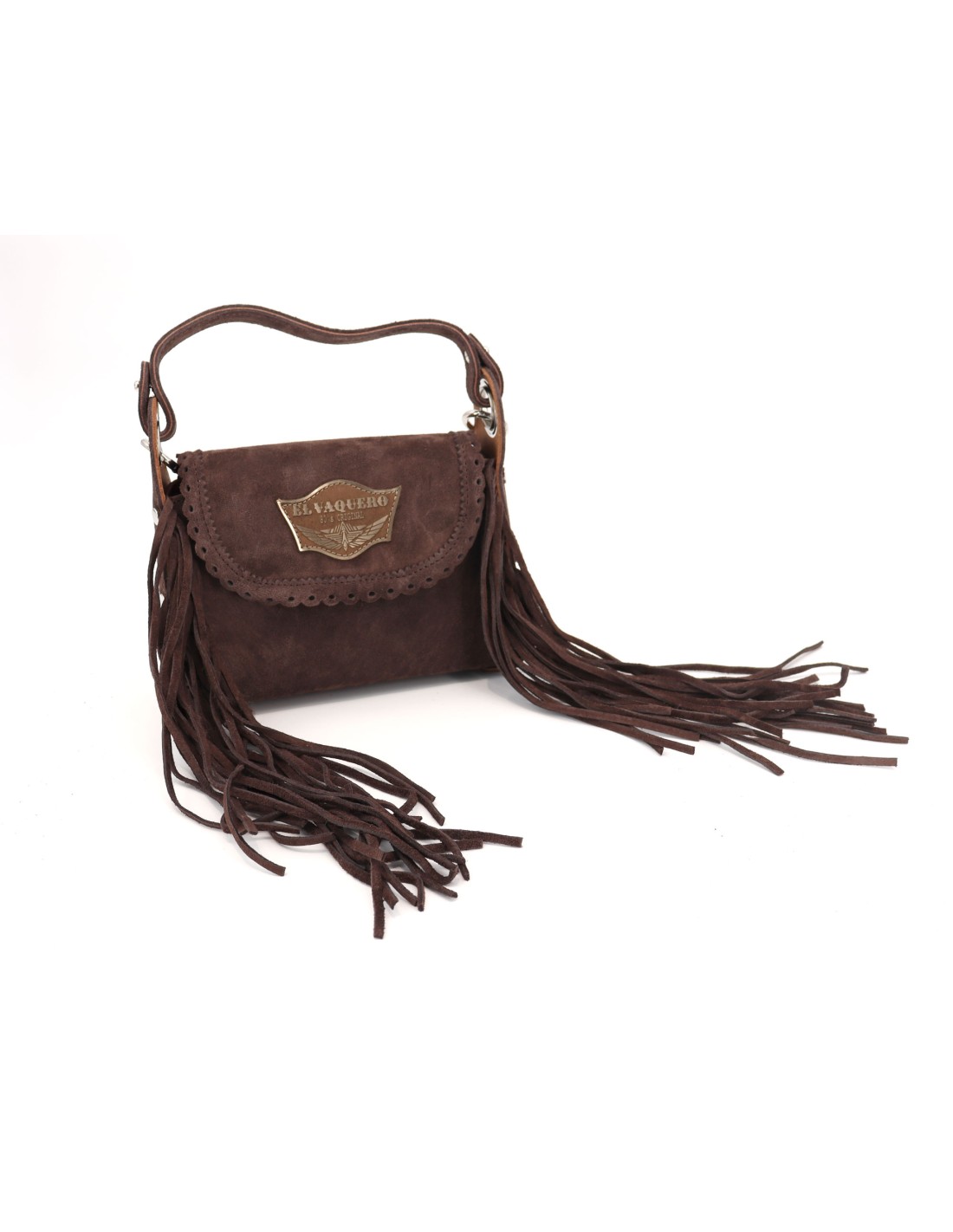 Realizzata a mano in Italia con pellami naturali di altissima qualità, unisce la morbidezza della pelle scamosciata alla leggerezza delle frange e alla luminosità dei dettagli metallici, creando un accessorio dal fascino boho e contemporaneo.