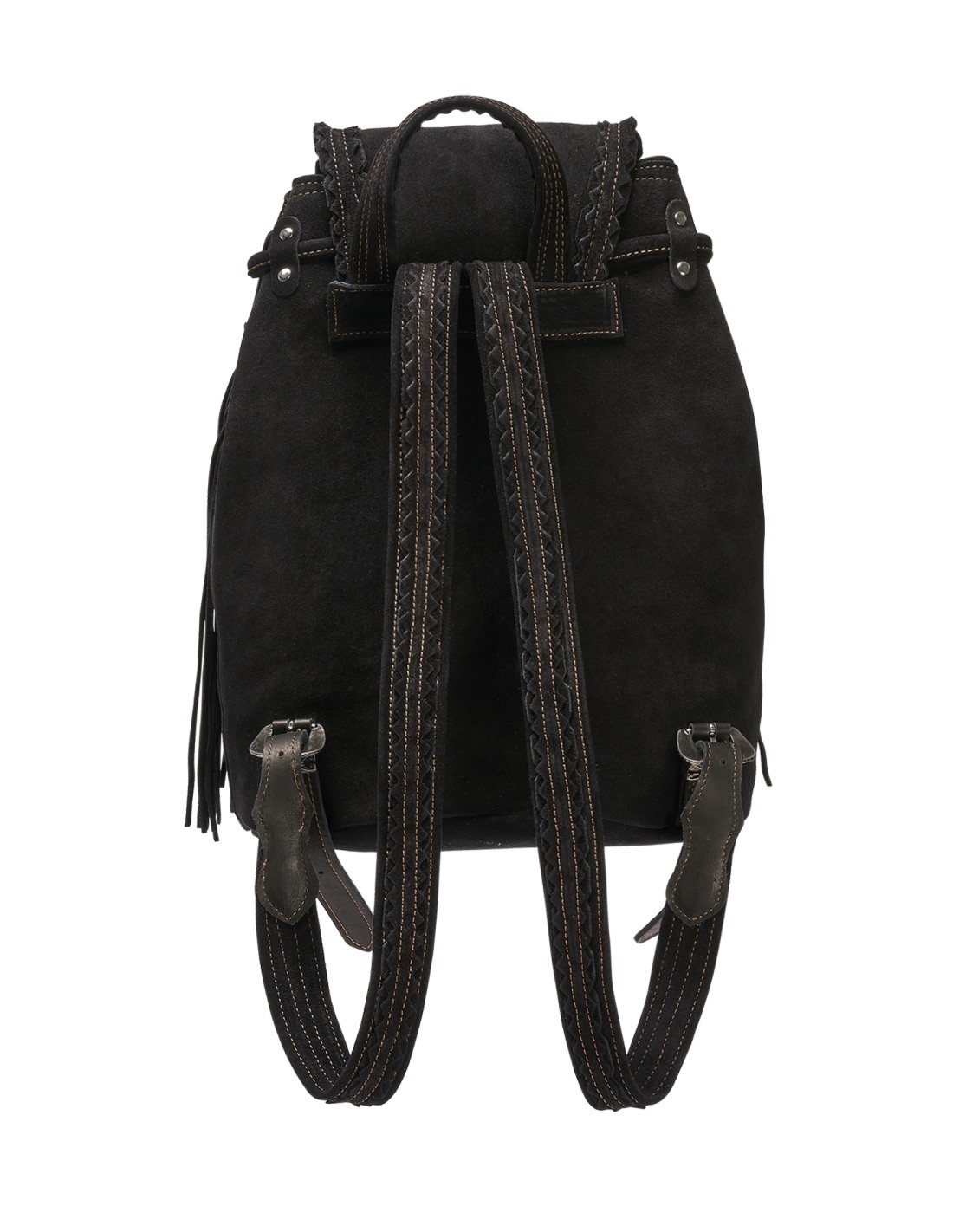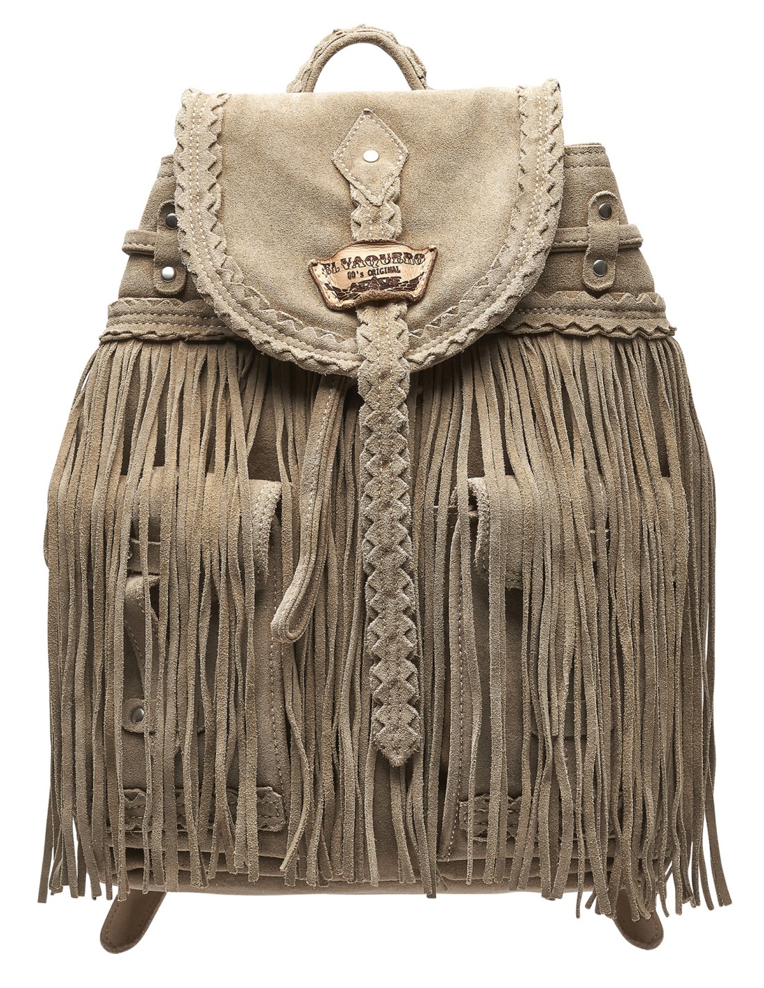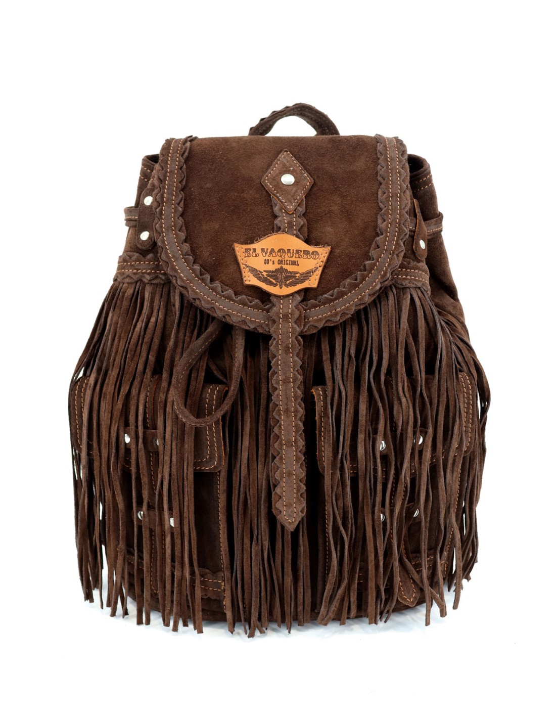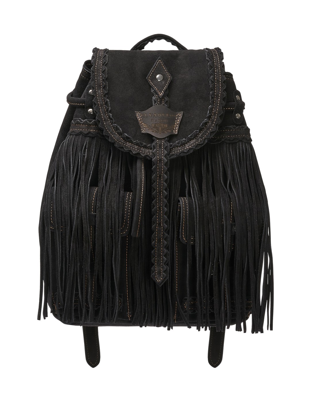 Zaino artigianale in morbida pelle scamosciata di vitello, arricchito da lunghe frange, tasche frontali e dettagli metallici. Dimensioni 33x24x13. Rifinito con l’esclusivo trattamento d’invecchiamento Silverstone, che dona alla pelle scamosciata affascinanti sfumature e variazioni cromatiche, rendendo ogni pezzo unico nel suo genere. Realizzato a mano in Italia.