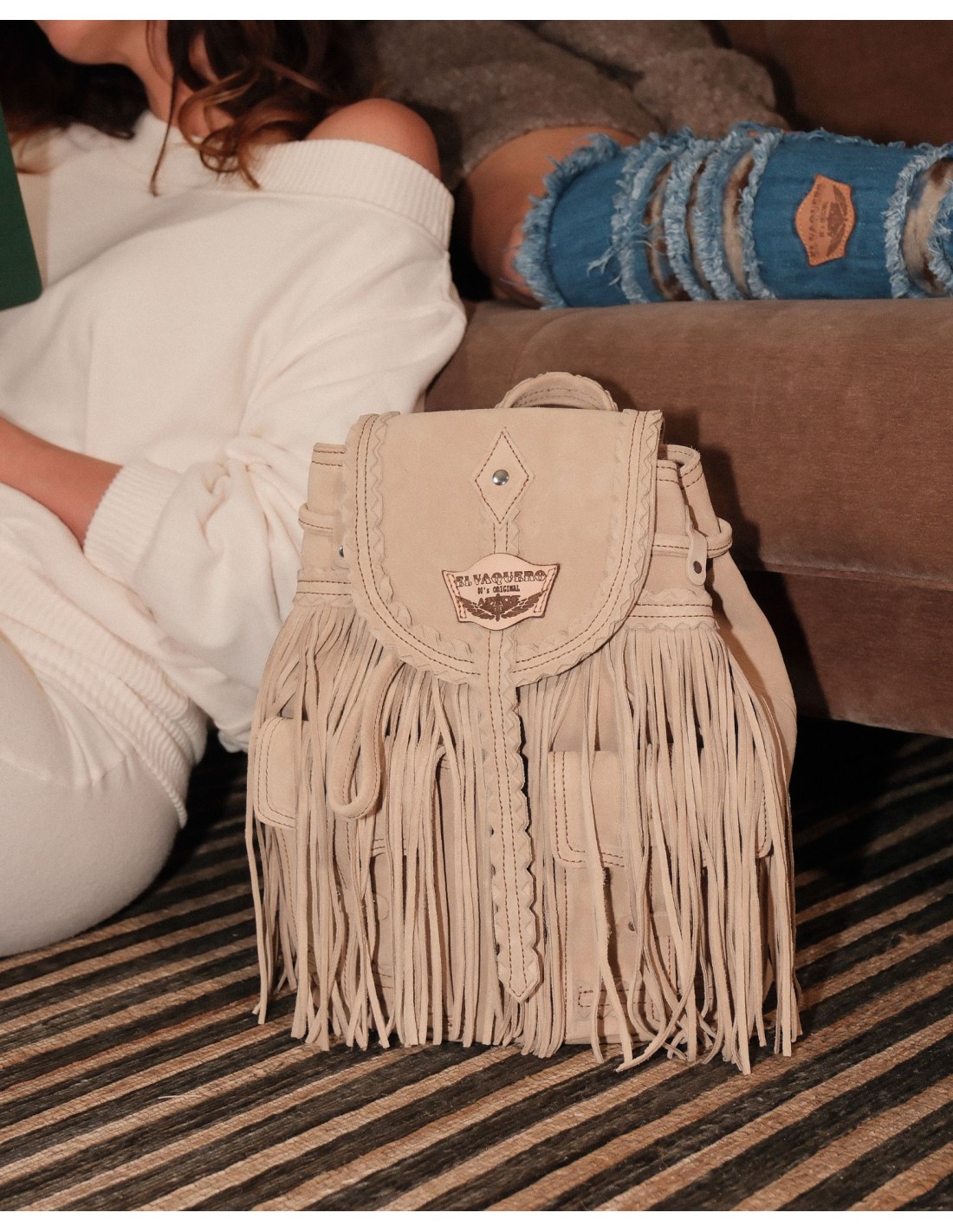 ZAINO ARTIGIANALE IN PELLE SCAMOSCIATA CON FRANGE "MERMAID"