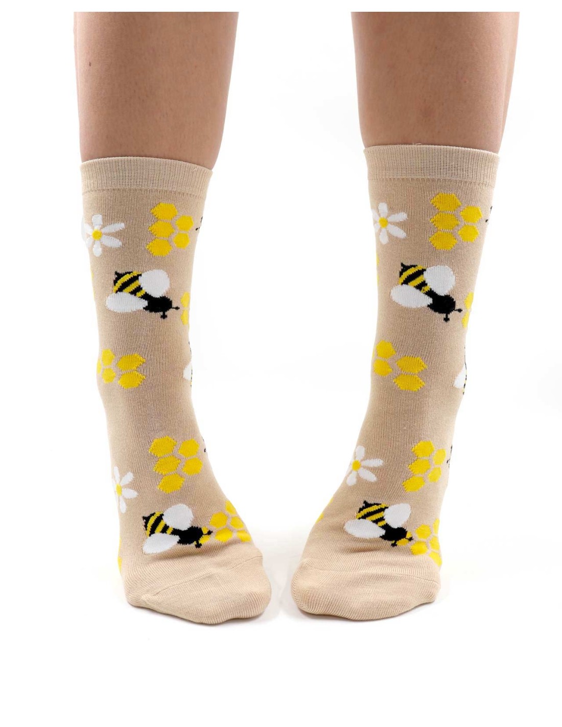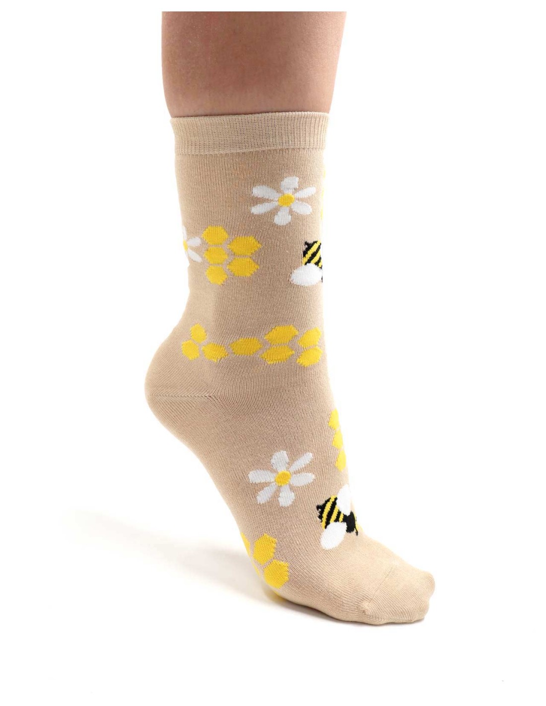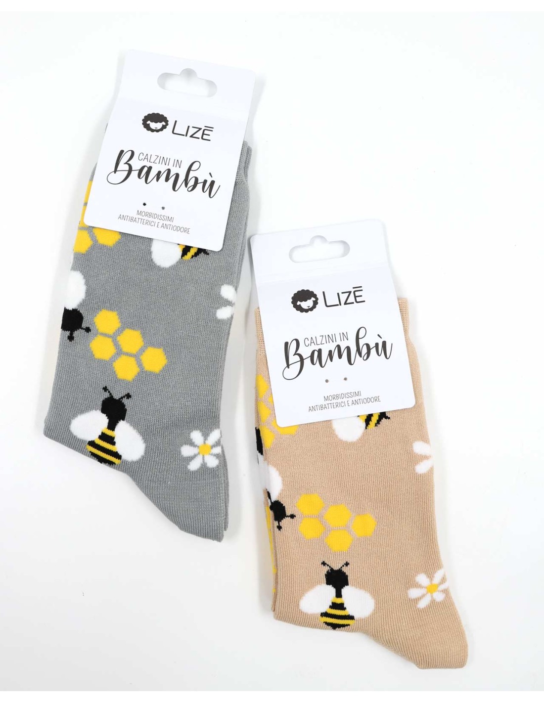 Morbidissimi calzini in bambù e cotone biologico media lunghezza con disegno a tema api e miele, antibatterici, antiodore e antisudore in taglia unica Uomo e Donna, si adattano perfettamente ad ogni piede e sono comodissimi!
