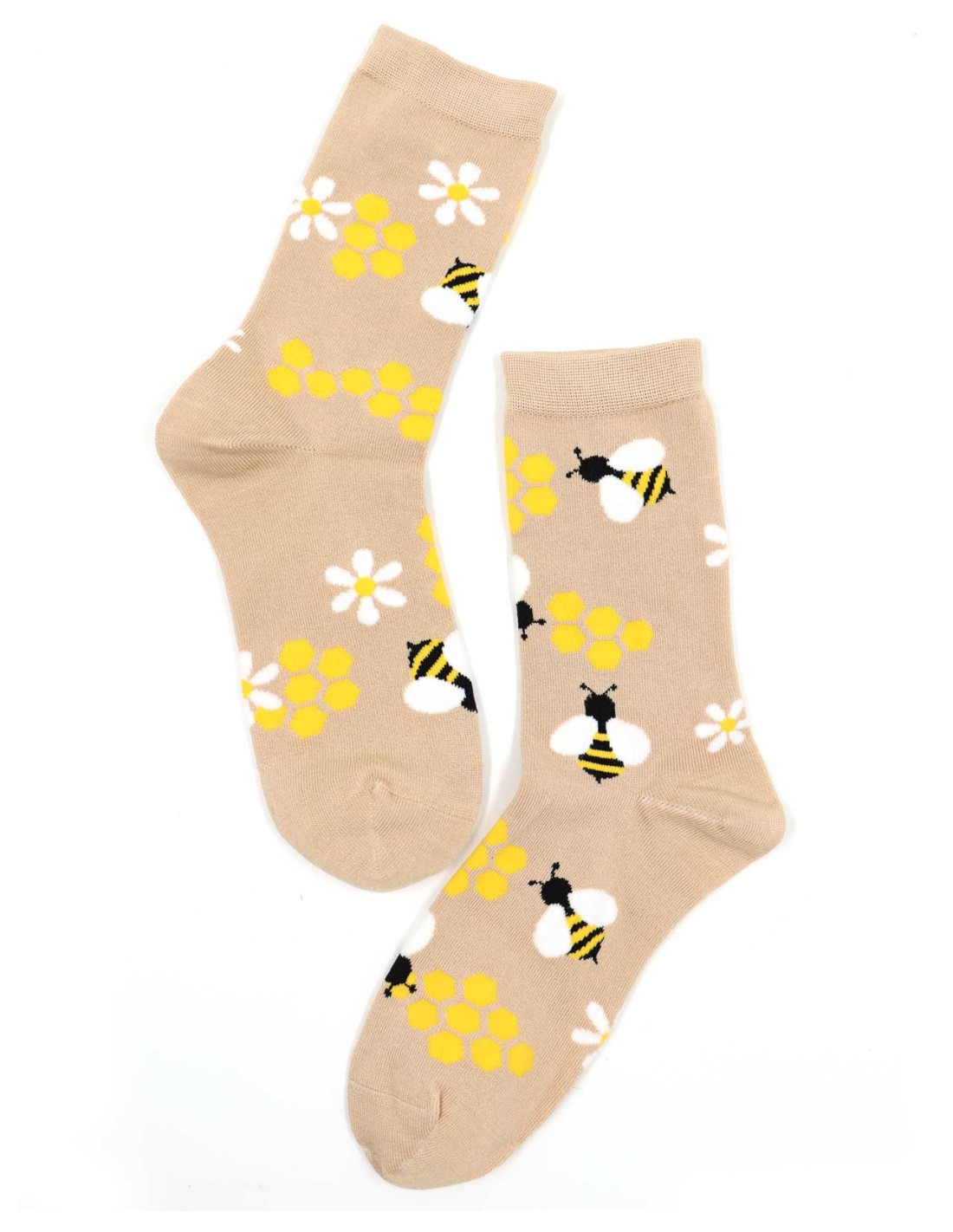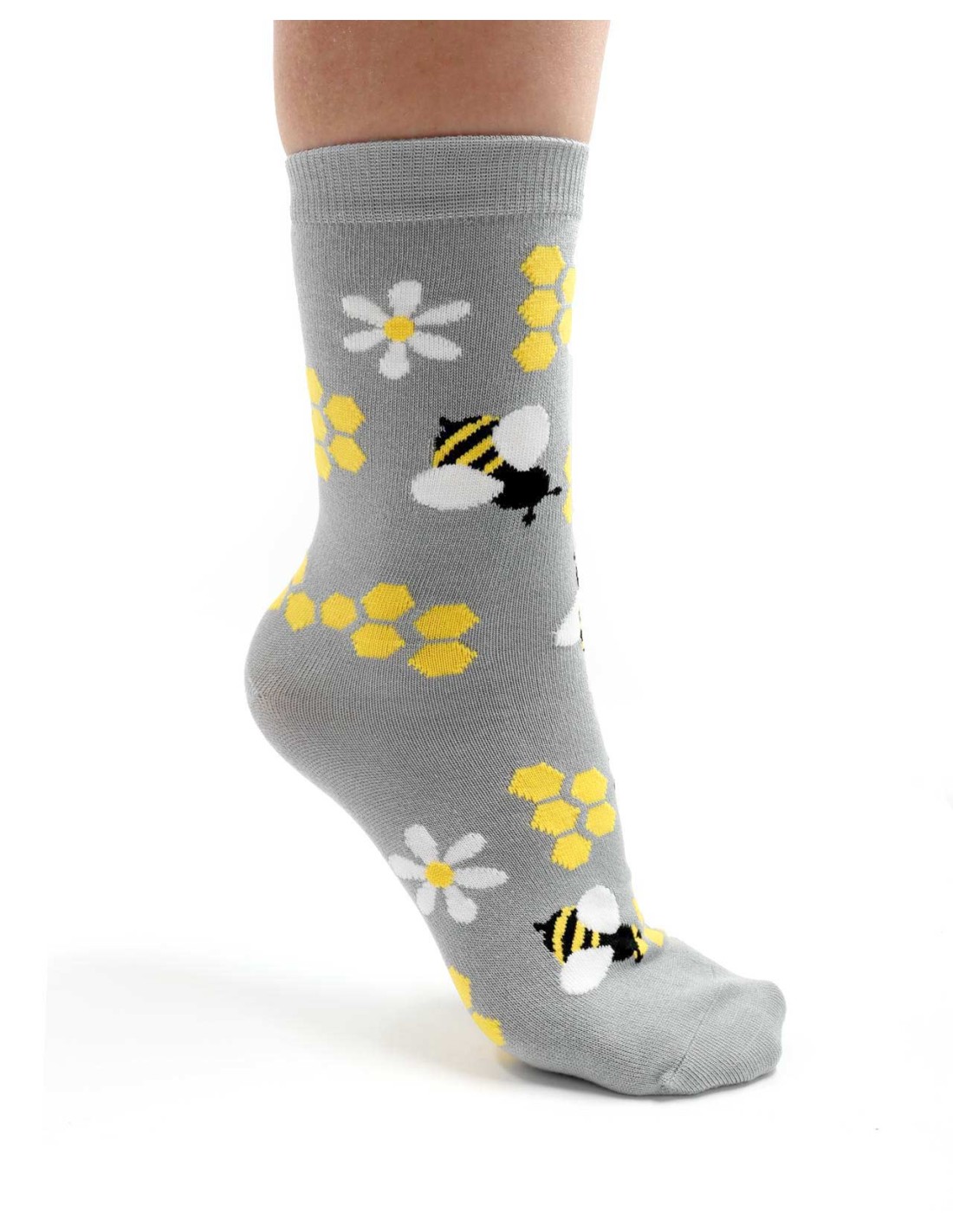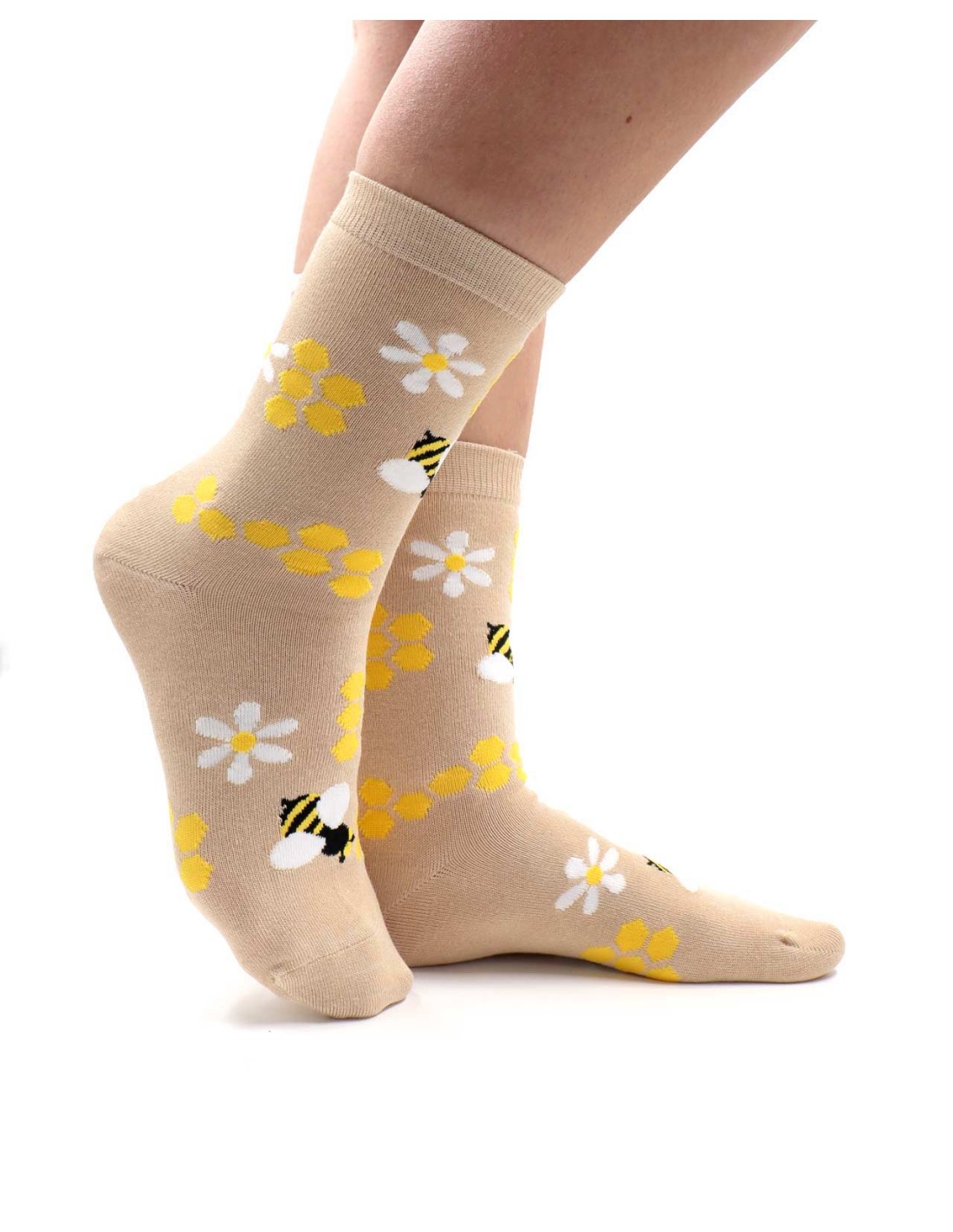 Morbidissimi calzini in bambù e cotone biologico media lunghezza con disegno a tema api e miele, antibatterici, antiodore e antisudore in taglia unica Uomo e Donna, si adattano perfettamente ad ogni piede e sono comodissimi!