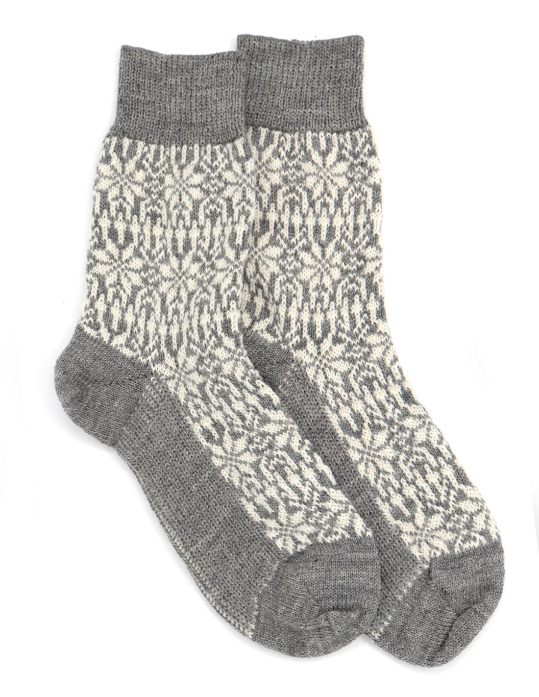 Caldissimo e morbido calzino Norvegese in 100% pura lana vergine. Perfetto da indossare negli stiveletti o come calzino coccolo per stare in casa. Lavorato grosso, modello corto.
