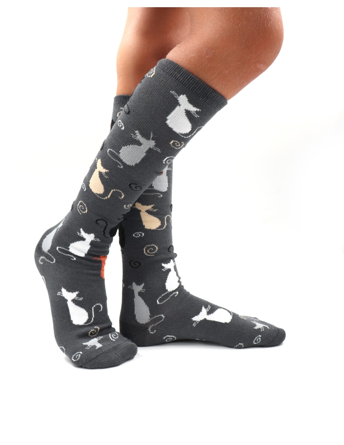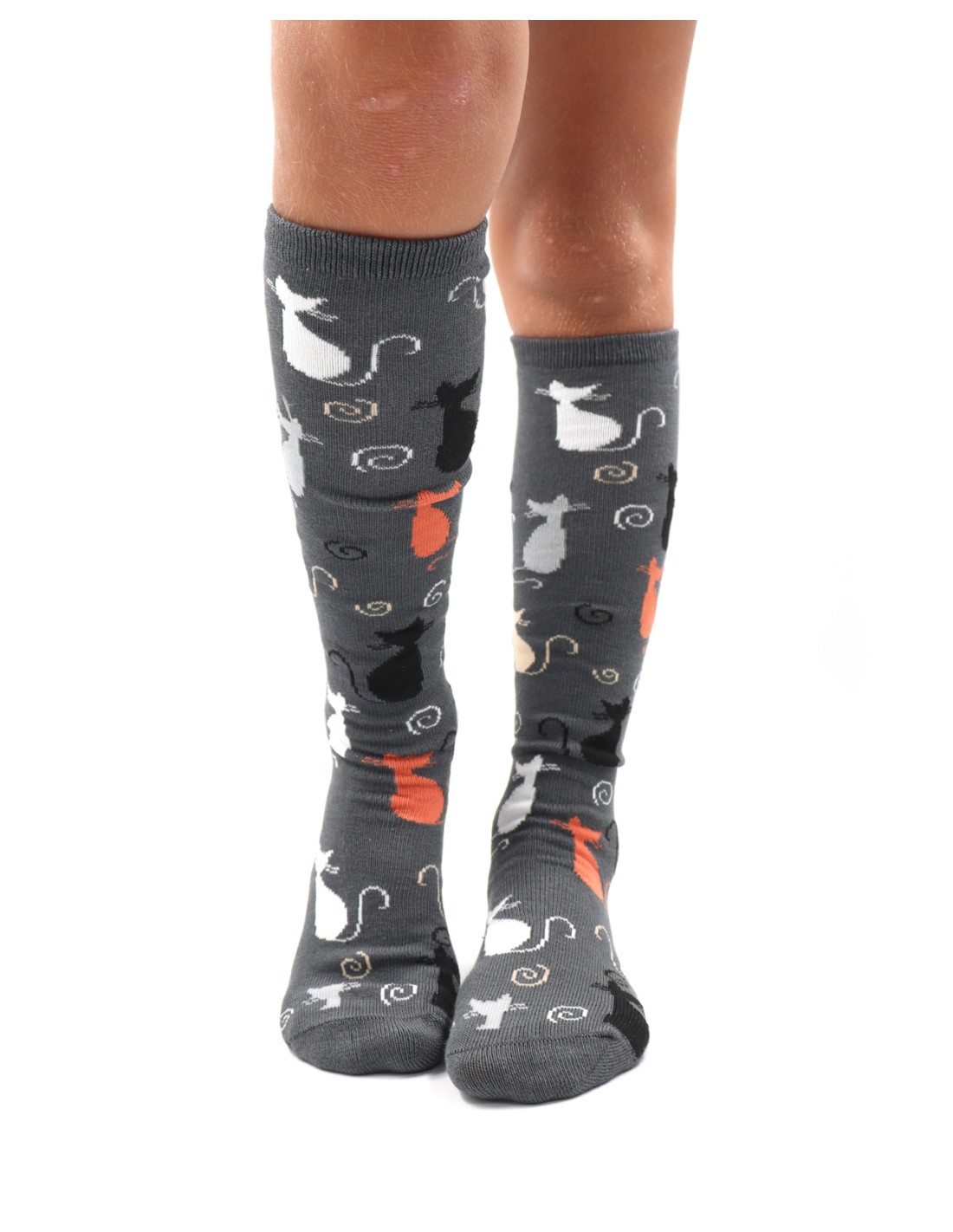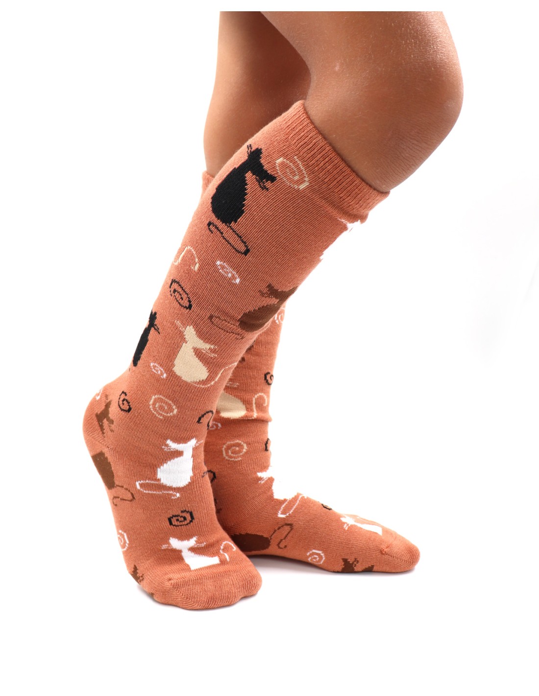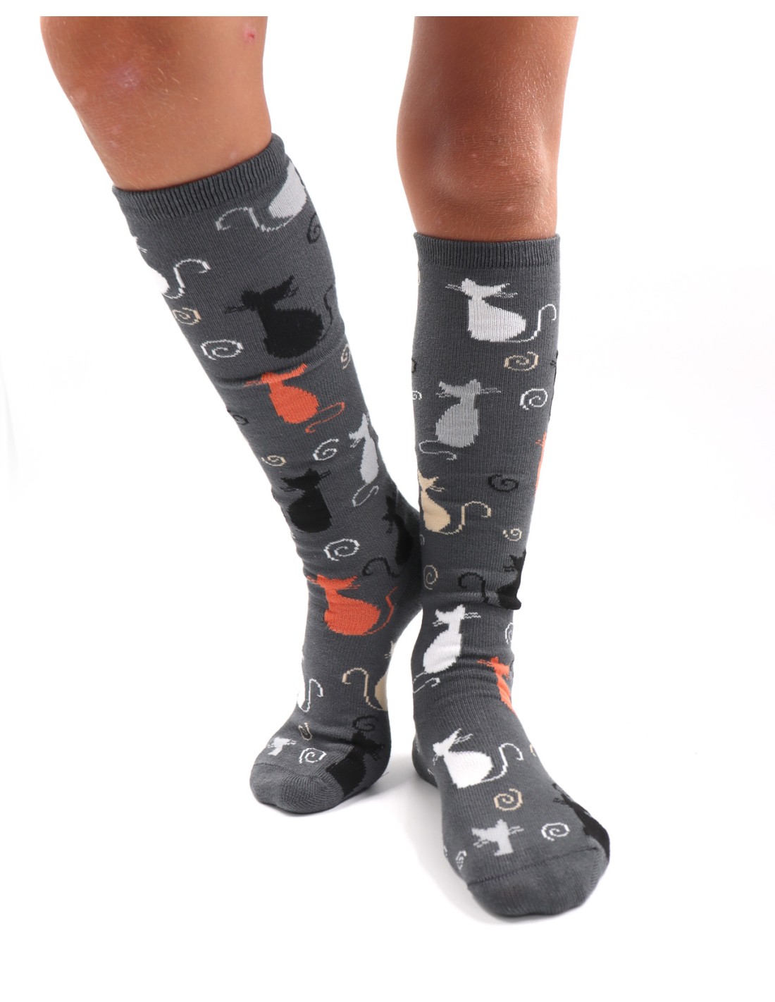 Calzini Lunghi in Bambù e Cotone Biologico per Bambini e Neonati Con pattern Gatti. Traspiranti, Morbidi, Sostenibili e anti-sudore sono il calzino perfetto per la quotidianità dei bambini, si adattano al piede e durano a lungo seguendone la crescita.