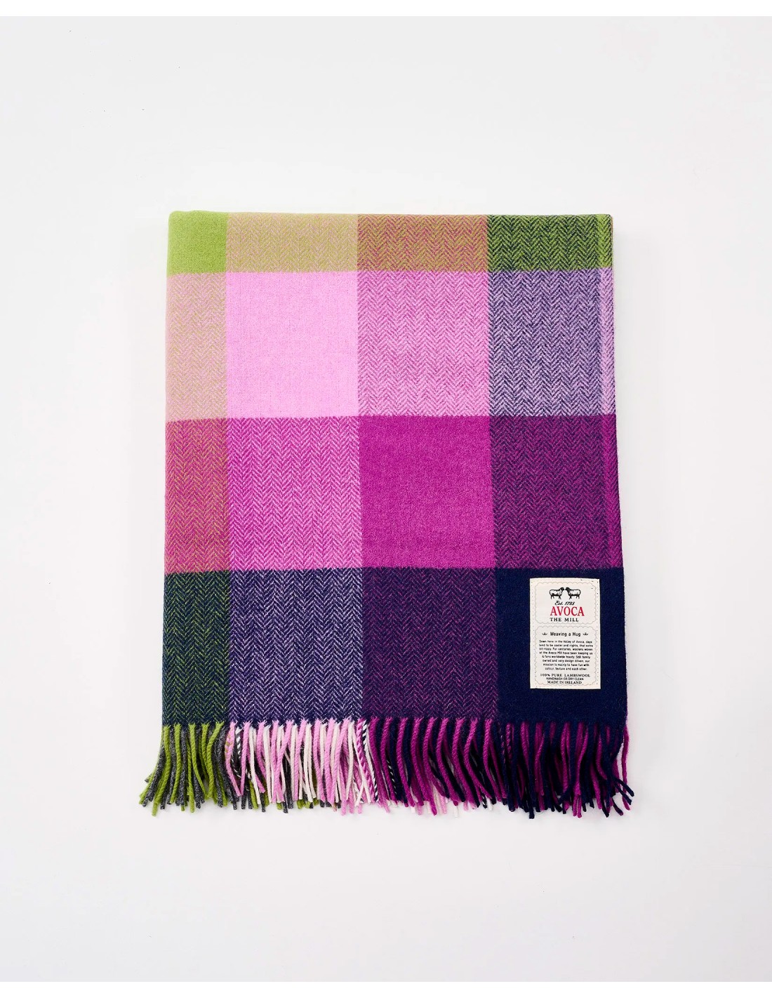 La coperta "Circus" è un capo pregiato e naturale, tessuta artigianalmente in Irlanda e realizzata in 100% pura lana d’agnello. Una coperta calda, morbida e resistente, che unisce il fascino della tradizione tessile irlandese al comfort delle fibre naturali.
