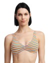 Slip bikini a vita bassa in abbinamento ai reggiseni della collezione "Namie". Un costume bellissimo, dal tessuto resistente e durevole in fantasia arcobaleno leggermente a rilievo di ispirazione anni '70.