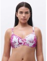 Il taglio leggermente sgambato slancia la gamba con naturalezza, mentre il tessuto italiano avvolge la pelle senza stringere. La stampa è un'esplosione tropicale: palme, fiori e vegetazione reinterpretati in chiave grafica su fondo bianco con accenti fucsia, perfetti per far risaltare l’abbronzatura.