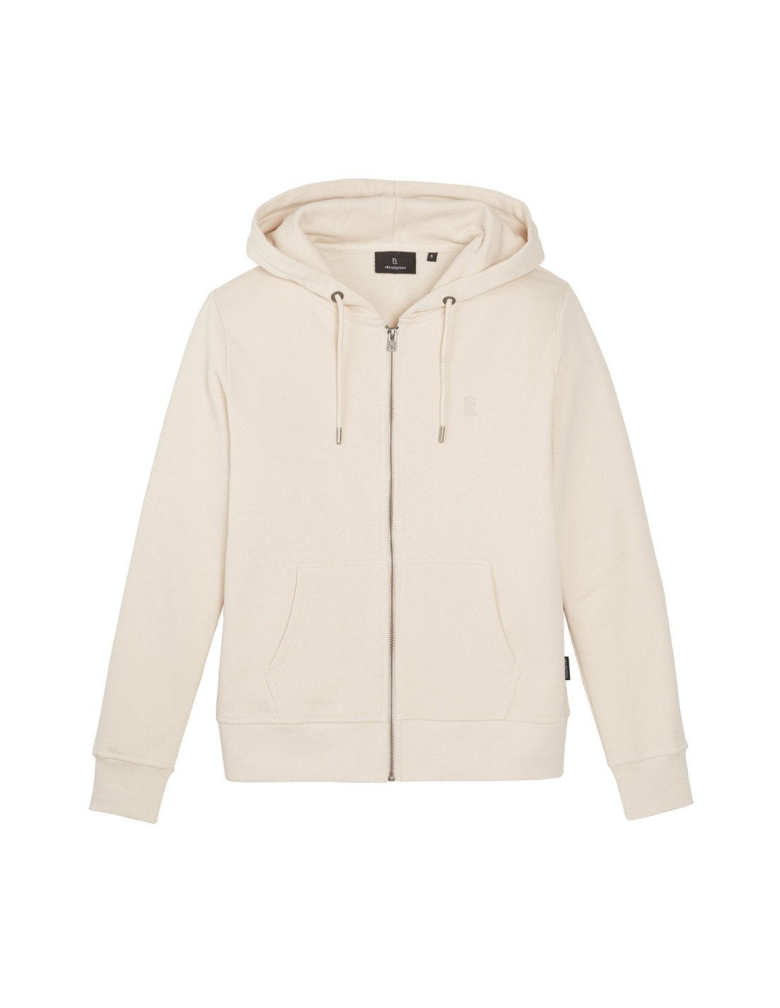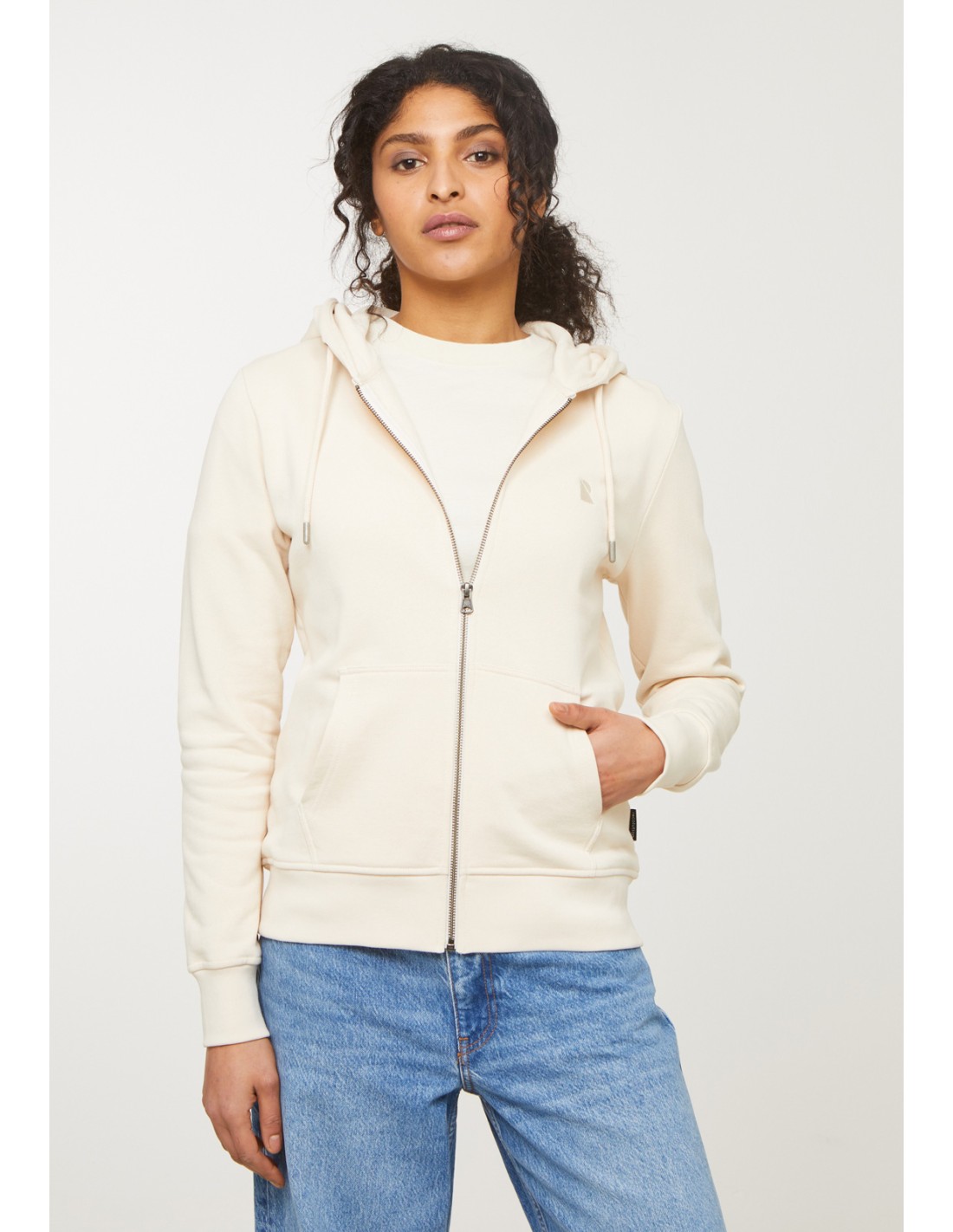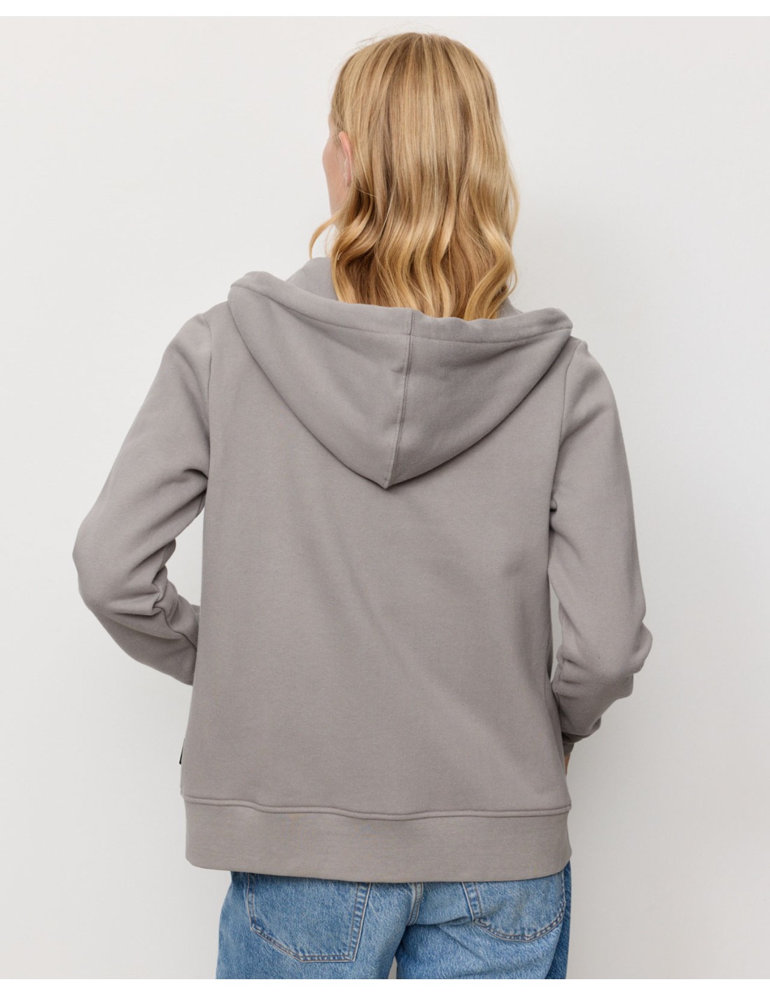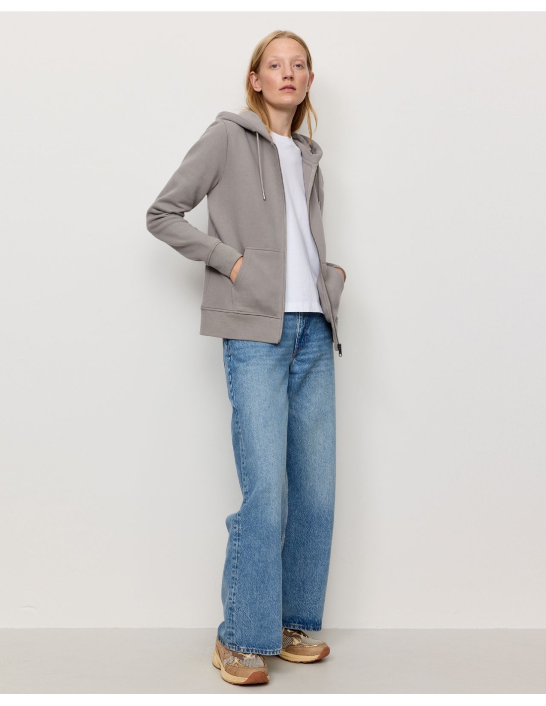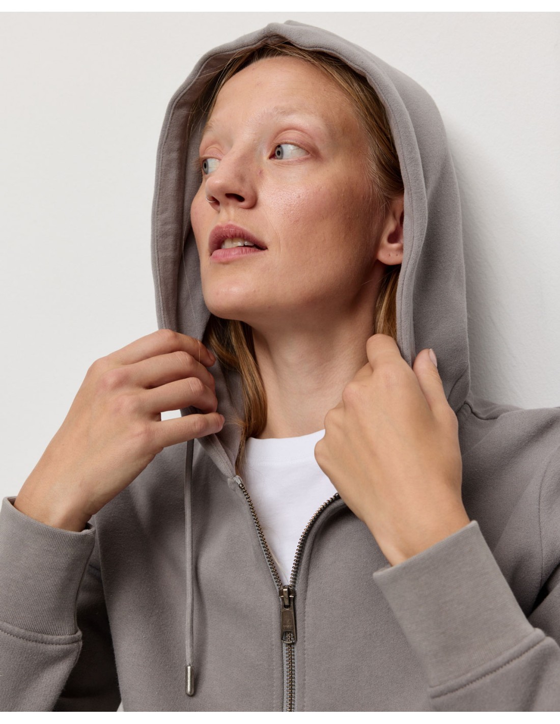 Regular fit, comoda e naturale. Modello aperto con zip e cappuccio.