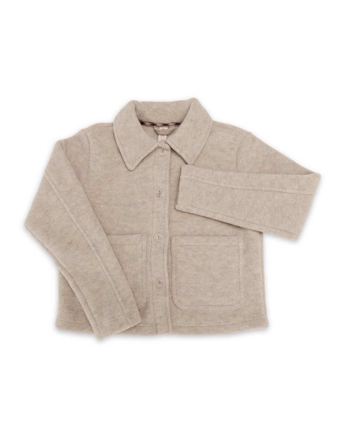 Caldissima e super morbida questa giacca/giubbotto donna dalla forma squadrata realizzata in 100% Lana Merino Biologica a lavorazione Pile cioè ariosa, leggera e vaporosa.