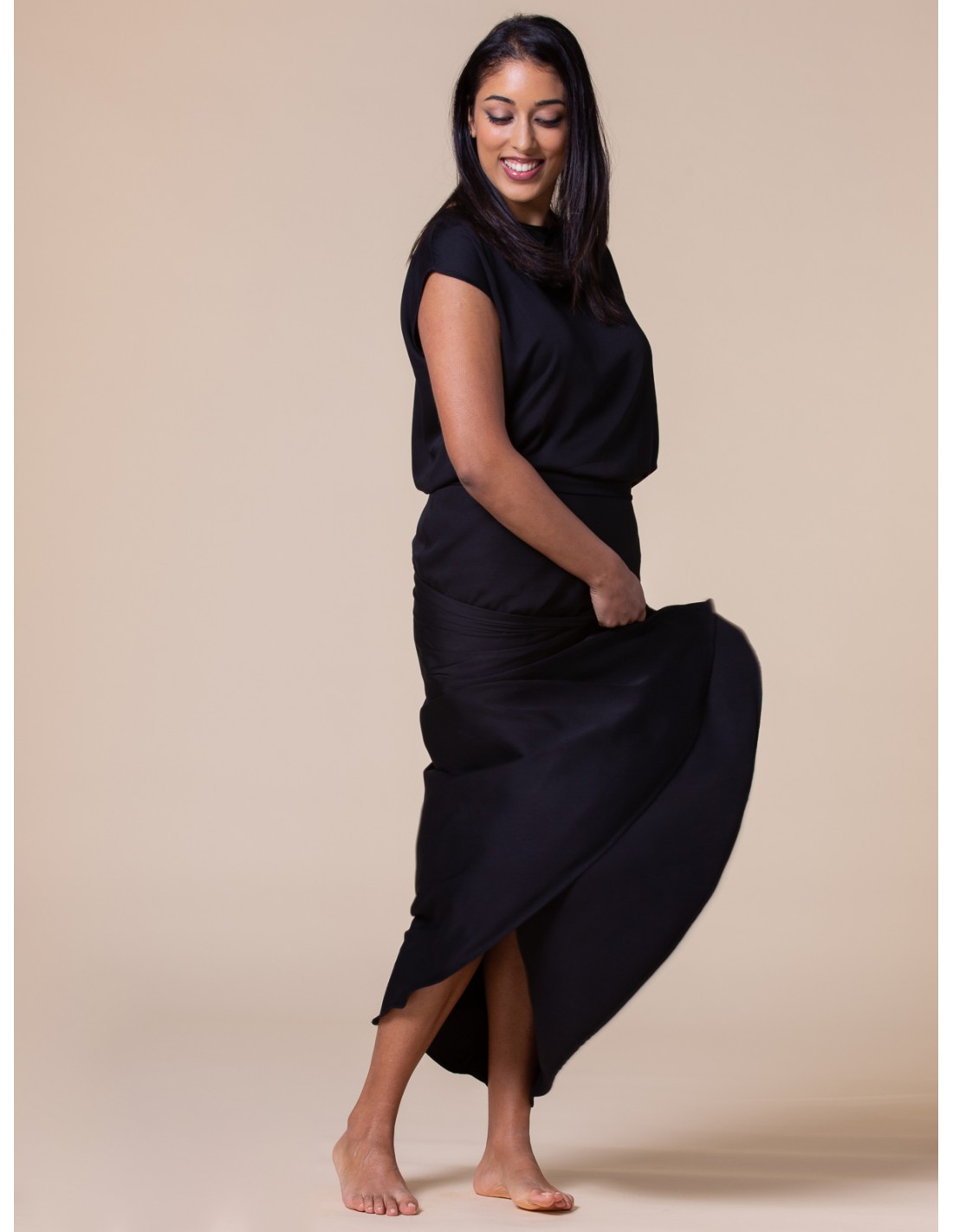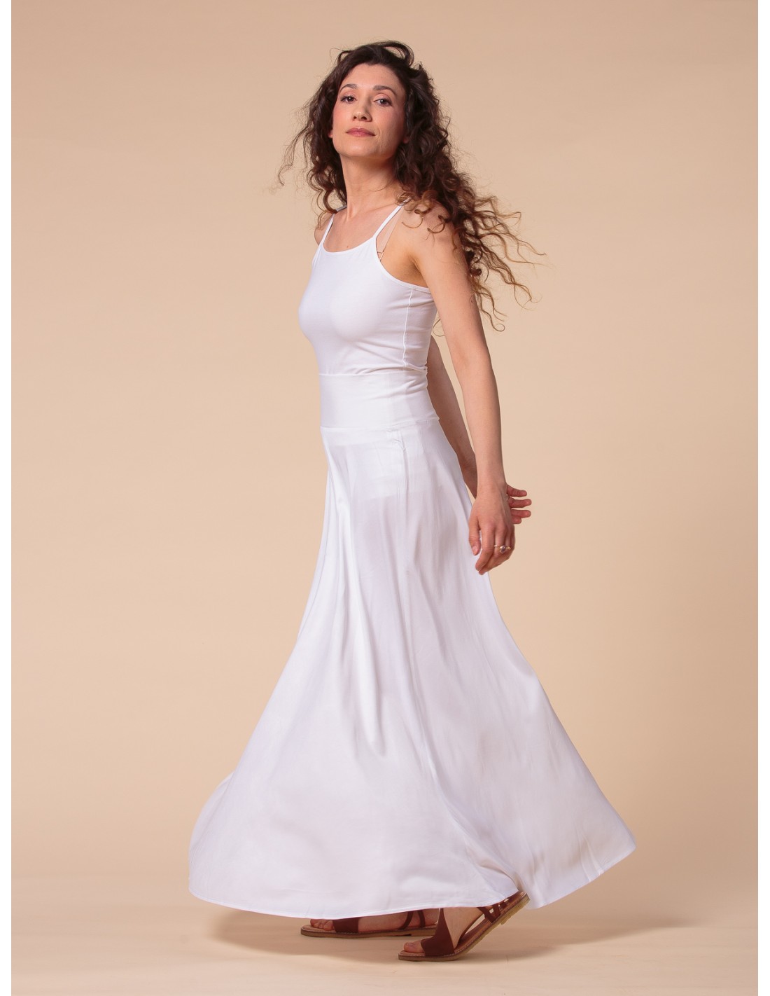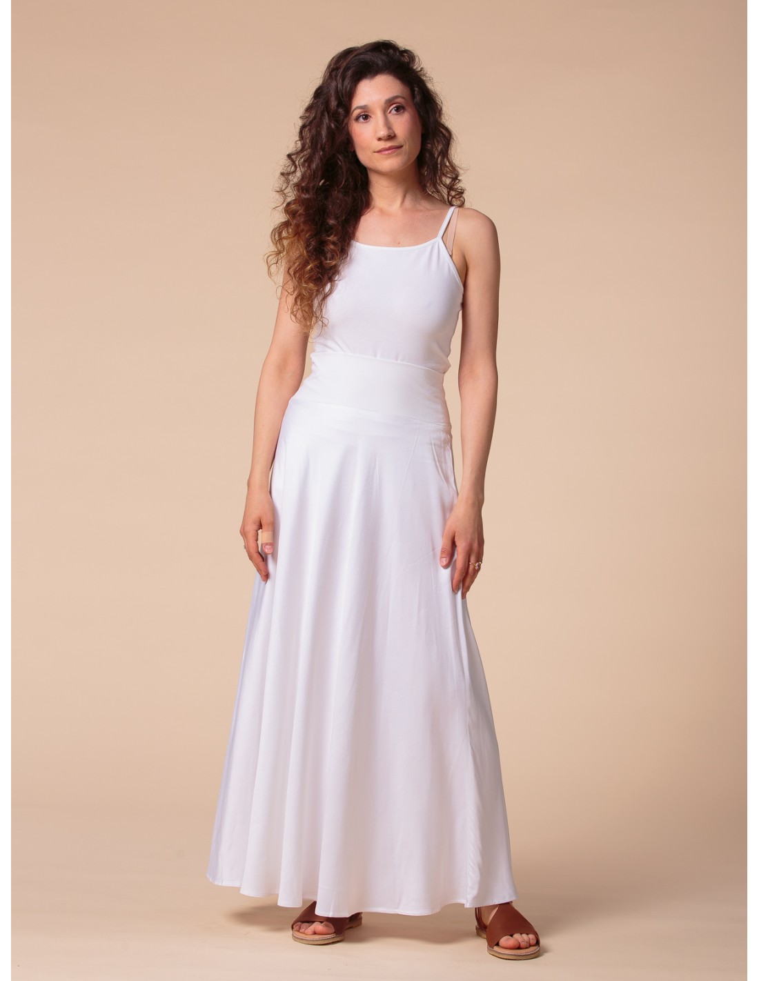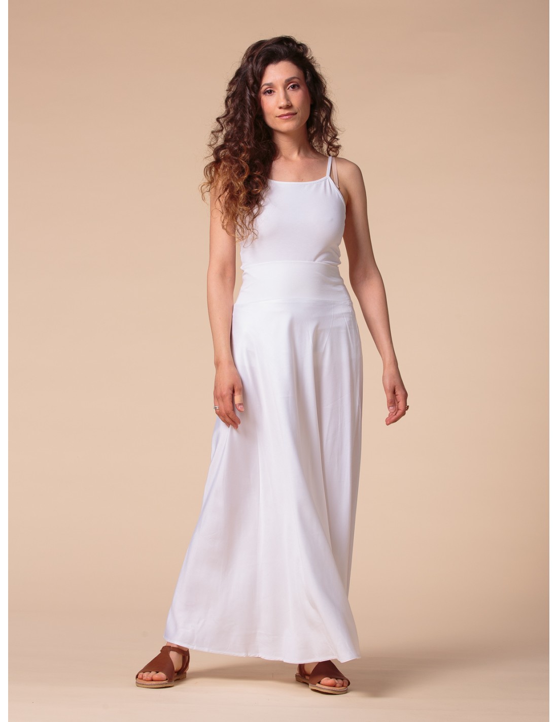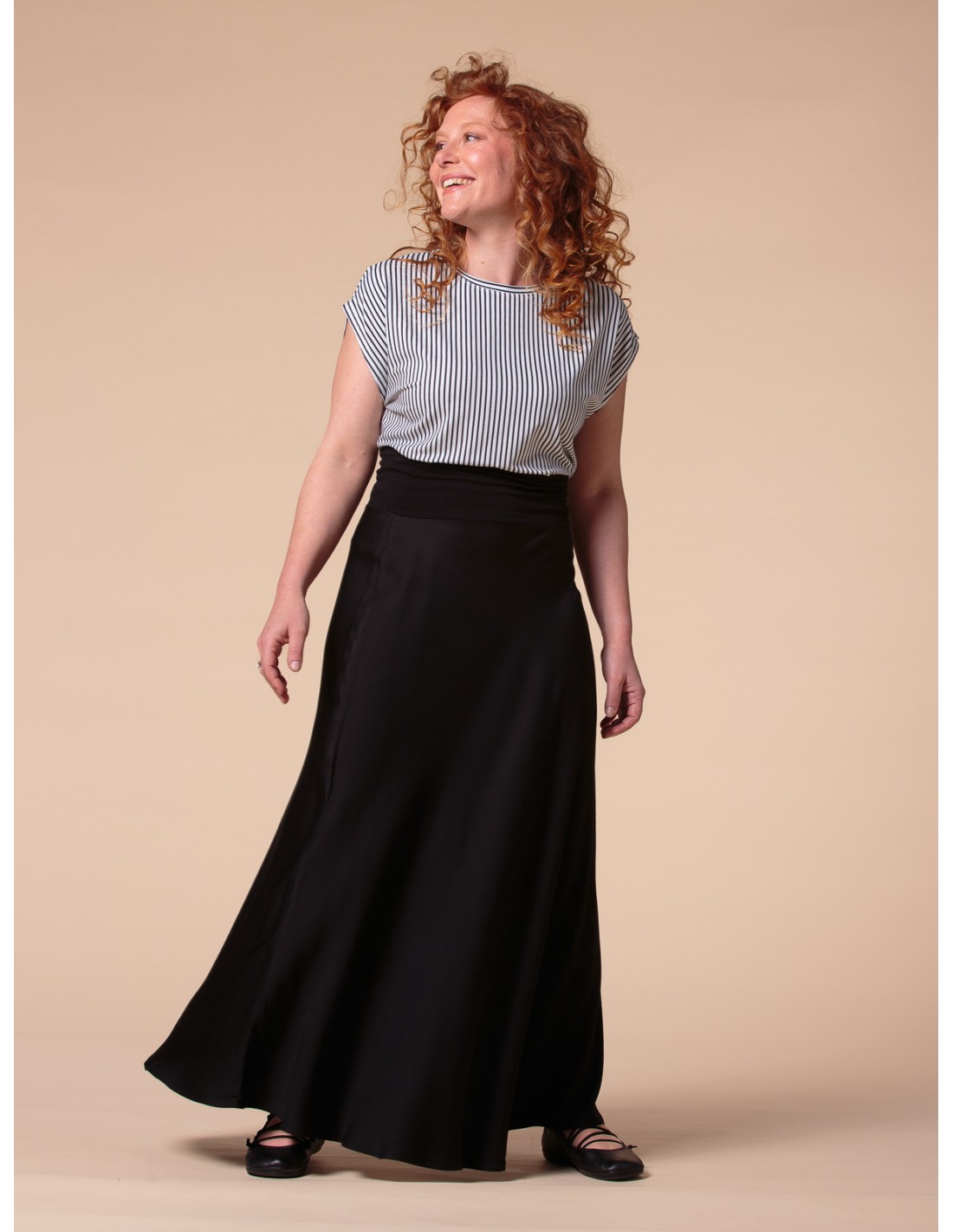 Una gonna pratica, femminile e leggera, perfetta per ogni fisicità e comodissima in gravidanza grazie alla fascia in Bambù elasticizzato in vita che puoi alzare o ripiegare come desideri.