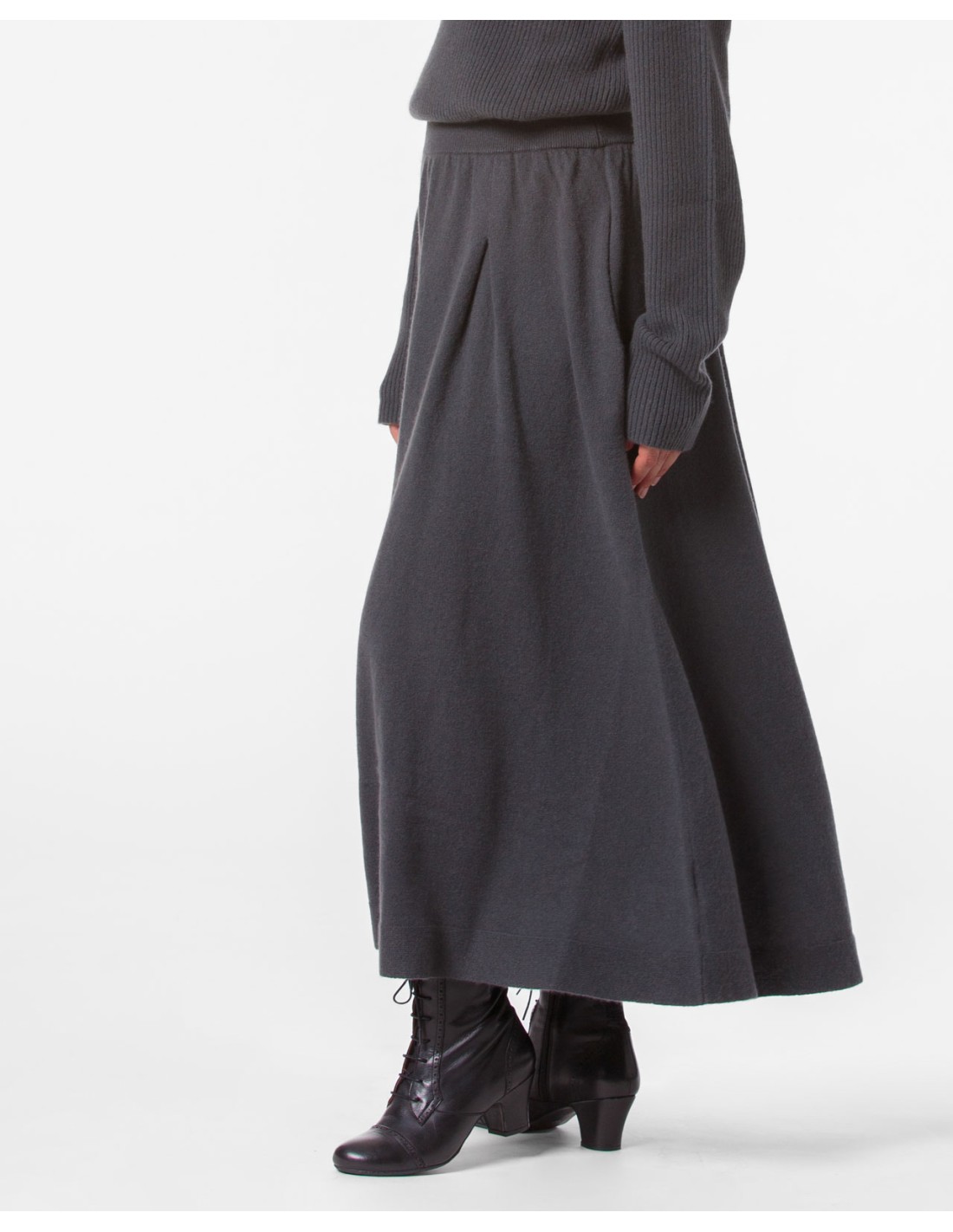 Elegante, romantica ed esclusiva gonna lunga in 100% puro cashmere con morbido elastico in vita e tasche laterali. Calda, morbidissima e perfetta per l’inverno. Il suo taglio ampio ,le pences e la leggerezza del filato la rendono un piccolo capolavoro di eleganza naturale.