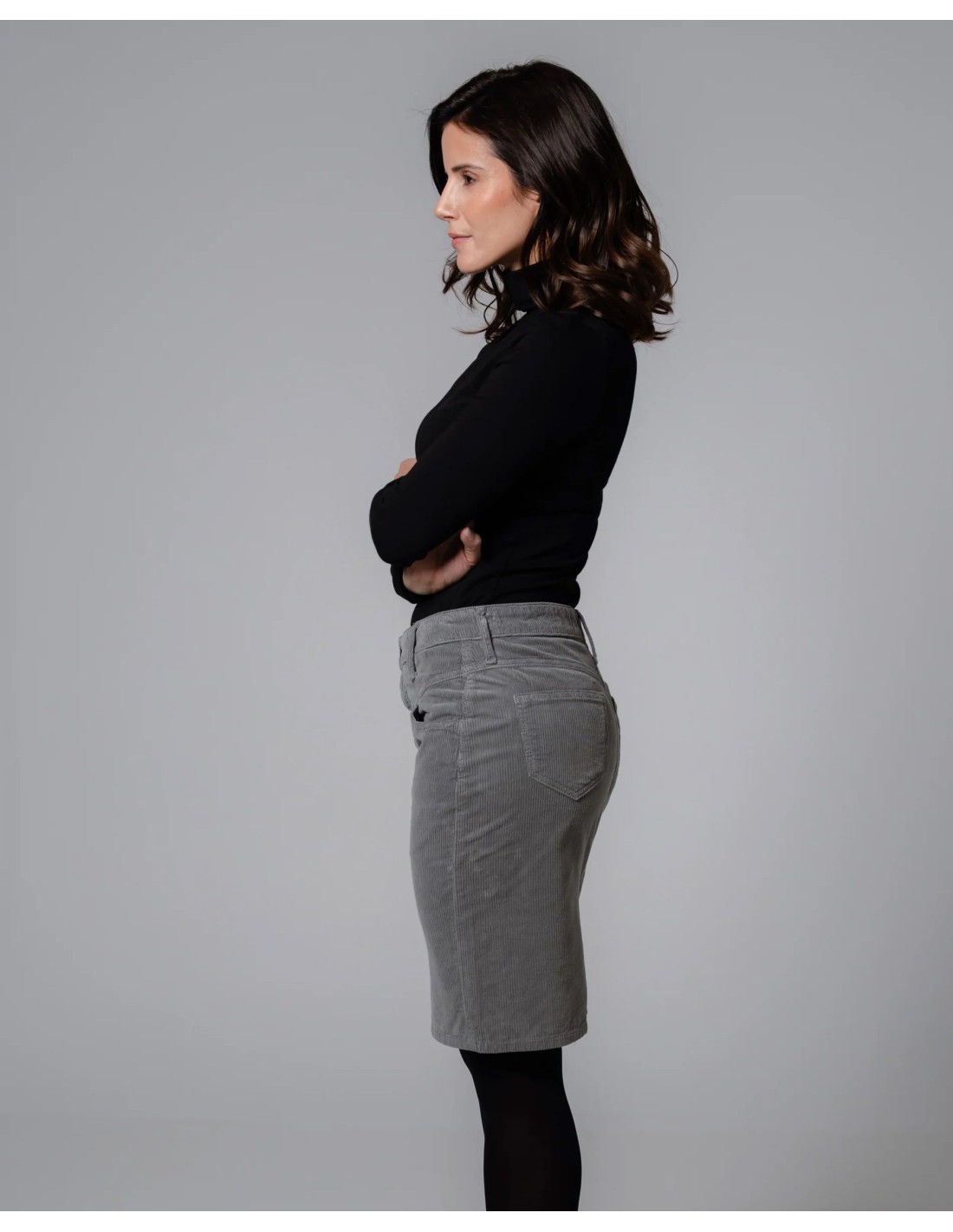 Questa è una gonna dal fascino essenziale, pensata per chi ama la comodità dei tessuti naturali senza rinunciare a una linea elegante. Il velluto in cotone biologico ha una struttura fine e morbida, piacevole sulla pelle e con una leggera elasticità che accompagna i movimenti. La vita alta definisce la silhouette e allunga visivamente le gambe, creando un profilo armonioso e femminile.