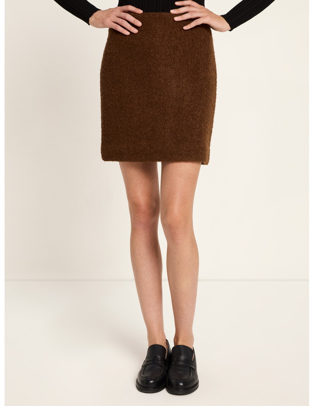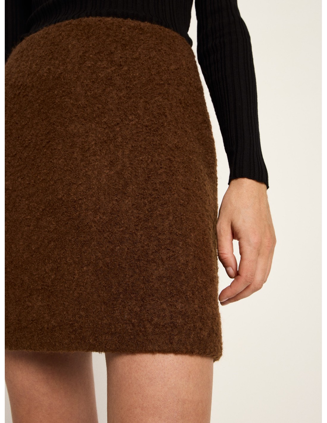Una minigonna dall’eleganza pulita e attuale, realizzata in pura lana vergine biologica con una preziosa lavorazione bouclé che dona volume, carattere e una texture moderna. La silhouette è dritta e minimalista, pensata per valorizzare la figura con semplicità e offrire un look contemporaneo e versatile.