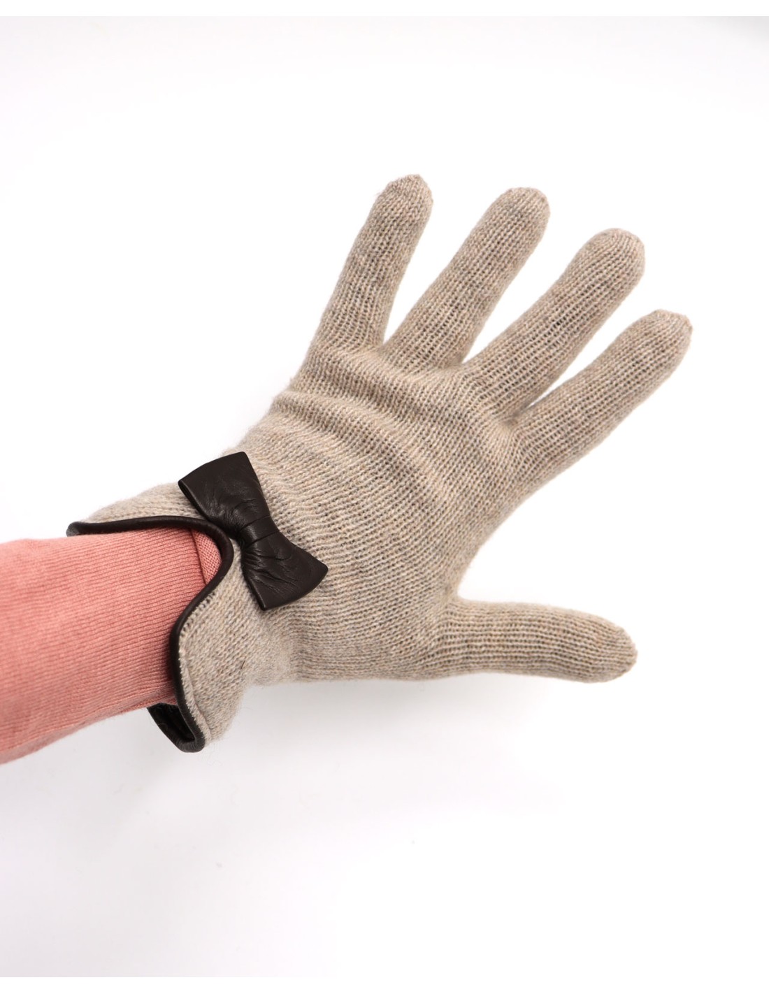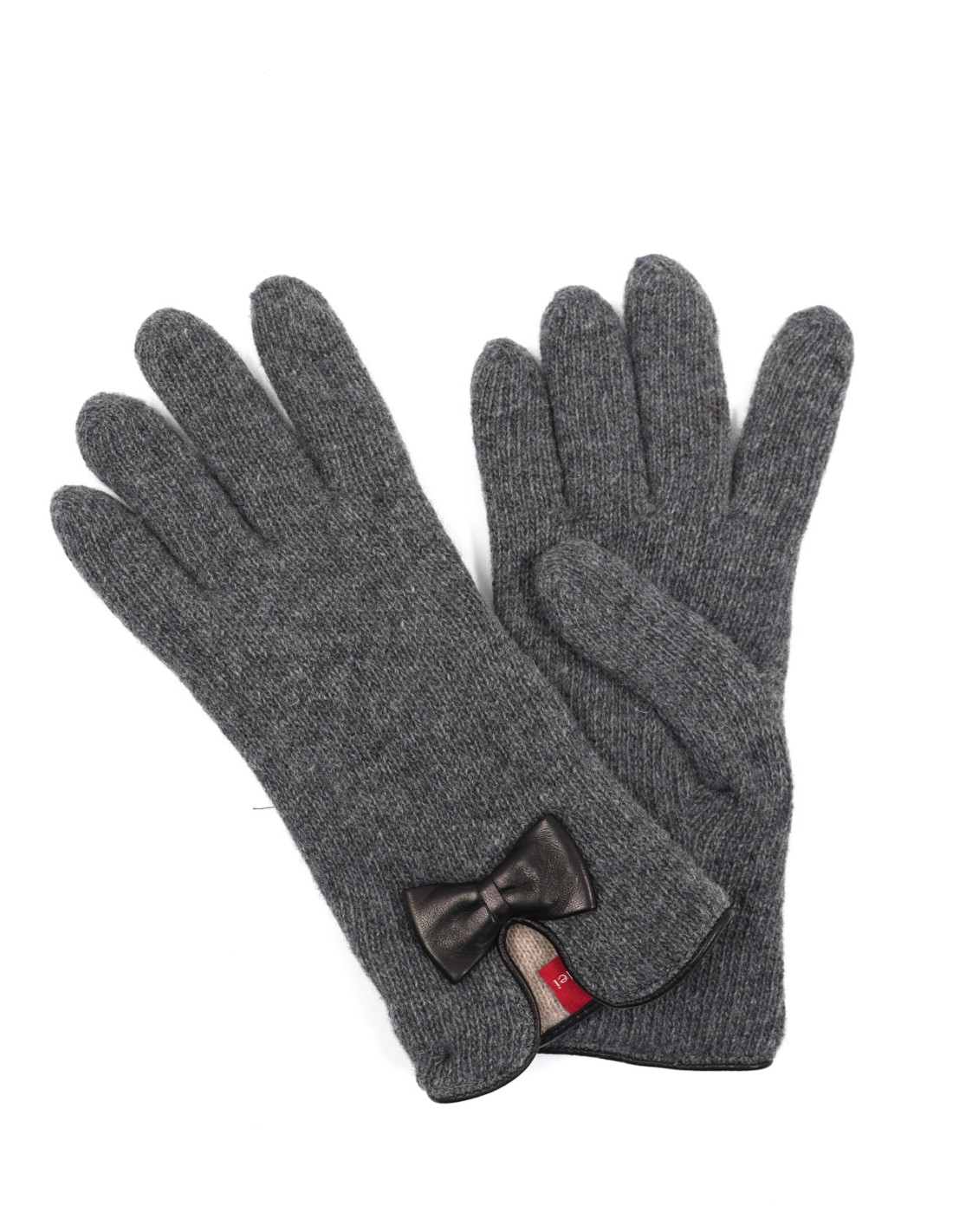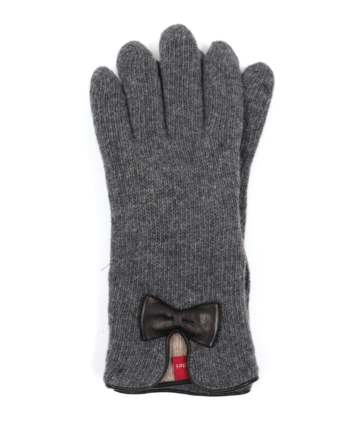 Un guanto caldissimo e protettivo grazie ai due strati di lana e molto femminile con fiocchetto in vera pelle.
