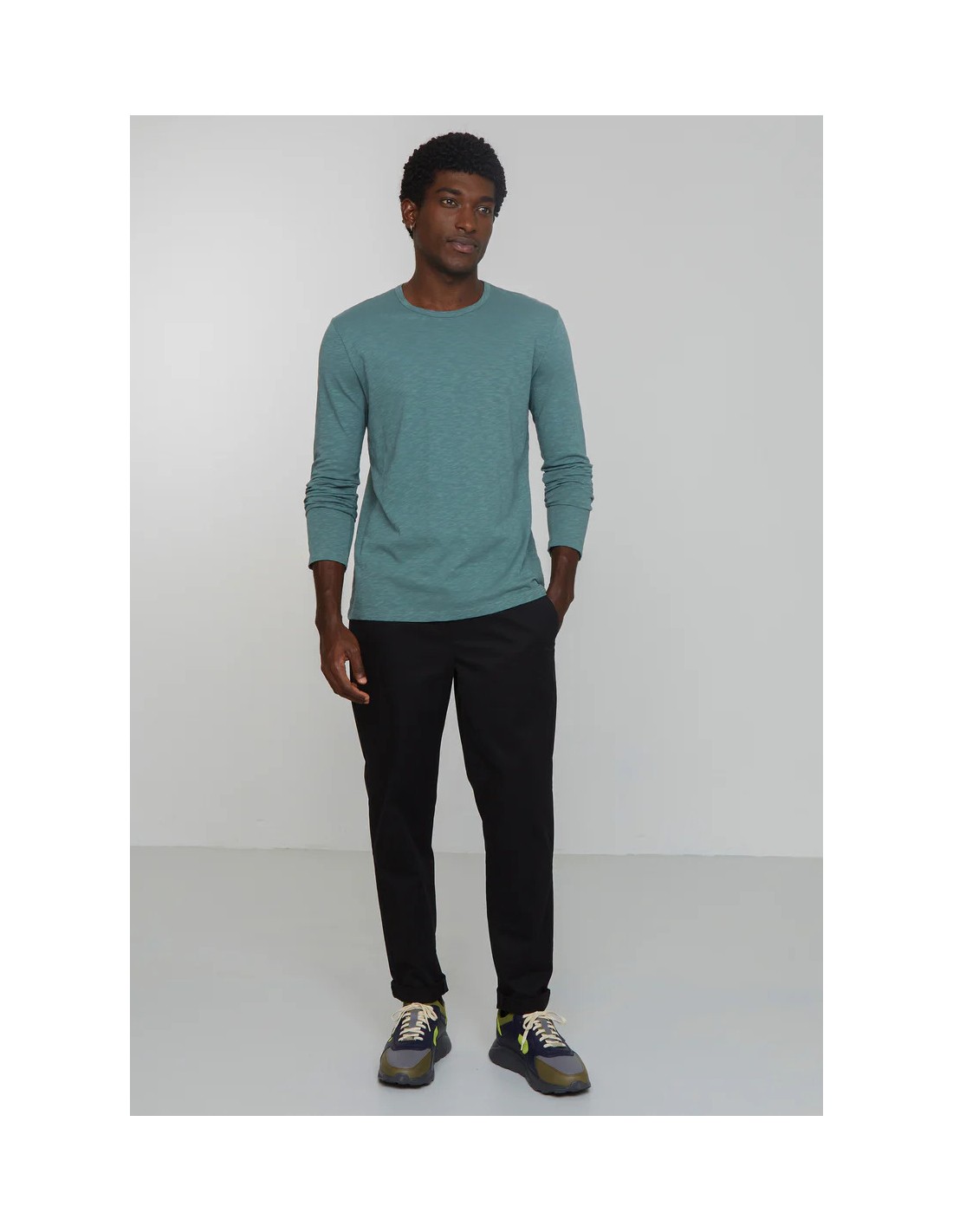 Un pantalone comodo e versatile perfetto come alternativa al Jeans, il tessuto robusto ma traspirantissimo è 97% Cotone Biologico vegan, sostenibile e certificato GOTS e 3% Elastan.