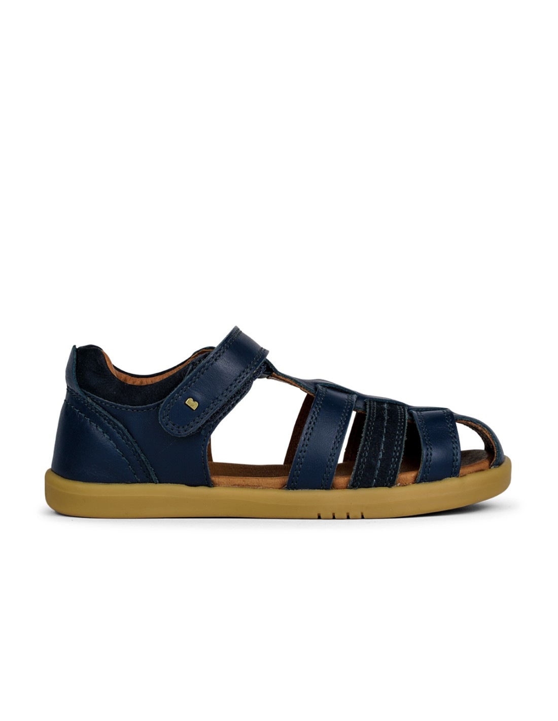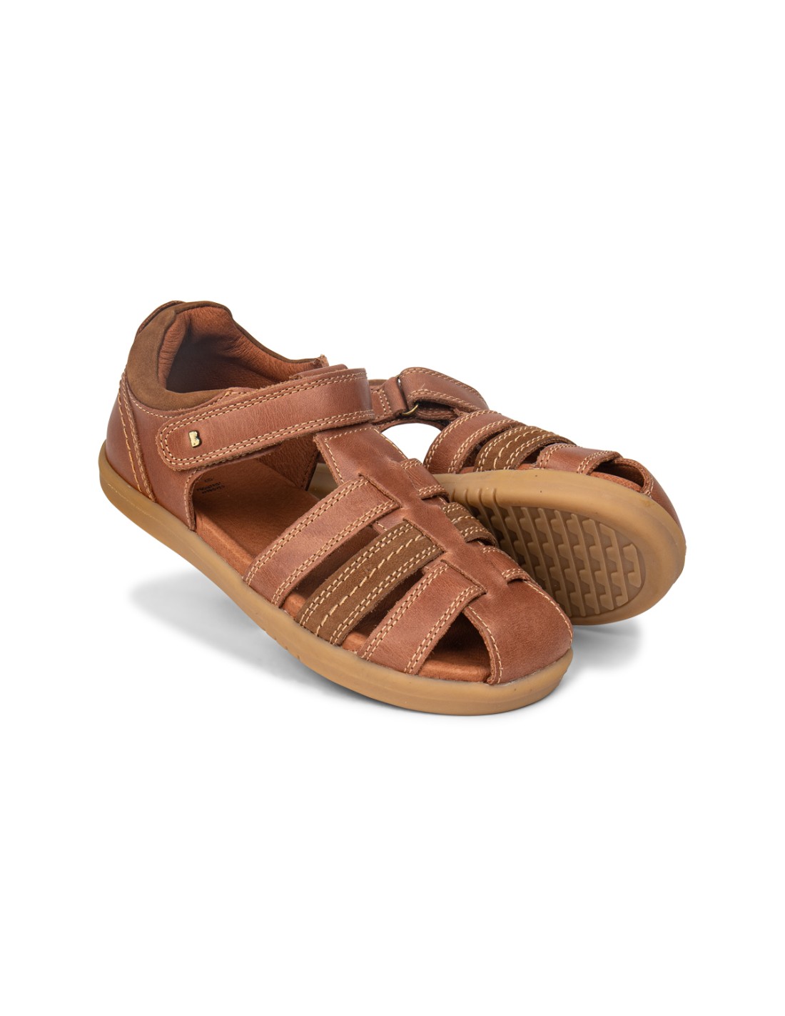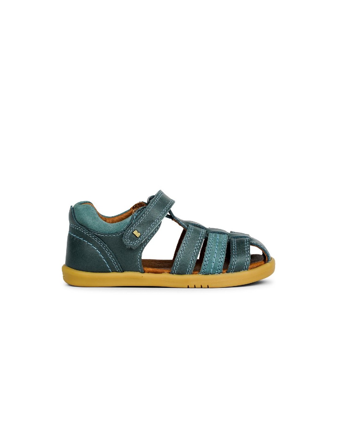 Sandalo in pelle dalla calzata ampia e comoda chiuso a ragnetto (per proteggere le dita durante i giochi) perfetto per la quotidianità dei bambini, a scuola e all'asilo
