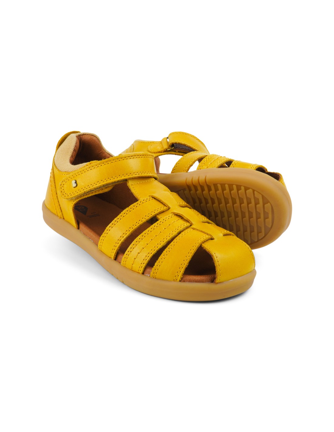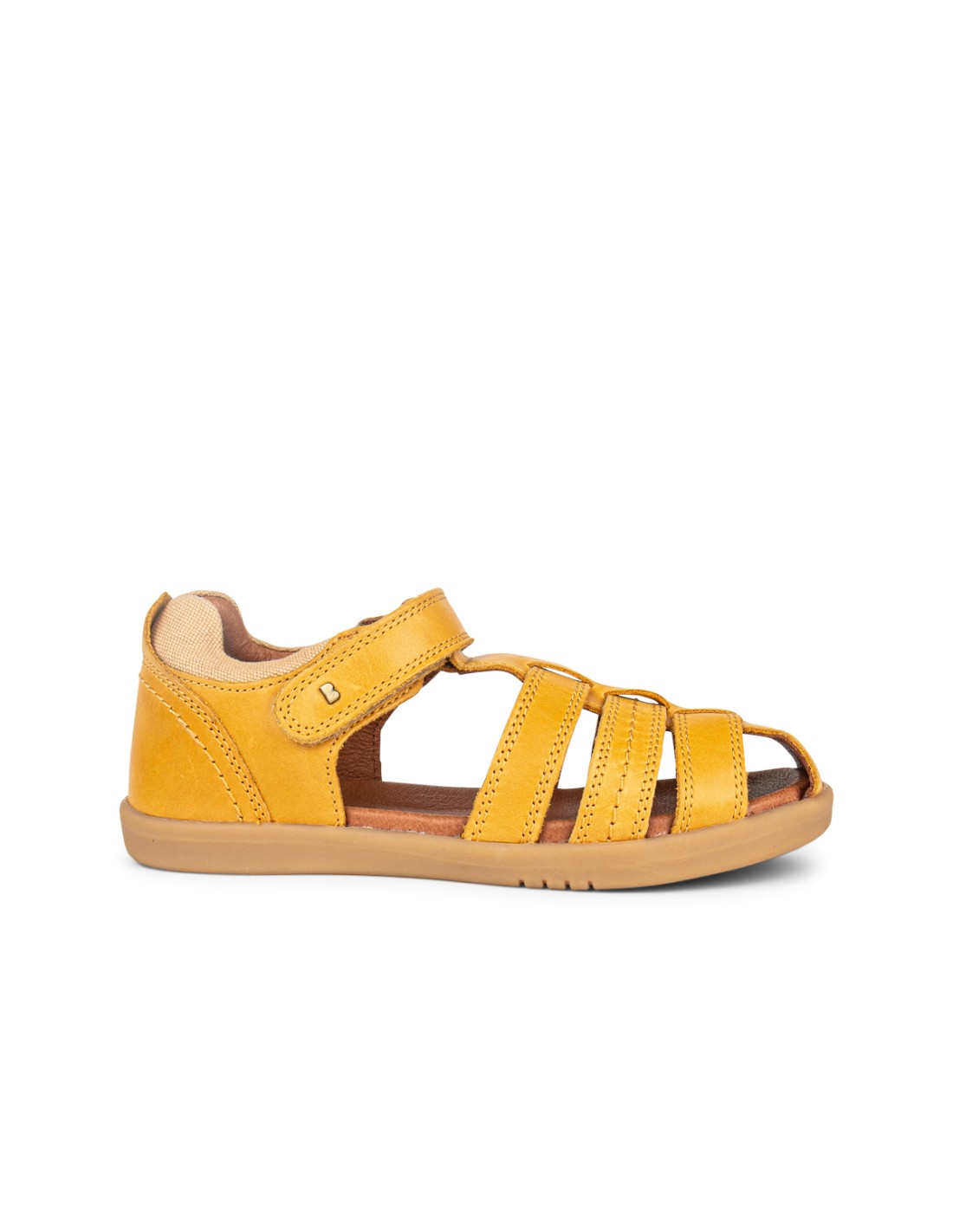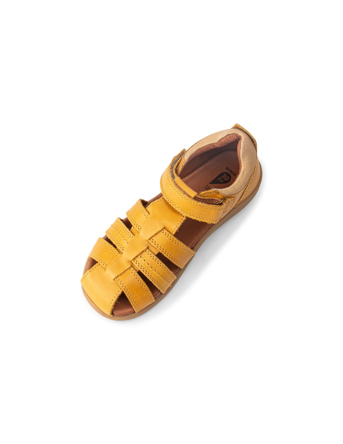 Sandalo in pelle dalla calzata ampia e comoda chiuso a ragnetto (per proteggere le dita durante i giochi) perfetto per la quotidianità dei bambini, a scuola e all'asilo