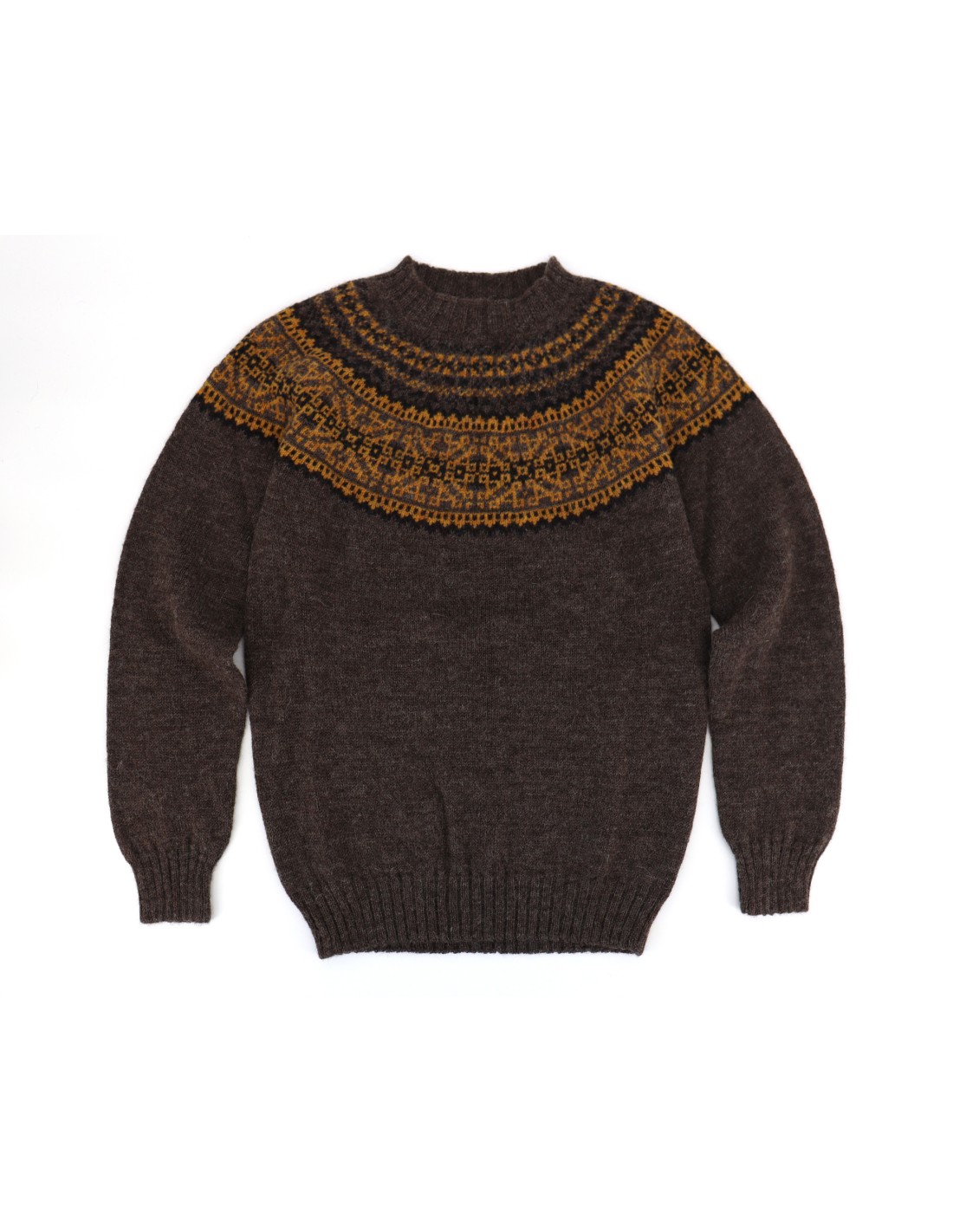 Il maglione scozzese quello "strong" realizzato in 100% Pura Lana Shetland con disegno fairisle su tutto il capo. Il colore della base è quello naturale delle pecore che vivono nelle isole Shetland, famose in tutto il mondo per questa lana così speciale, sottile e caldissima è rude e ispida al tatto ma diventa sempre più morbida indossandolo e usandolo.