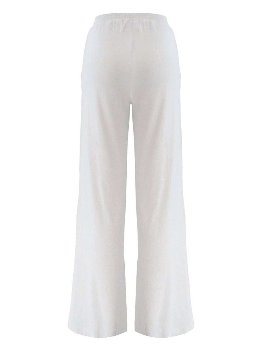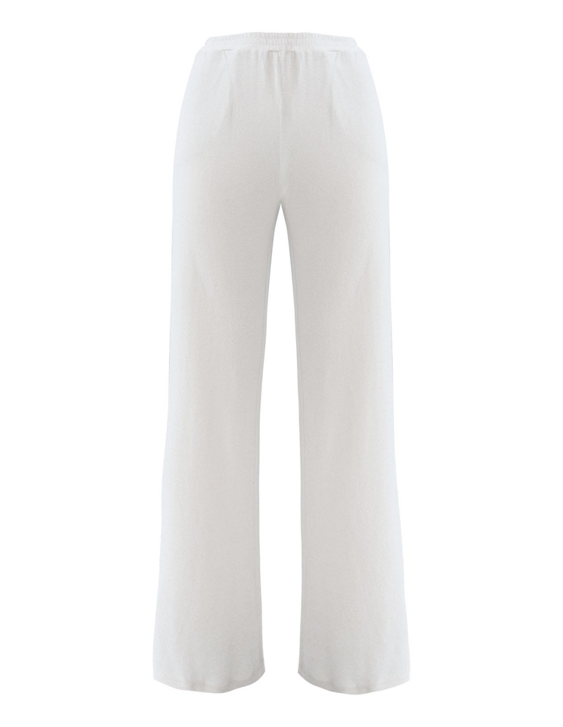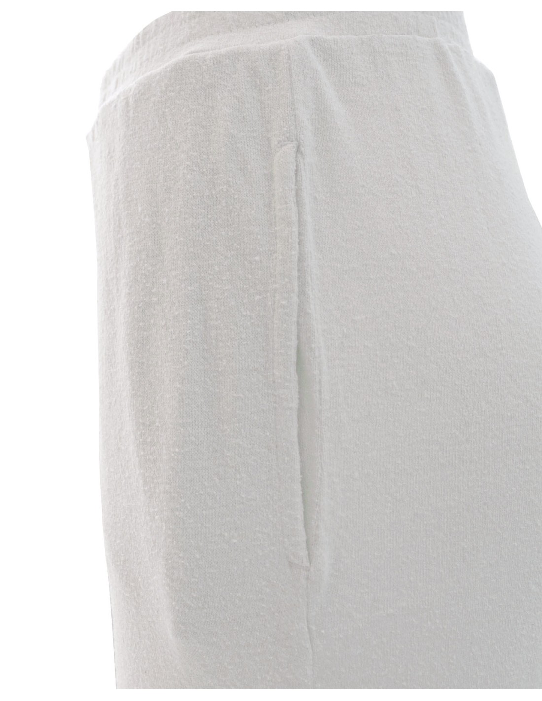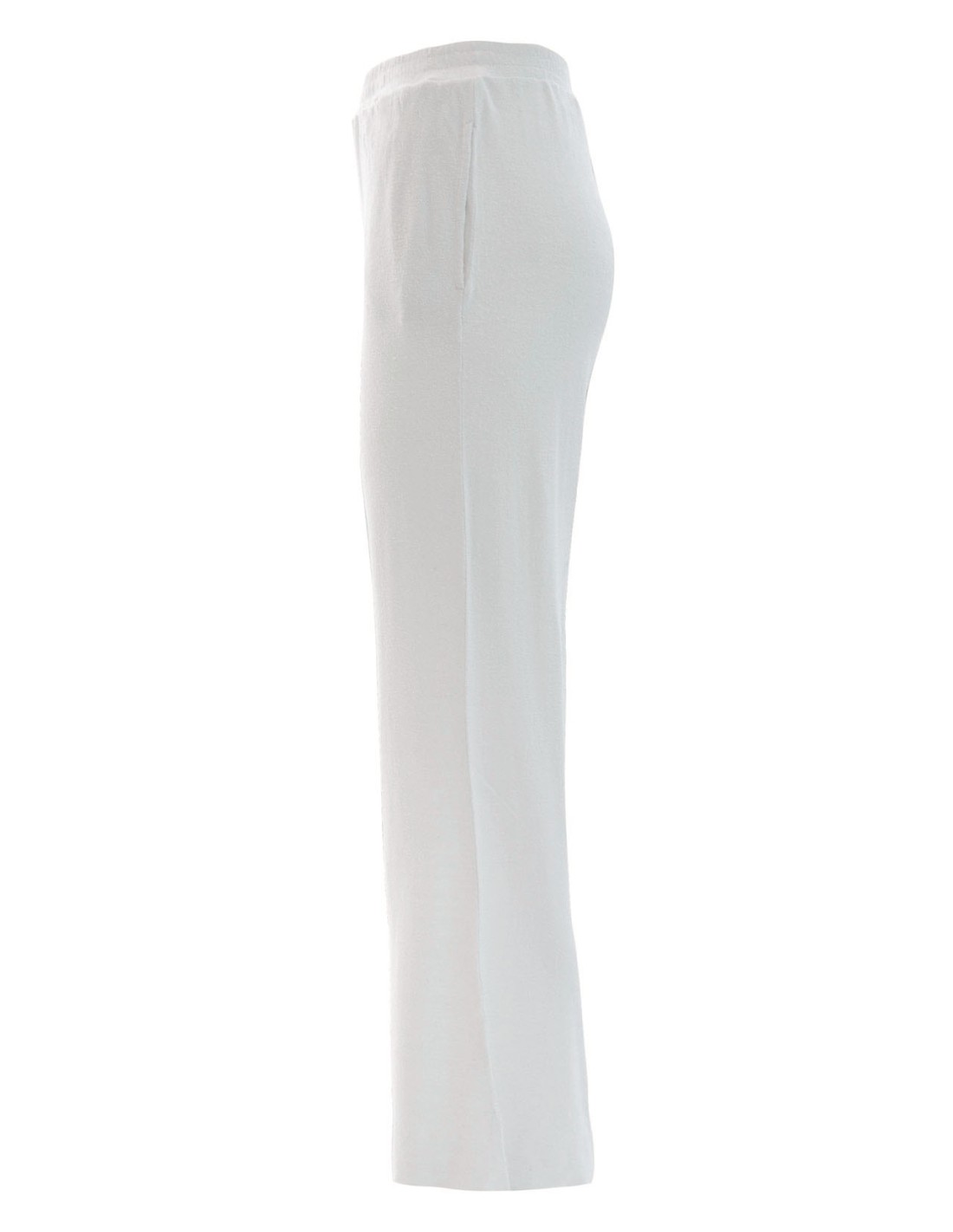 Modello ampio a palazzo a vita alta con elastico morbido (maternity Fluid) e piccole tasche a filetto laterali. Bellissimo in abbinamento alla maglia nello stesso tessuto per un look Homewear o pigiama comodo e naturale.