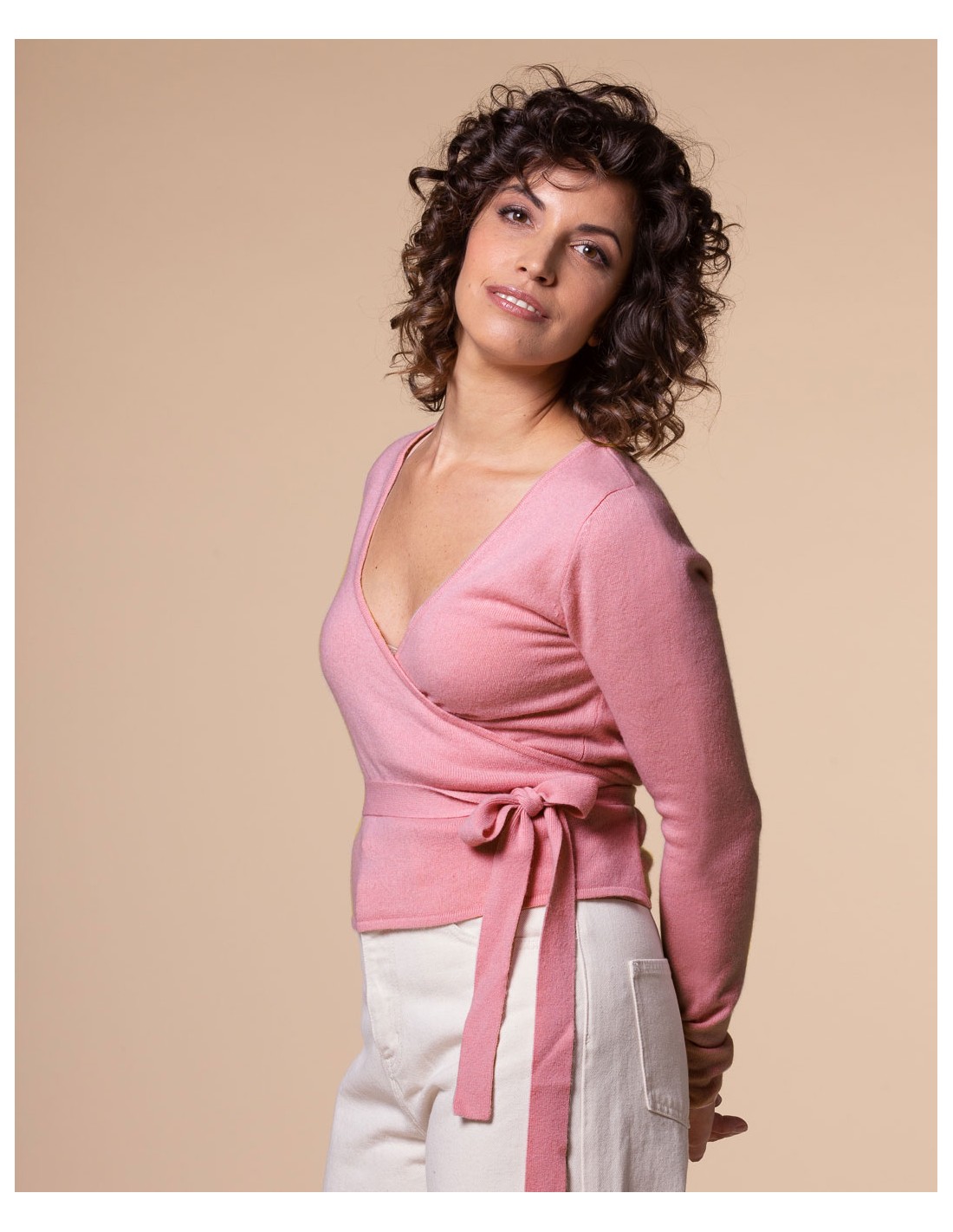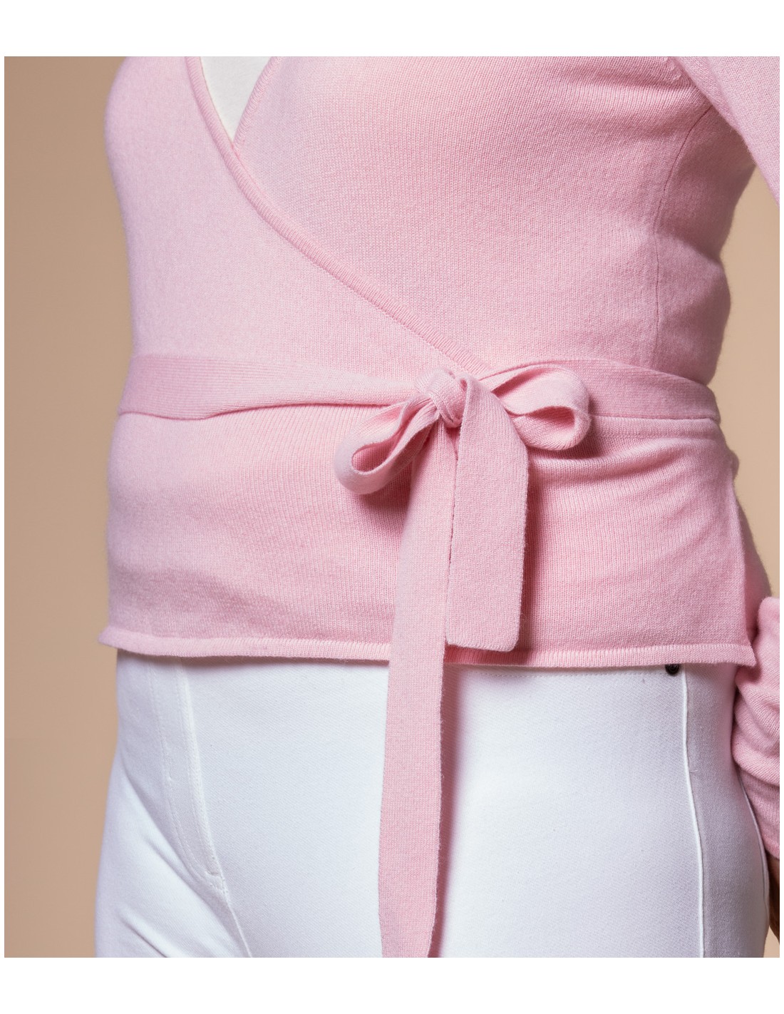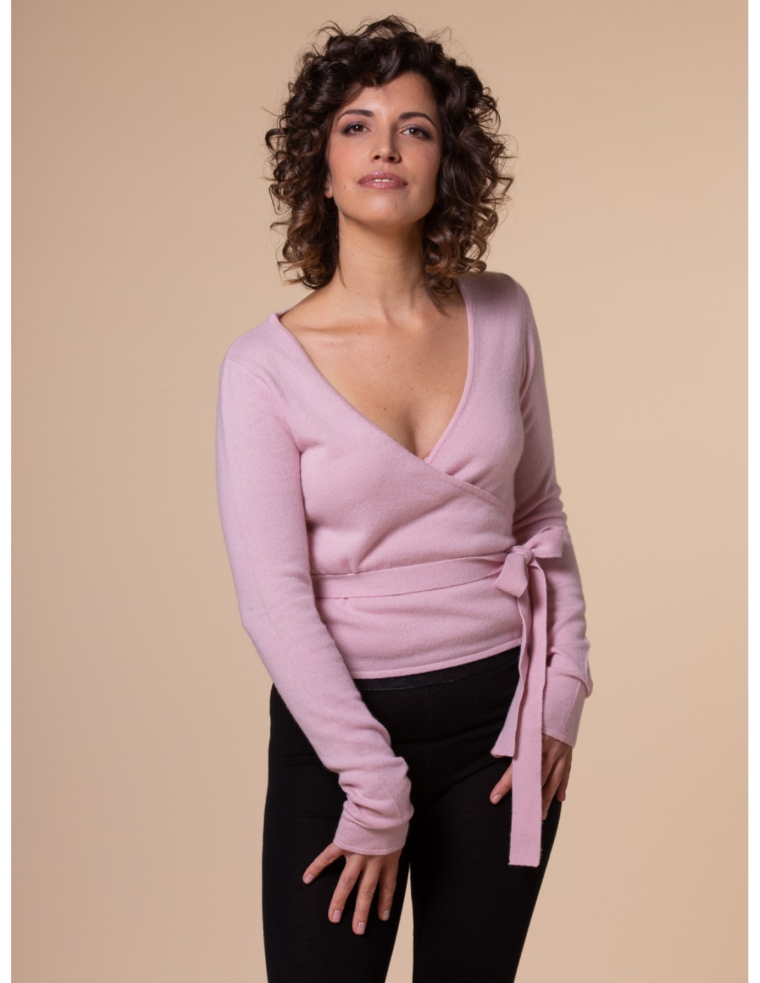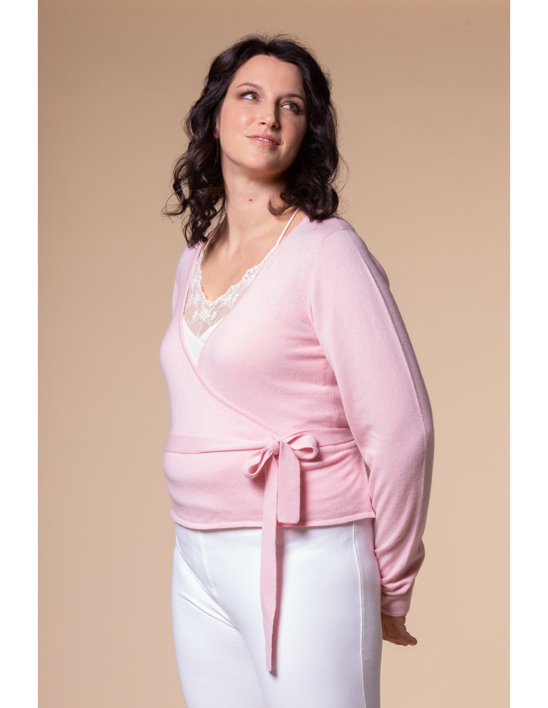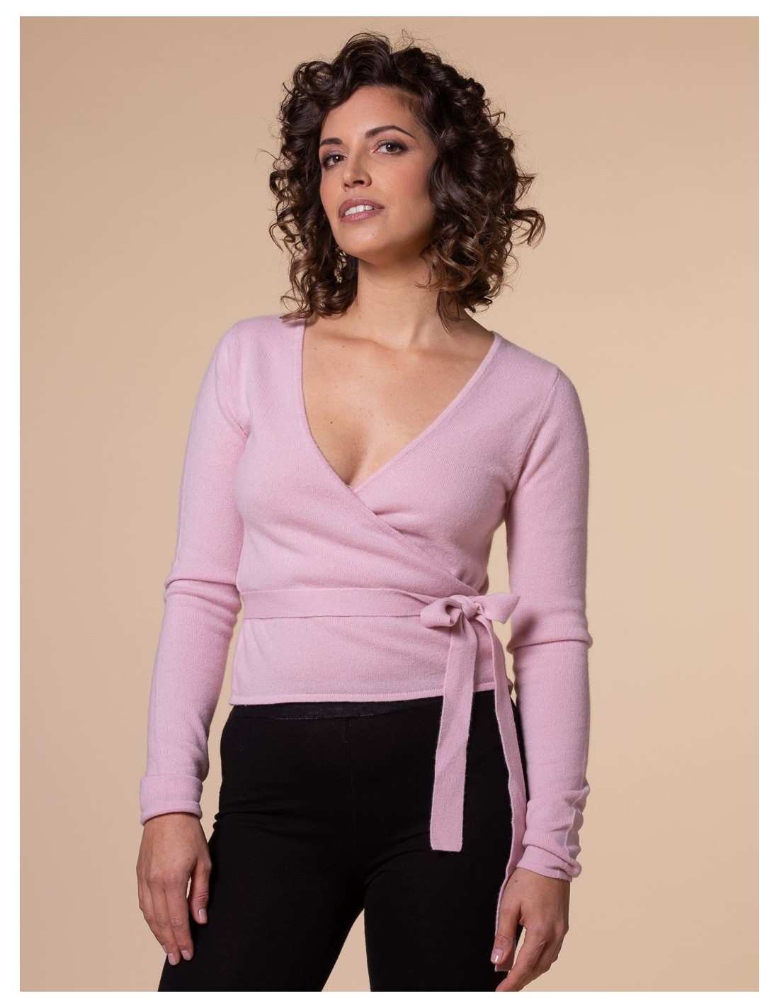 Lo scaldacuore più bello e caldo che c’è. Morbidissimo e raffinato, con incrocio e fiocchetto regolabile, maniche extralunghe e linea minimal e romantica. Da indossare come caldo golfino con quel gusto un po’ “danza”, ma anche — se serve — sopra l’abito da sposa. Un classico rivisitato in 100% puro cashmere super soft.