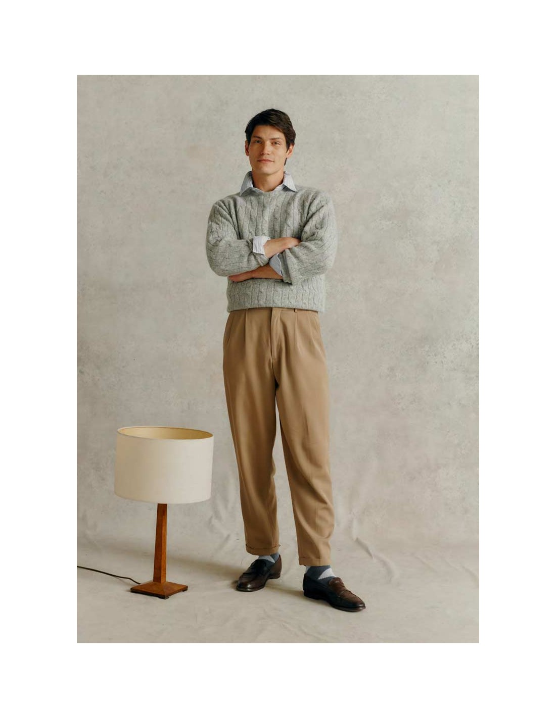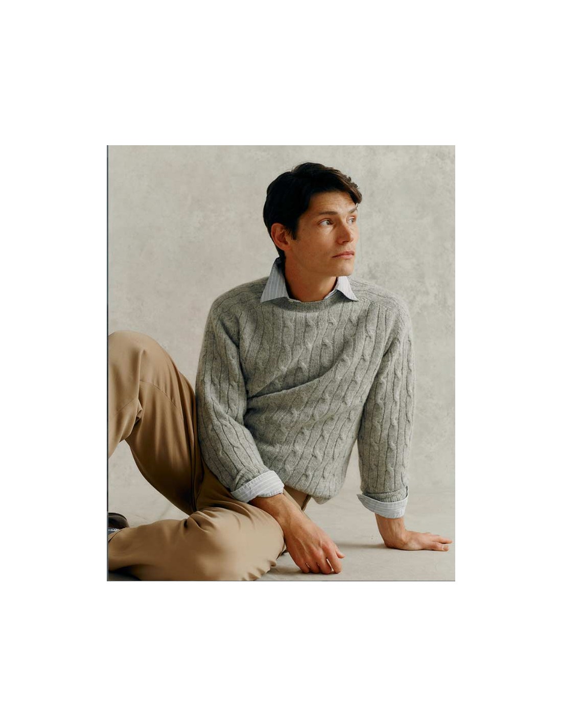 Maglione Uomo realizzato in 100% Lana Vergine Scozzese con lavorazione allover trecce su tutto il capo sia davanti che dietro.