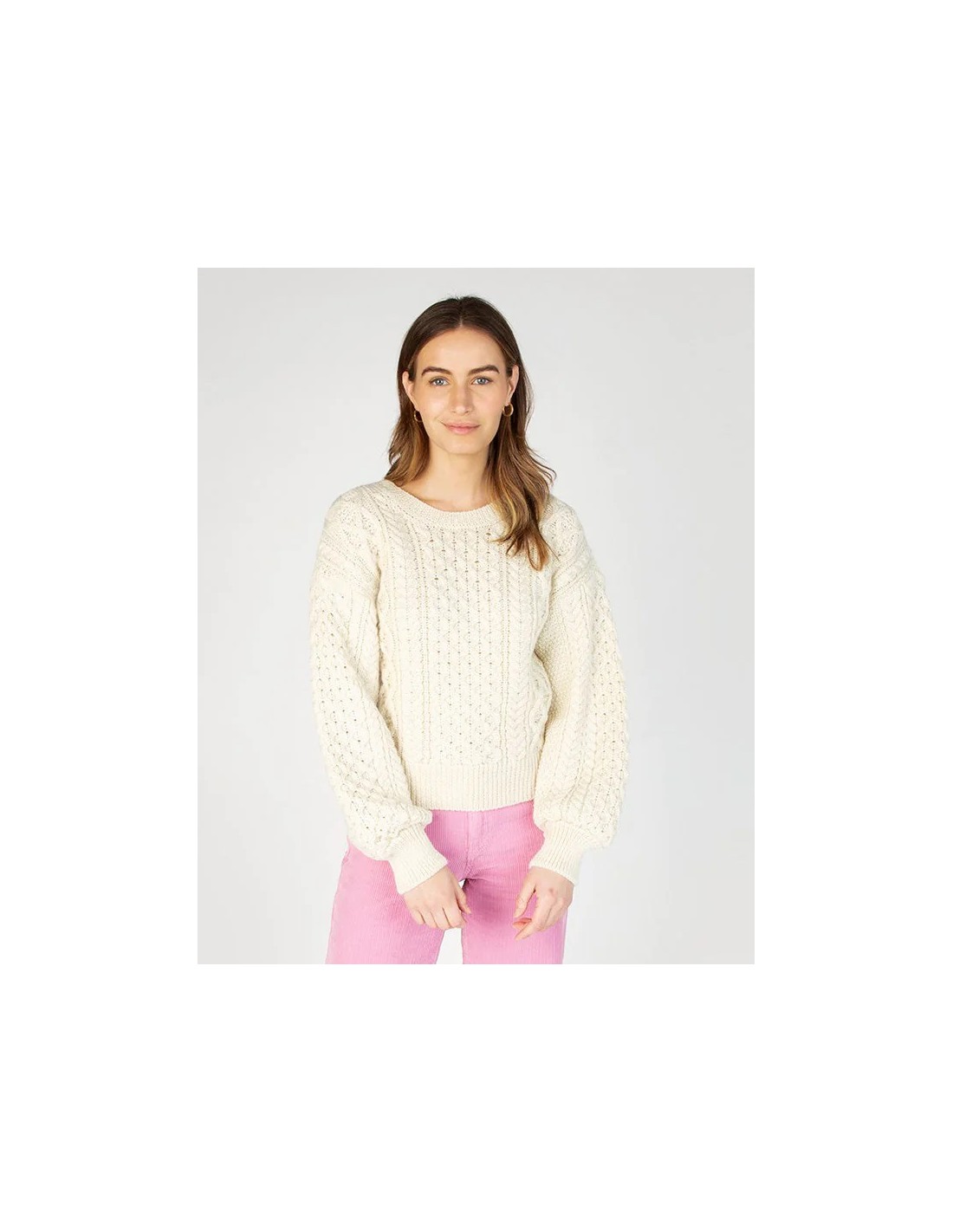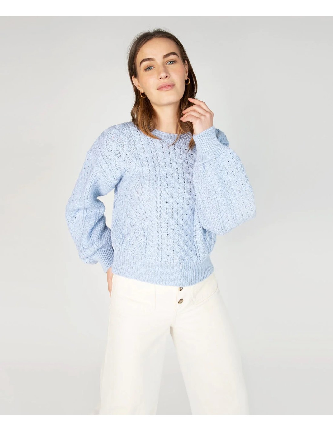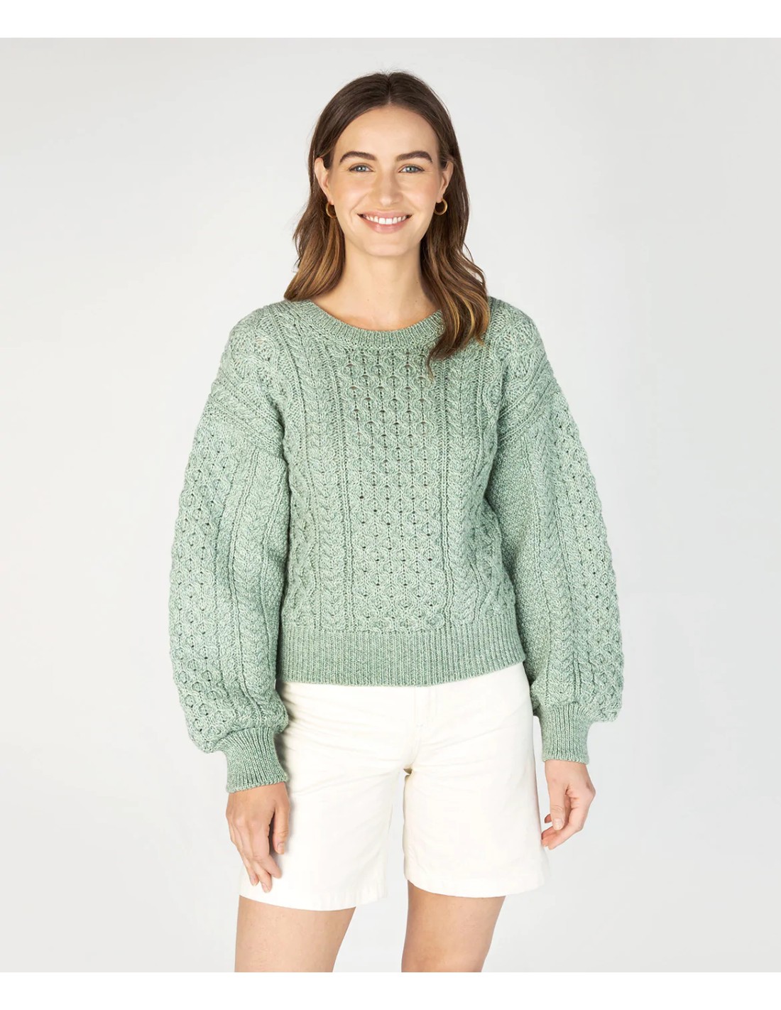 Bellissimo e caldo maglione realizzato in 100% Lana Vergine Irlandese con maniche a palloncino e taglio crop top. Prodotto artigianalmente in Irlanda.