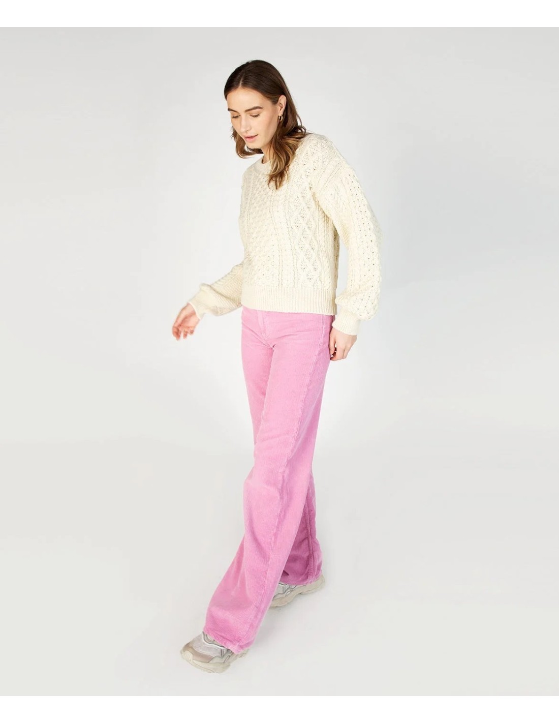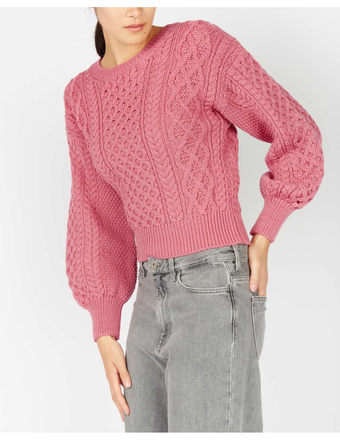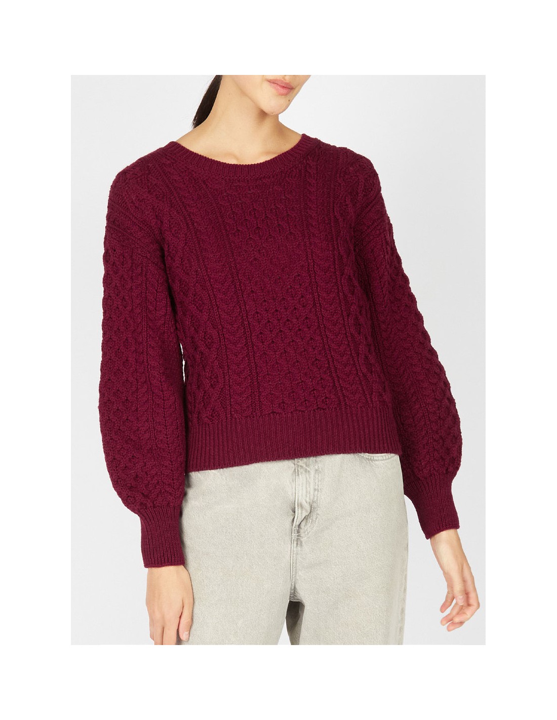Bellissimo e caldo maglione realizzato in 100% Lana Vergine Irlandese con maniche a palloncino e taglio crop top. Prodotto artigianalmente in Irlanda.