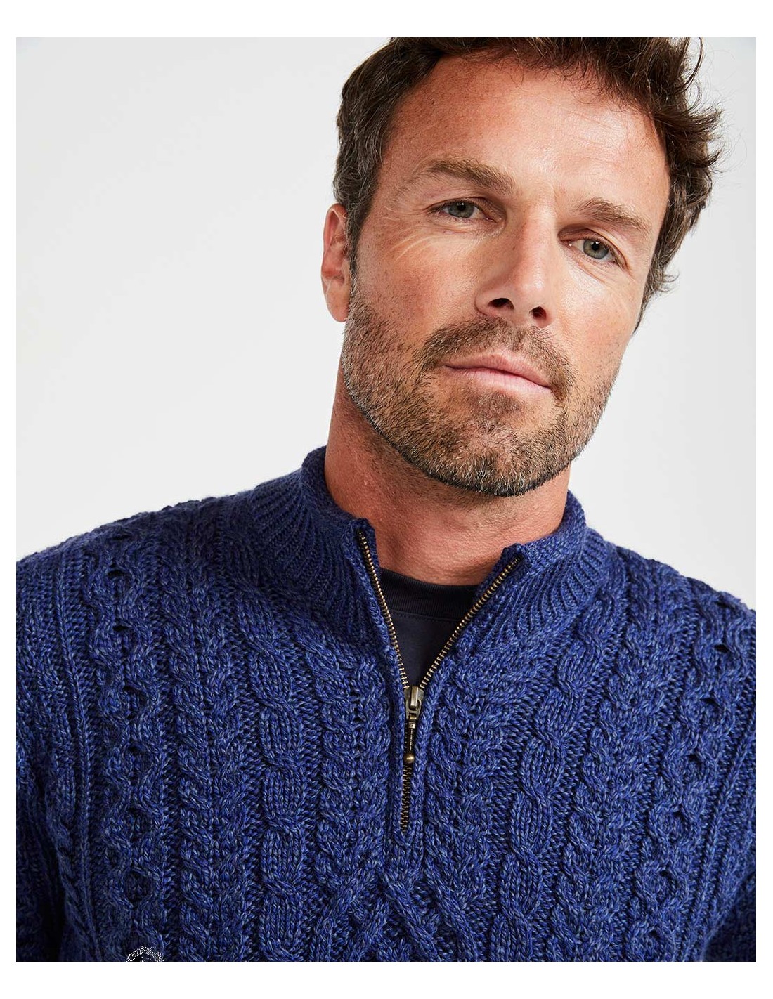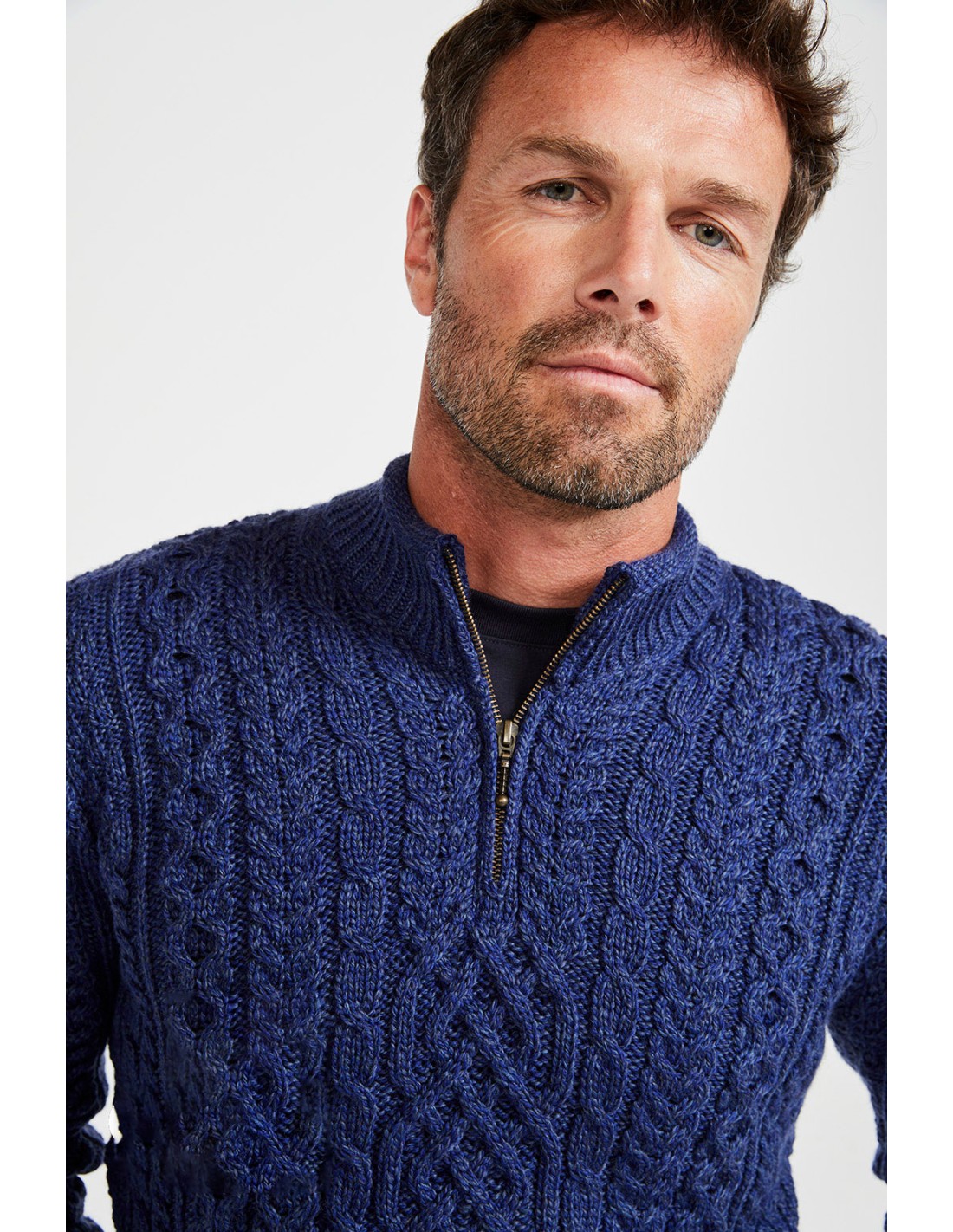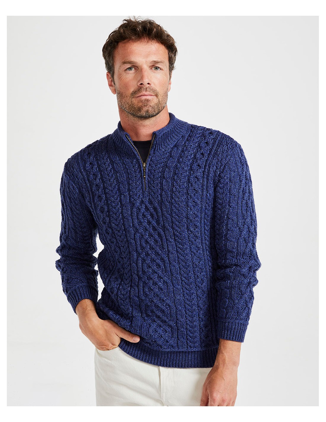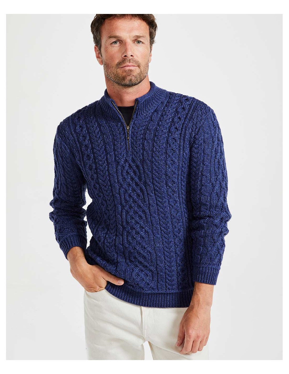 Bellissimo e caldo maglione Uomo realizzato 100% Lana Vergine Irlandese Super Soft con scollo a mezza zip. Prodotto artigianalmente in Irlanda.