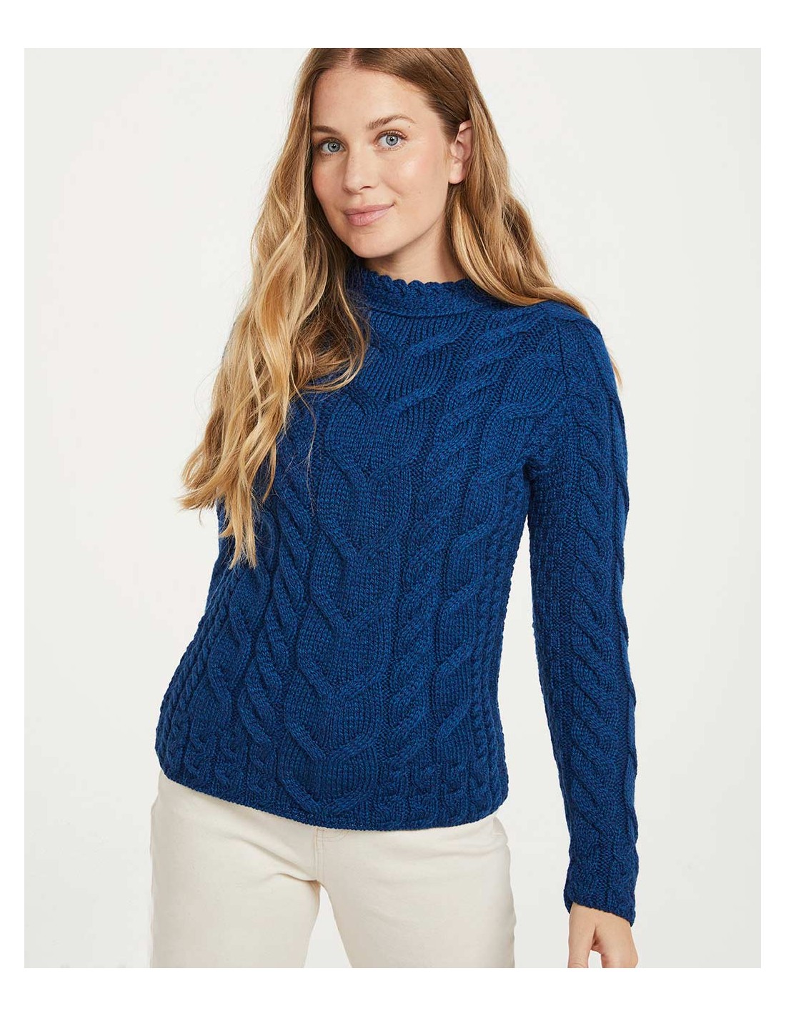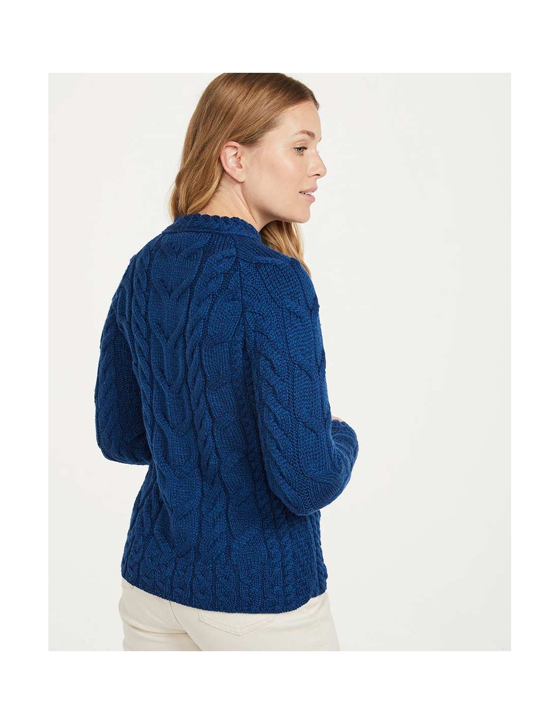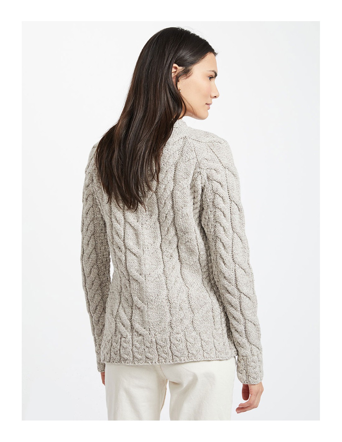 Capo realizzato in pura Lana Vergine Irlandese, secondo l'antica tradizione di lavorazione a maglia tipica della costa Irlandese. Prodotto artigianale proveniente da quella che ora è uno dei più grandi maglifici storici d'Irlanda, ma che è nato come un'azienda a conduzione familiare guidata da Mrs Maura Hughes, una mamma di 13 figli nella costa Ovest dell'Irlanda.