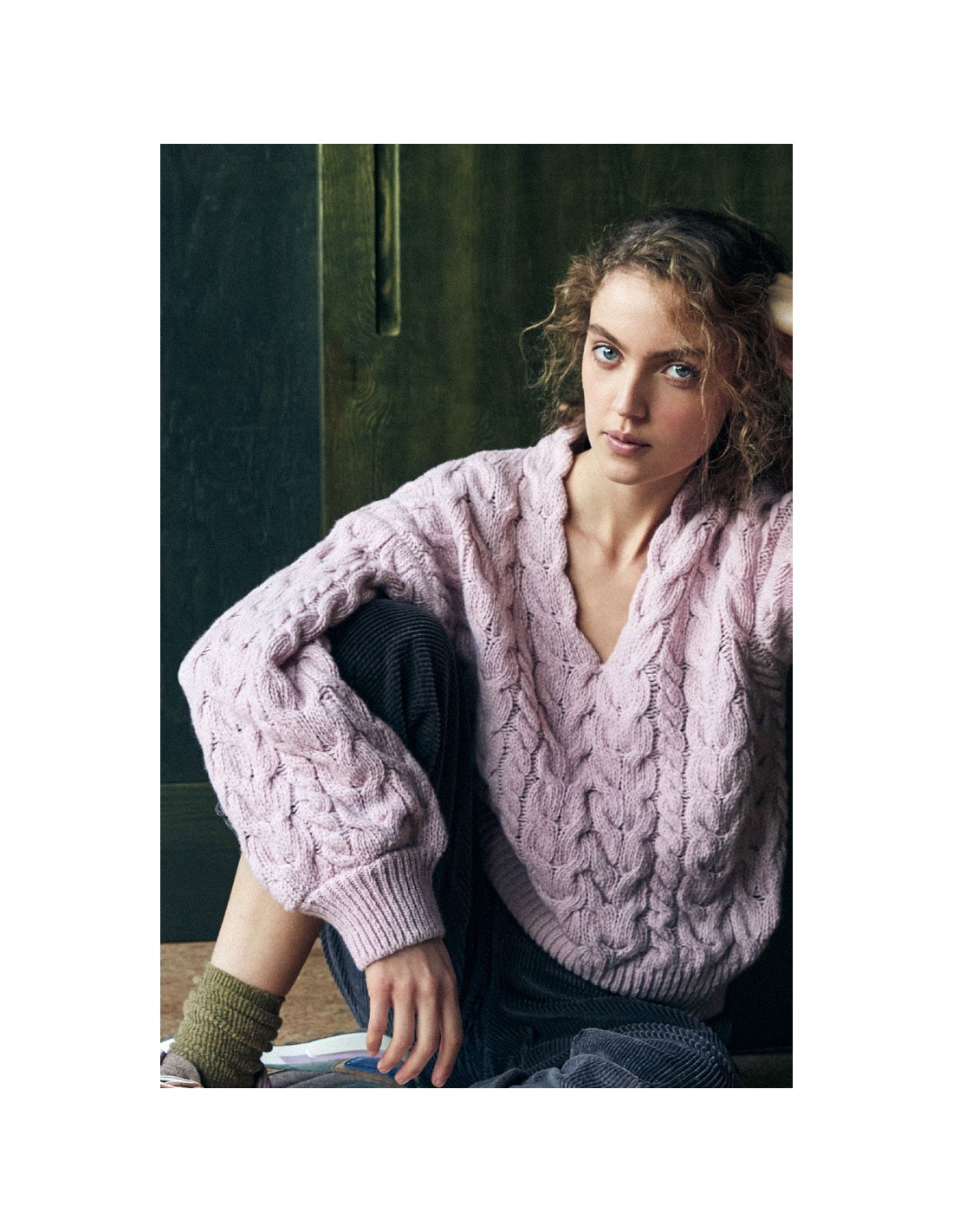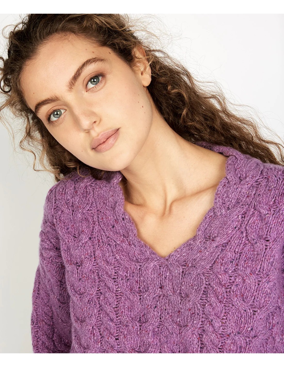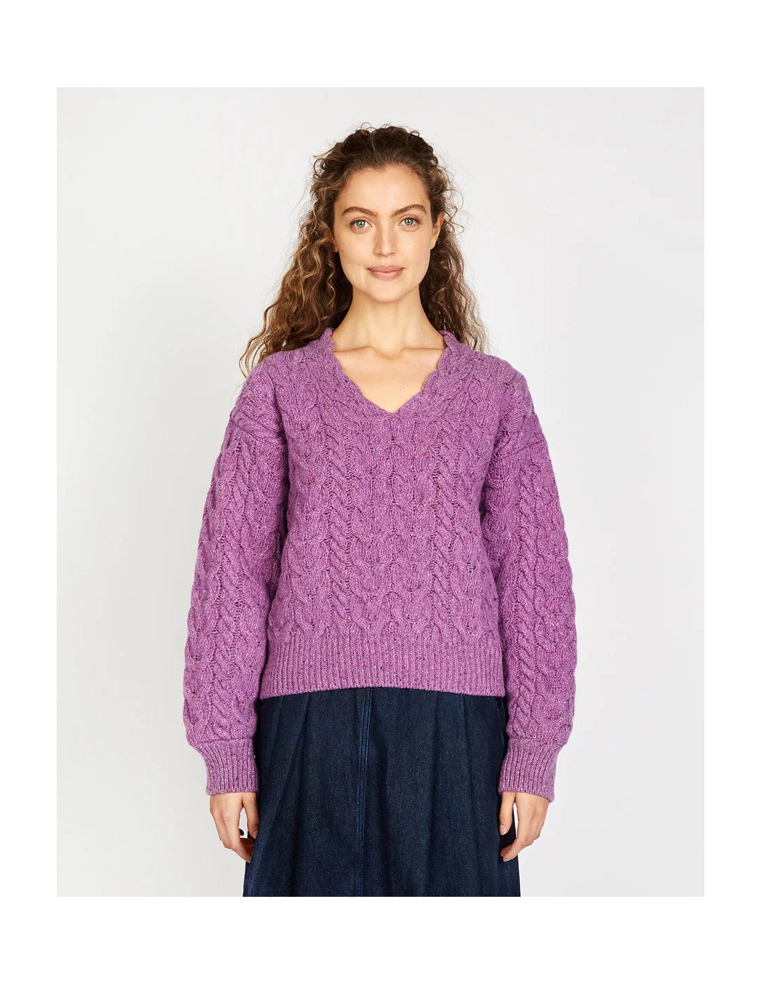 Bellissimo e caldo maglione realizzato in Lana Irlande e Cashmere. Modello con scollo a V e maniche ampie a palloncino. Caldissimo autentico e naturale fatto in Irlanda.