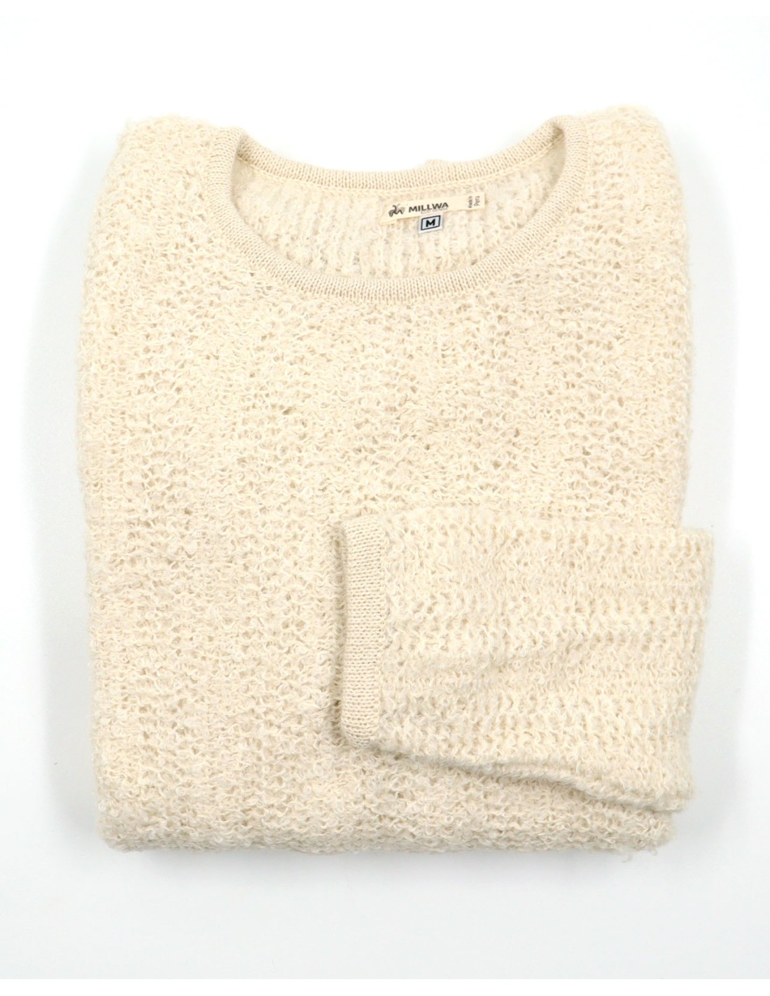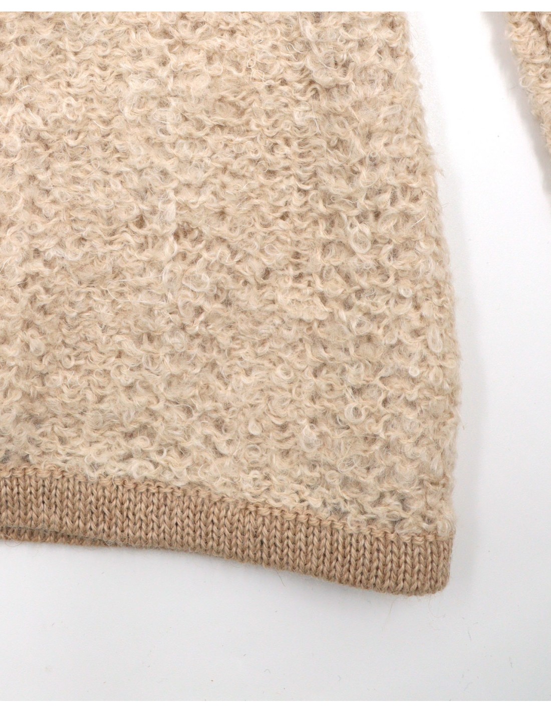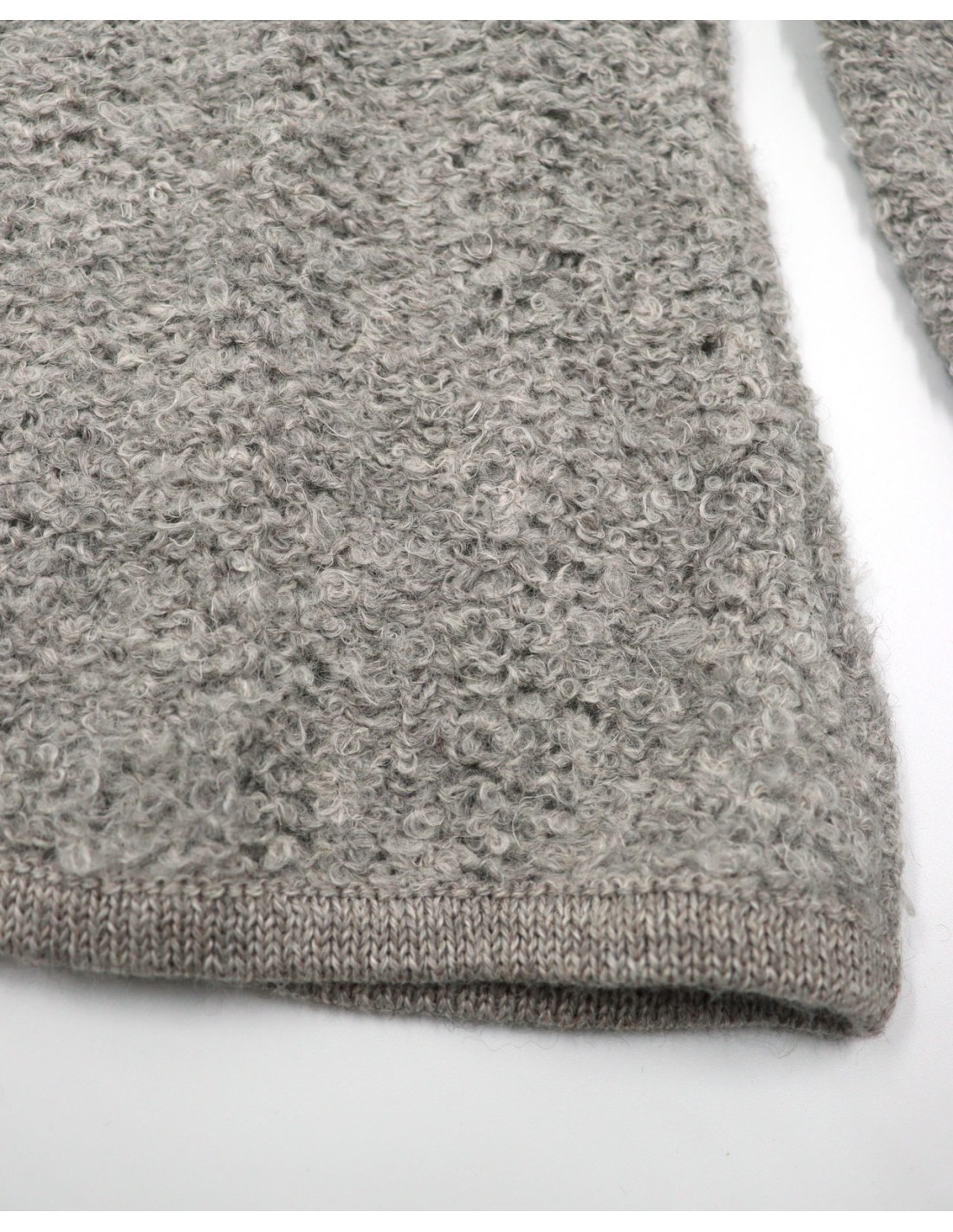 Bellissimo maglione donna realizzato in 80% Baby Alpaca, 11% Seta e 9% Lino con la particolare lavorazione "Bouclè". Sottile e super soft è molto caldo.