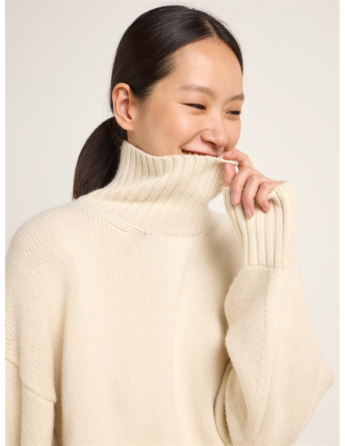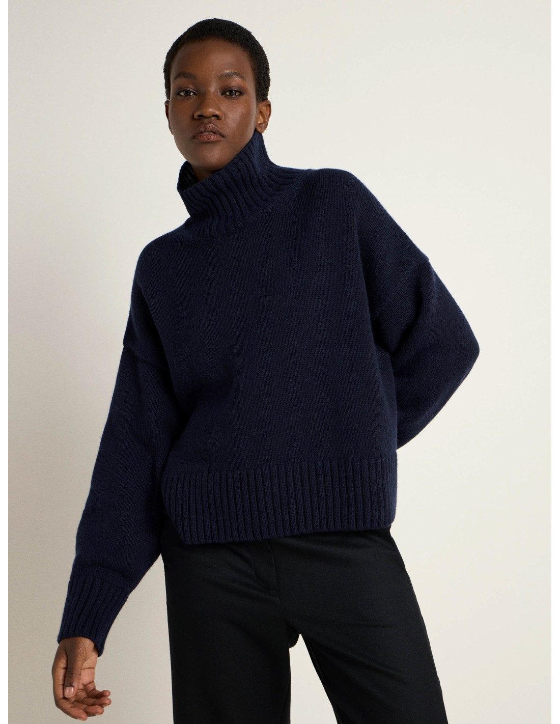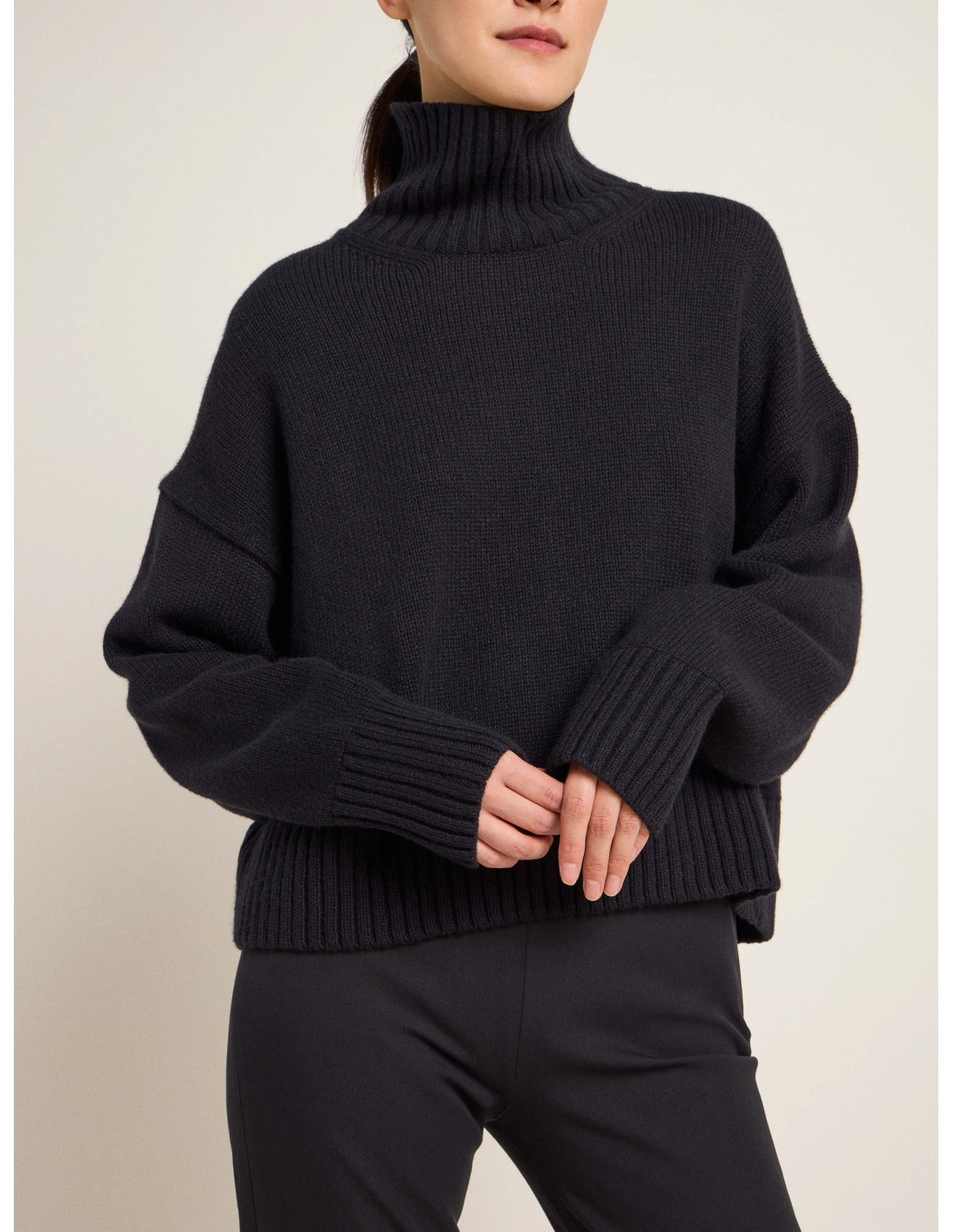 Morbidissimo e caldo Maglione dal taglio Oversize con collo alto e morbido realizzato in Lana Merino e Cotone Biologico.