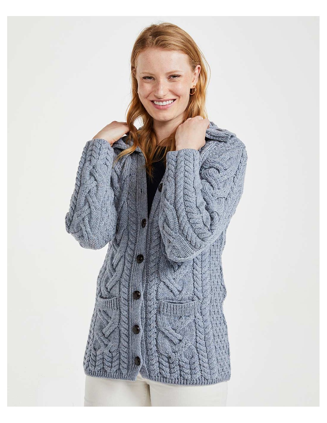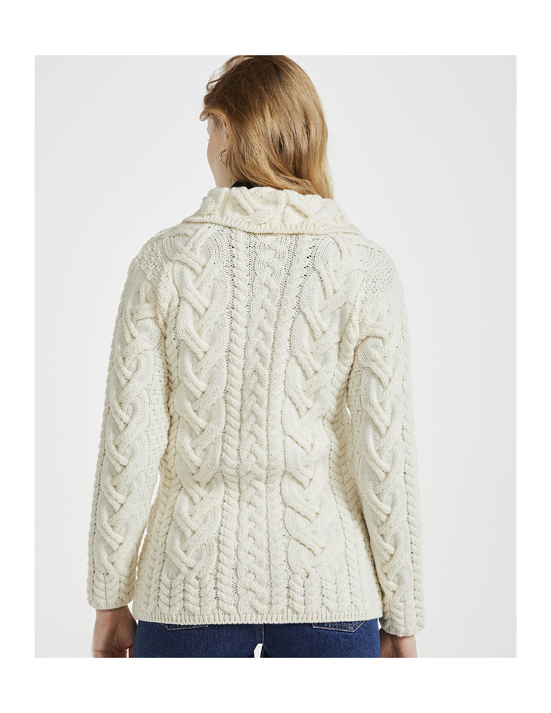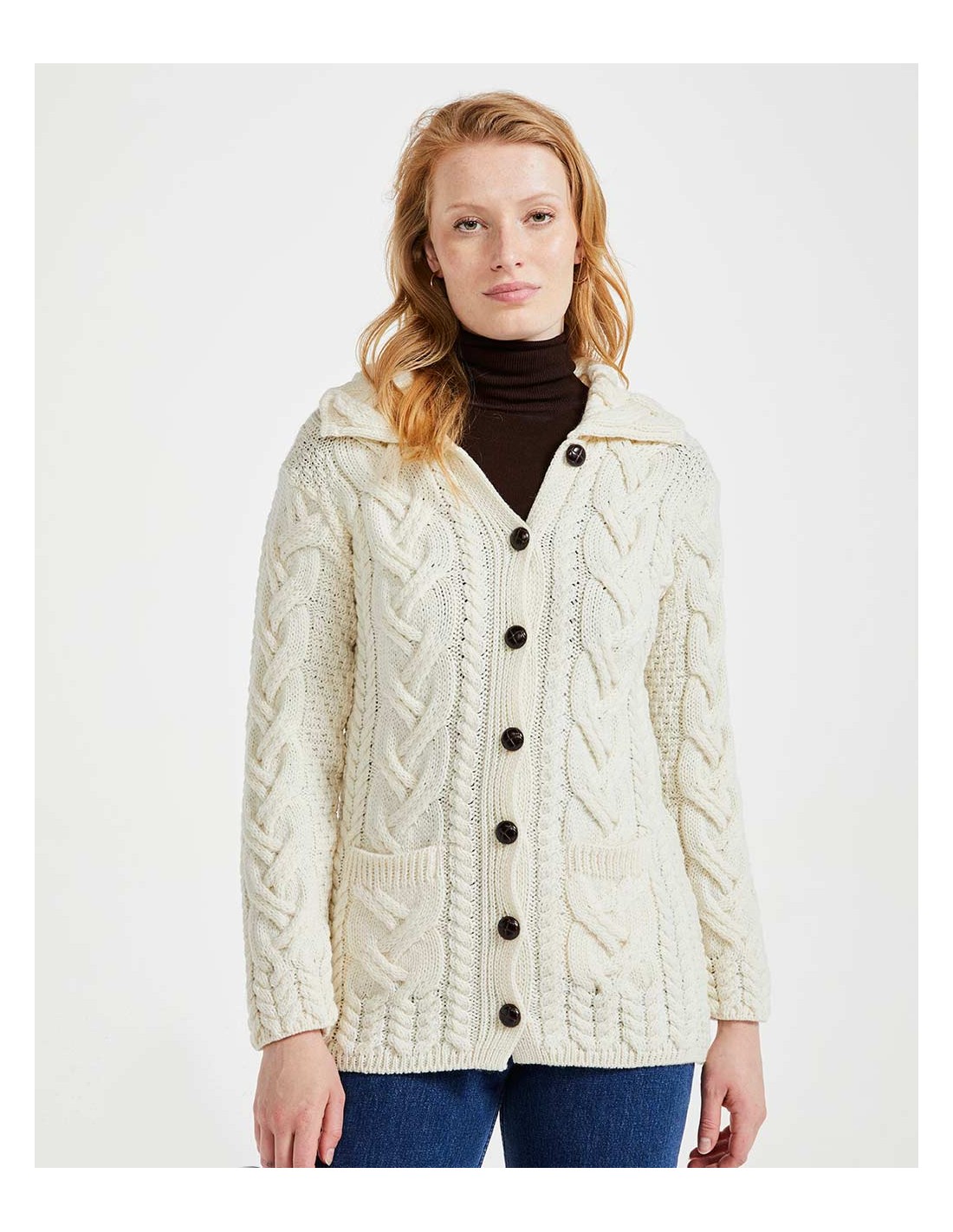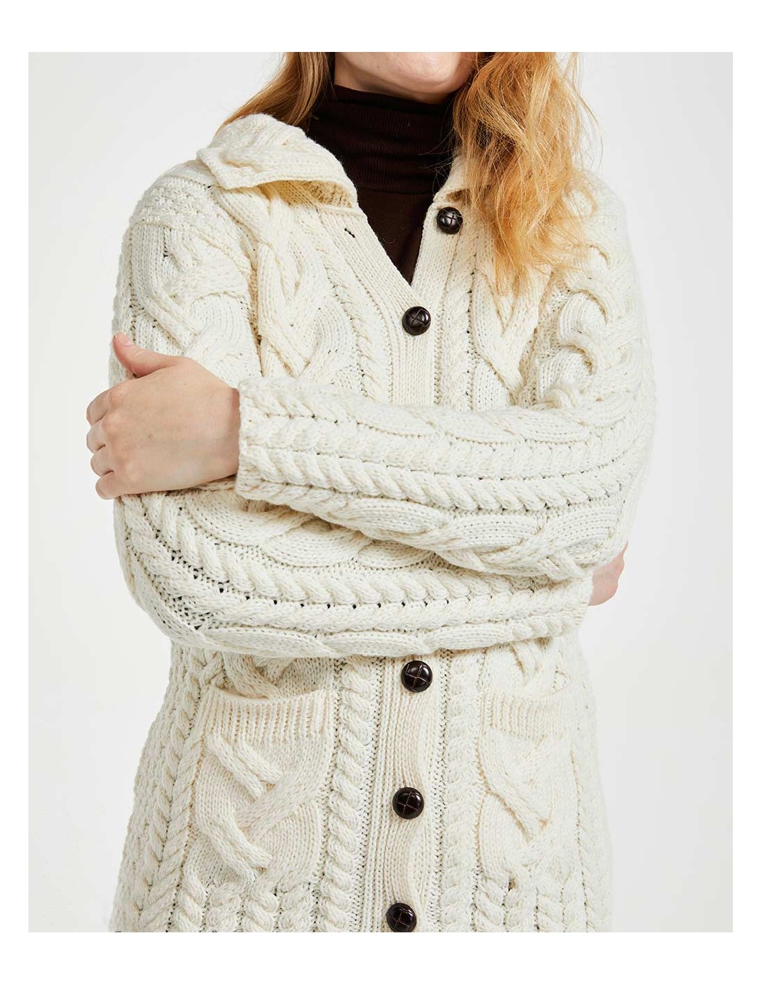 Che si tratti del punto a treccia che augura buona fortuna o il punto a nido d'ape che simboleggia una ricompensa per il duro lavoro, la maglieria Aran ci lega alla terra, ai costumi, all'artigianato e al patrimonio storico Irlandese.