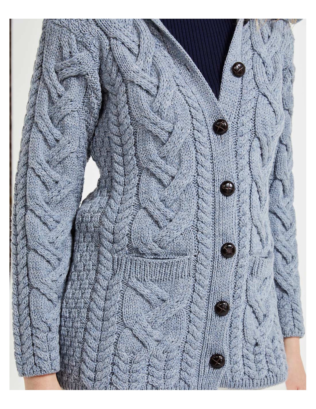 Bellissimo e caldo cardigan con tasche 100% Lana Merino Supersoft. Un capo autentico e artigianale fatto in Irlanda.