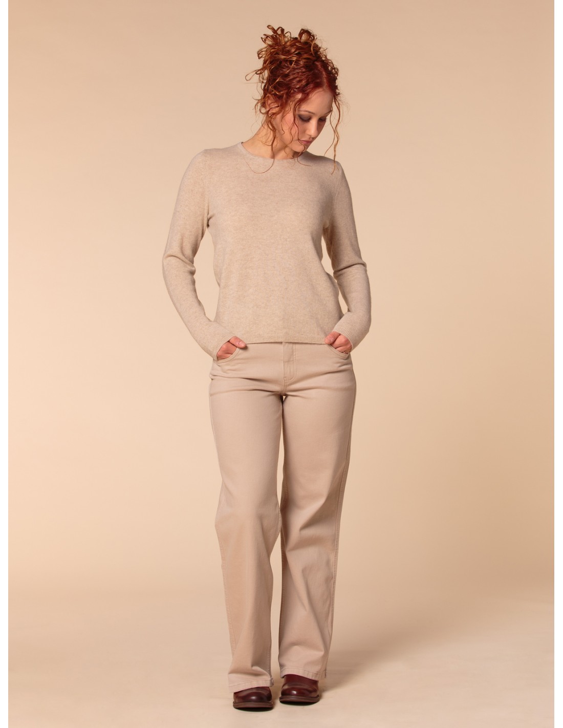 Il Pull Olivia è la quintessenza della semplicità raffinata. Realizzato in 100% Baby Cashmere, utilizza solo la parte più fine, soffice e preziosa del vello dell’animale, quella che si raccoglie una volta l’anno con la muta primaverile. È un filato rarissimo e lussuoso, incredibilmente morbido, sottile e naturalmente termoregolatore.