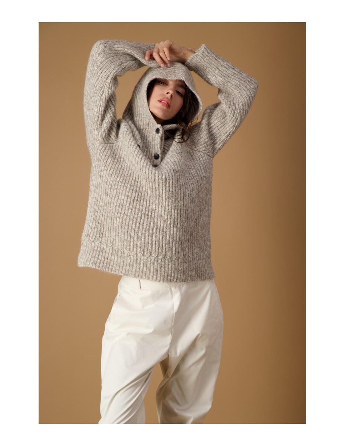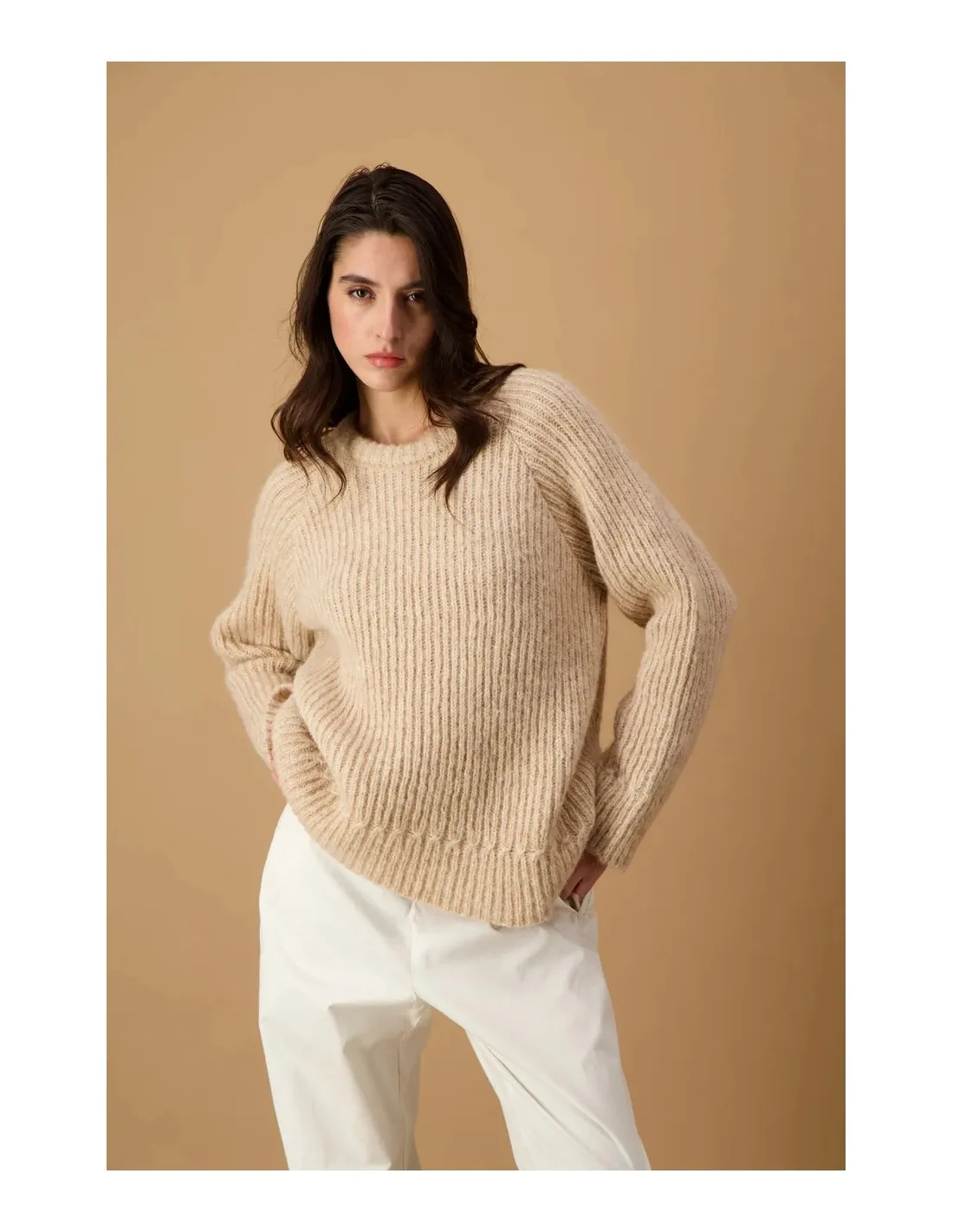 Caldissimo e prezioso maglione girocollo a costa grossa realizzato in un Mix di baby Alpaca e Cotone Biologico Gots.