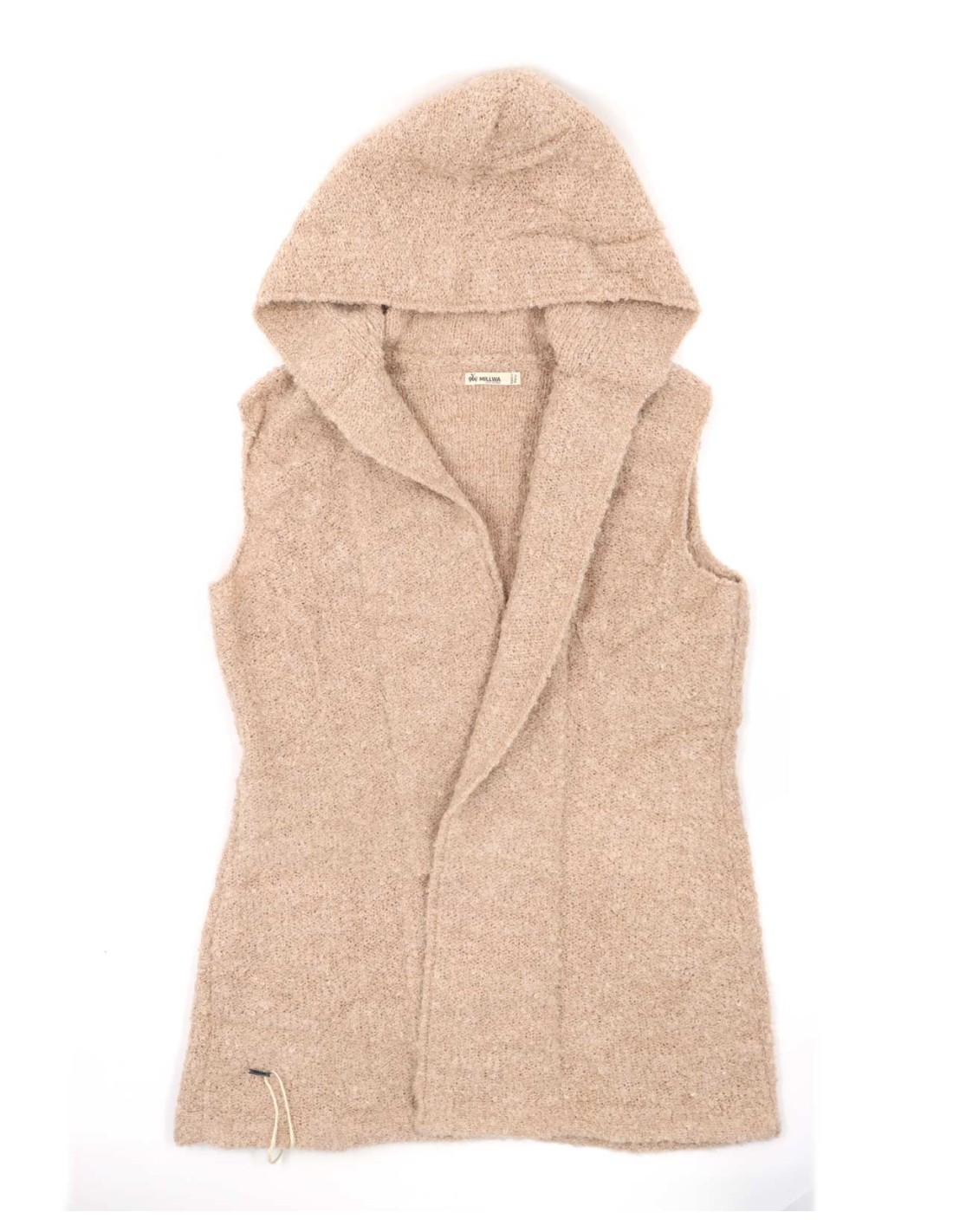 Bellissimo gilet smanicato con cappuccio realizzato in 80% Baby Alpaca, 11% Seta e 9% Lino con la particolare lavorazione "Bouclè". Sottile e super soft è molto caldo.