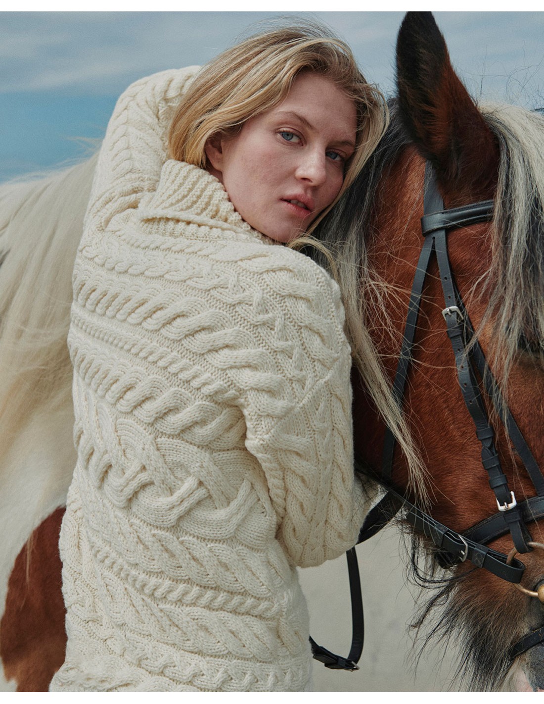 La forza dell’oceano e la bellezza di Westport si ritrovano nei dettagli di ogni capo: ogni punto dei maglioni Aran è ricco di simbolismo. La treccia augura prosperità e fortuna, il nido d’ape rappresenta il valore del duro lavoro e della ricompensa.