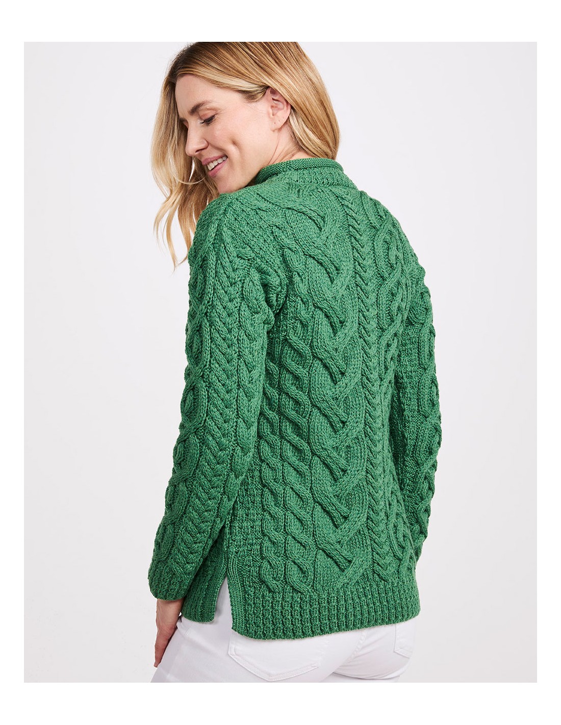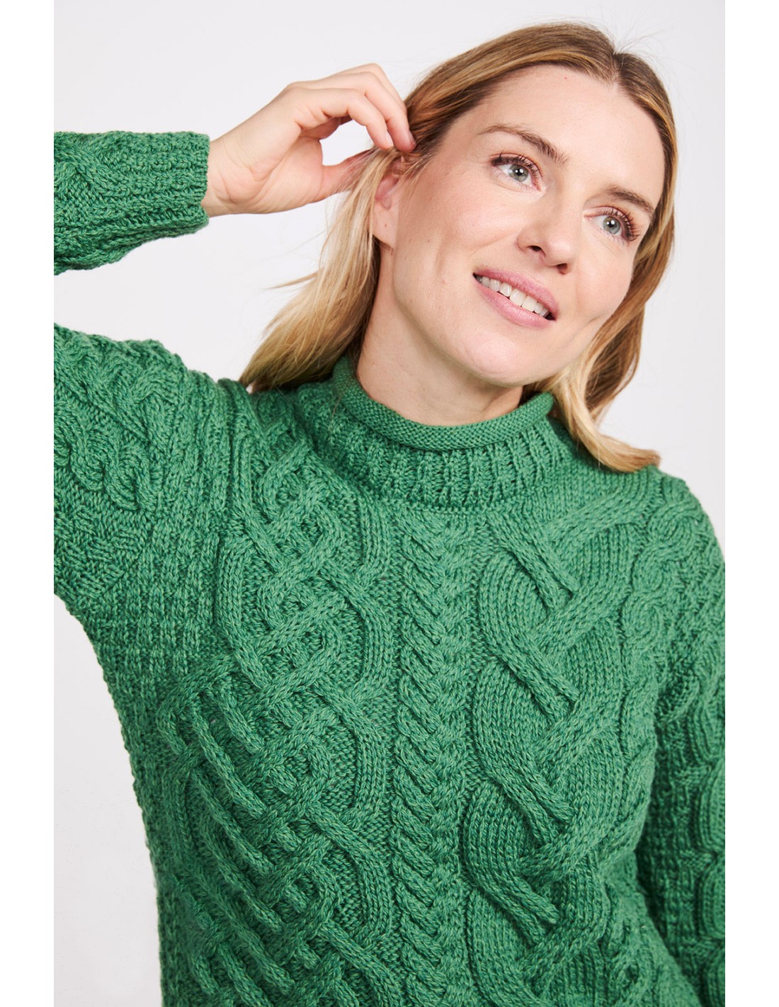 MAGLIONE ARAN IRLANDESE IN 100% LANA MERINO SUPERSOFT "EMERALD"