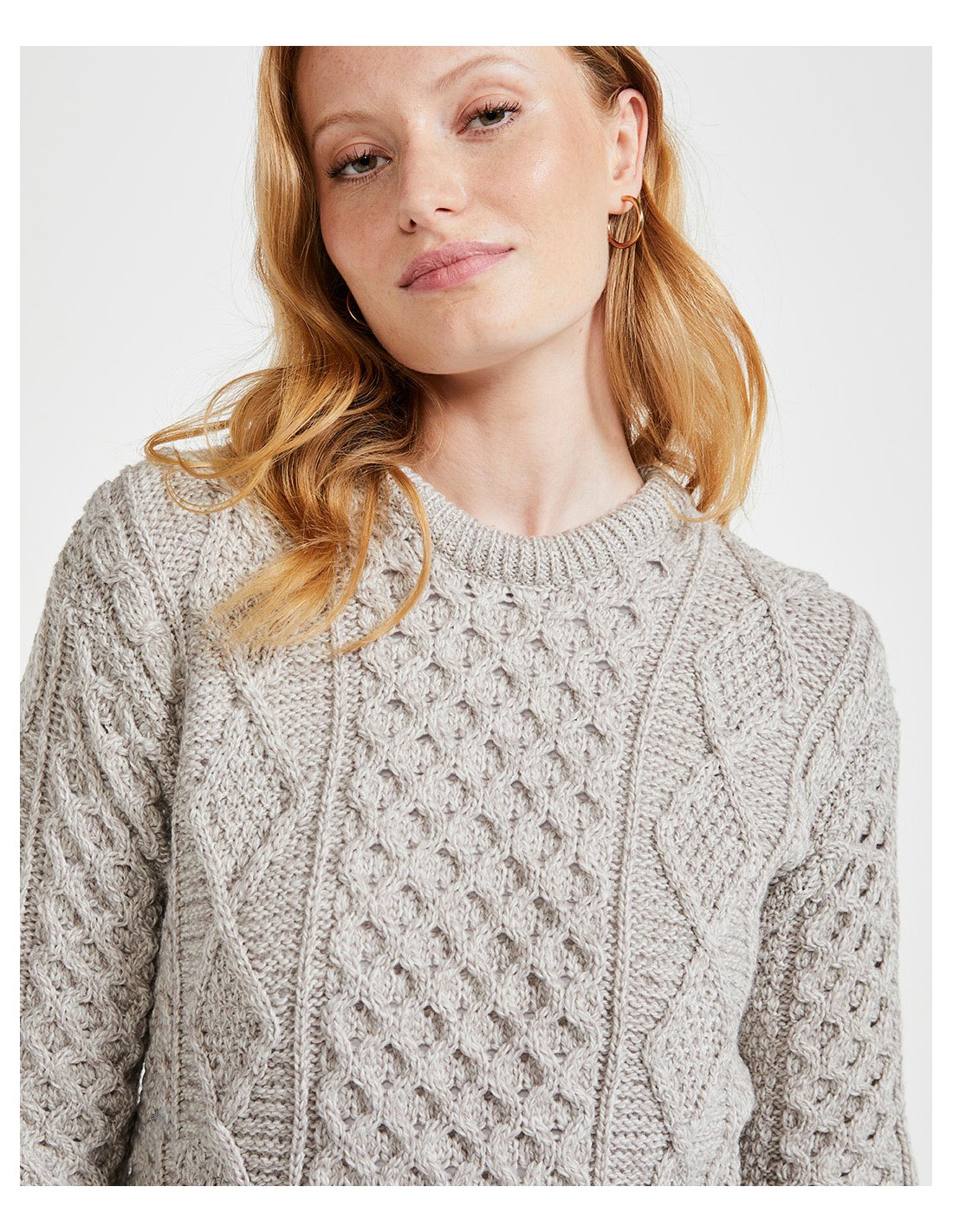 Maglione Aran tradizionale per eccellenza: un capo unisex in 100% lana merino supersoft, che racchiude l’autenticità irlandese e il comfort moderno. Realizzato artigianalmente in Irlanda, è caldo, morbido e senza tempo.