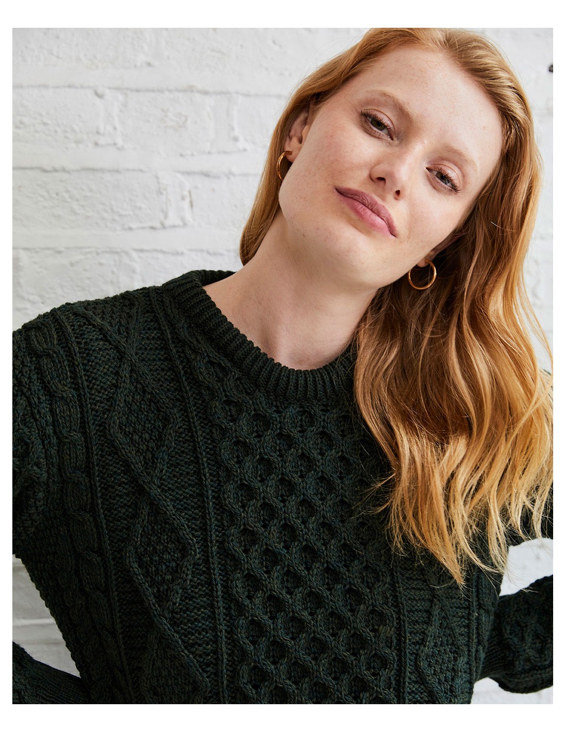 La vestibilità è classica, comoda e adatta a diverse fisicità, rendendolo un capo trasversale, perfetto come maglione quotidiano o come pezzo speciale da indossare nelle giornate fredde. Un capo che racconta il legame profondo tra artigianato e paesaggio irlandese.