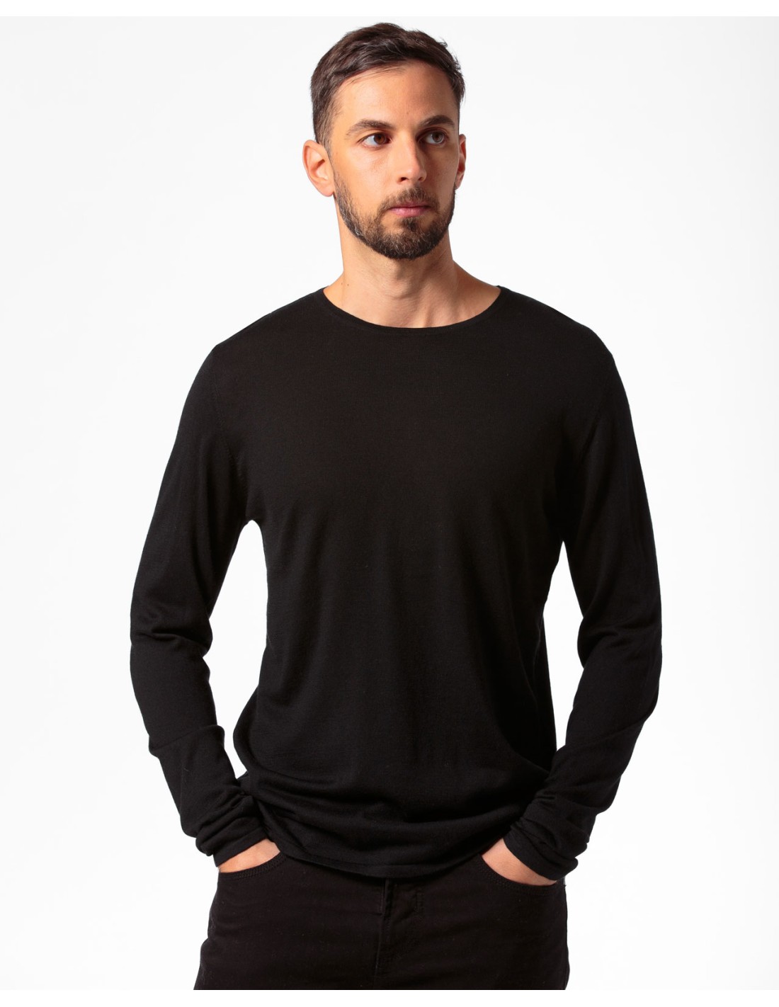 Il girocollo classico, le maniche lunghe e le finiture a roll rendono questo capo essenziale e raffinato allo stesso tempo.