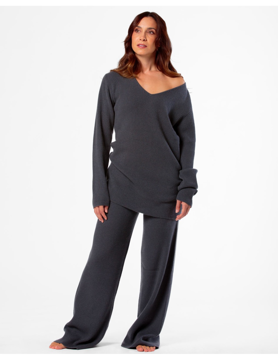 È un modello estremamente versatile: si indossa da solo come mini abito, oppure con leggings e pantaloni per un effetto più sportivo e confortevole. Diventa elegante se abbinato a una gonna o completato con una cintura in vita. È un capo pensato per adattarsi con naturalezza a ogni contesto: perfetto come look da lavoro, come maglione raffinato per una cena o come capo da casa per chi ama il comfort senza rinunciare allo stile.