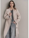 La forma è squadrata, il filato a tricot è grosso, naturale, leggermente melange e lavorato in soluzione di continuità senza cuciture. Capo interamente realizzato in Scozia con la qualità tradizionale originale di un indumento realizzato a mano.