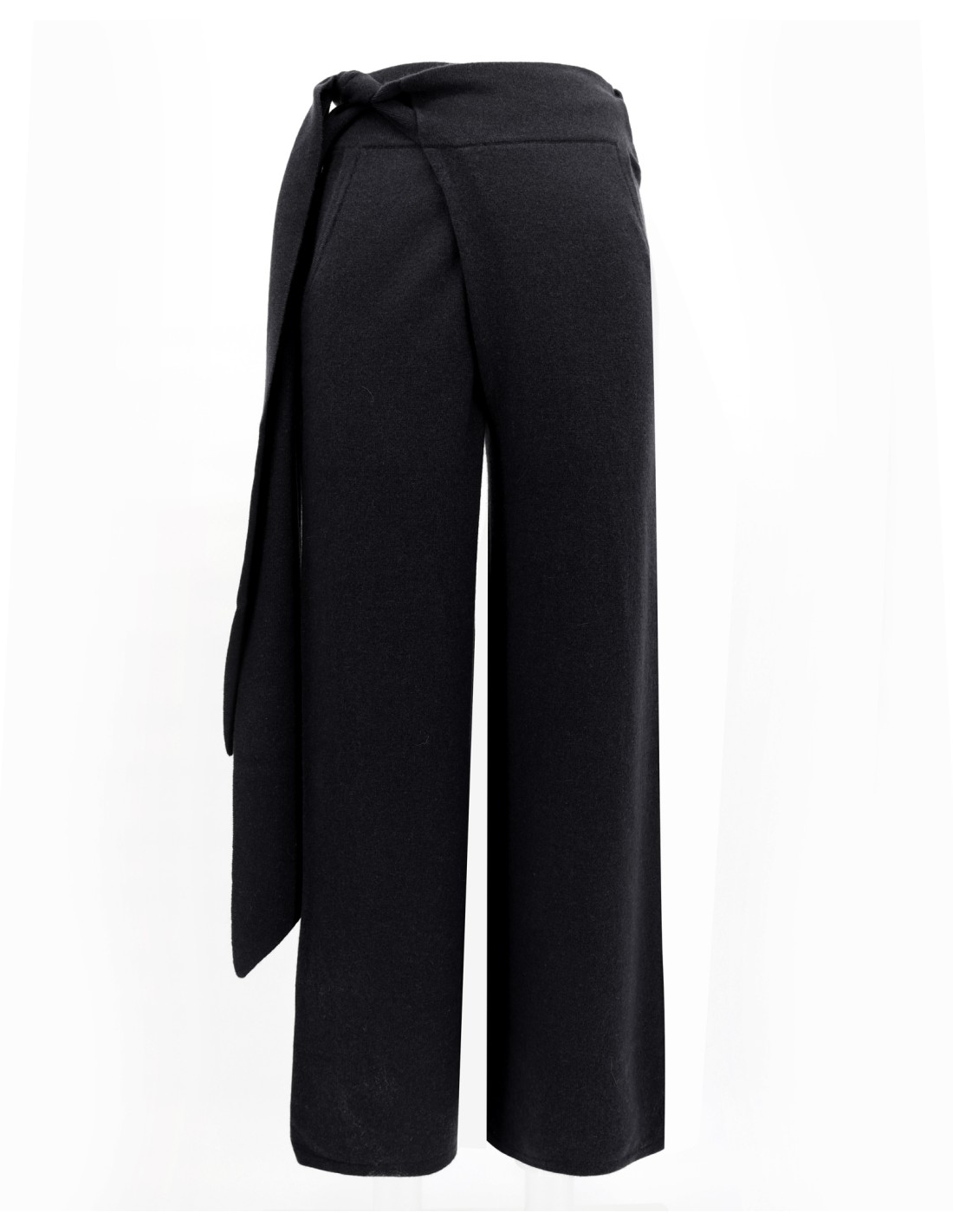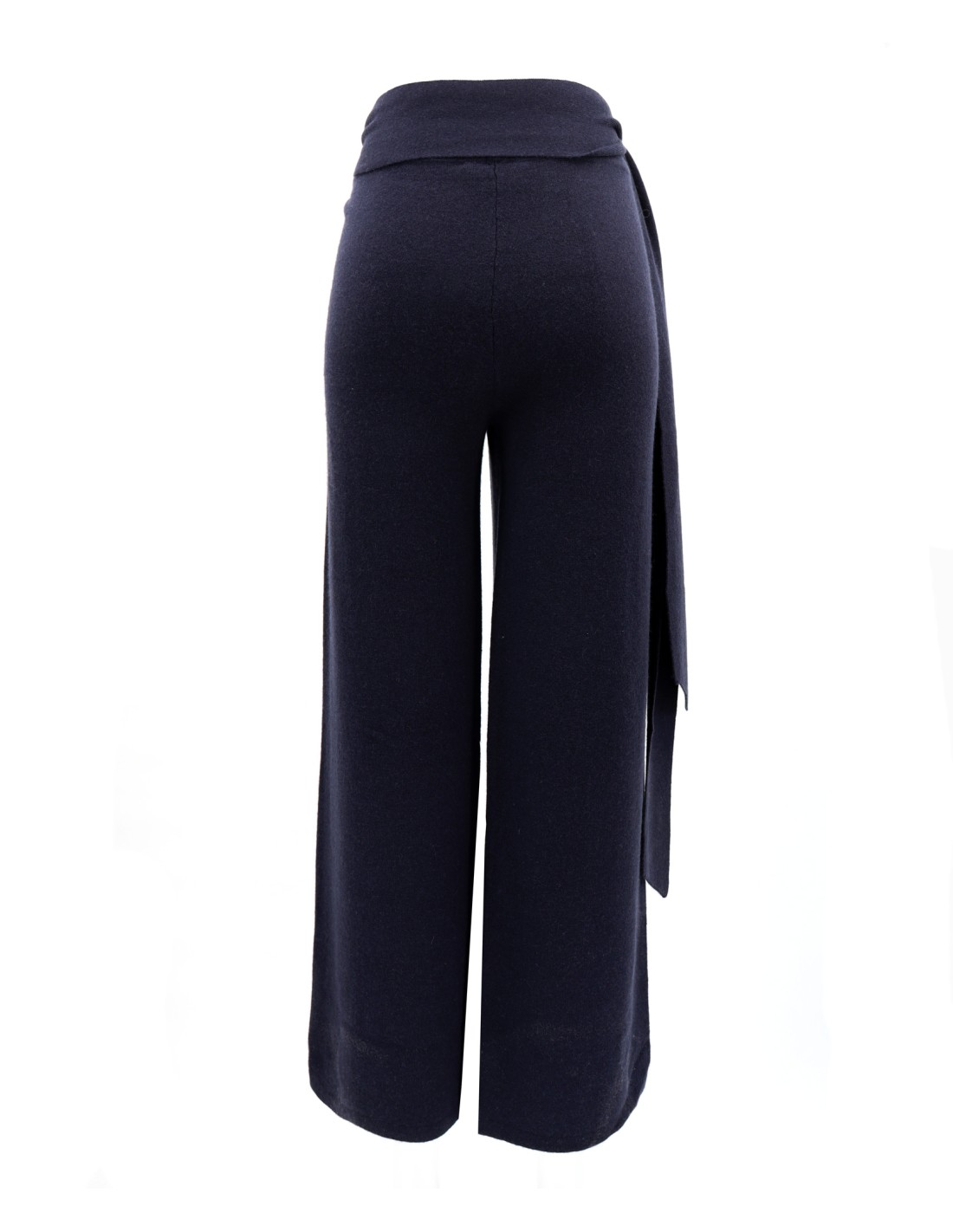Pantalone dritto in lana merino e cashmere con taglio dritto e chiusura wrap in vita. Linea fluida, gamba larga e vita alta con cintura lunga da annodare. Morbido, elegante e confortevole, perfetto con le maglie Astral e Luna della collezione Eclypse.