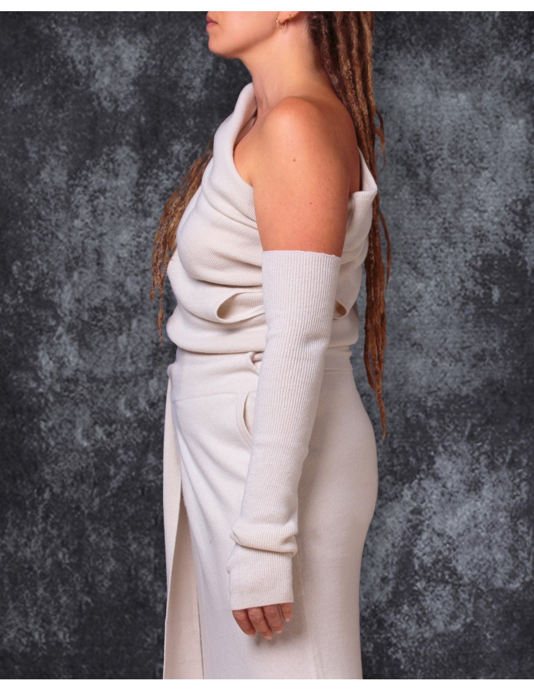 Scaldabraccia lunghi in lana merino e cashmere con foro per il pollice. Morbidi, caldi e sensuali, completano la maglia smanicata Luna della collezione Eclypse diventandone le maniche. Perfetti anche da soli per un look elegante e misterioso.Lunghezza totale 60 cm.