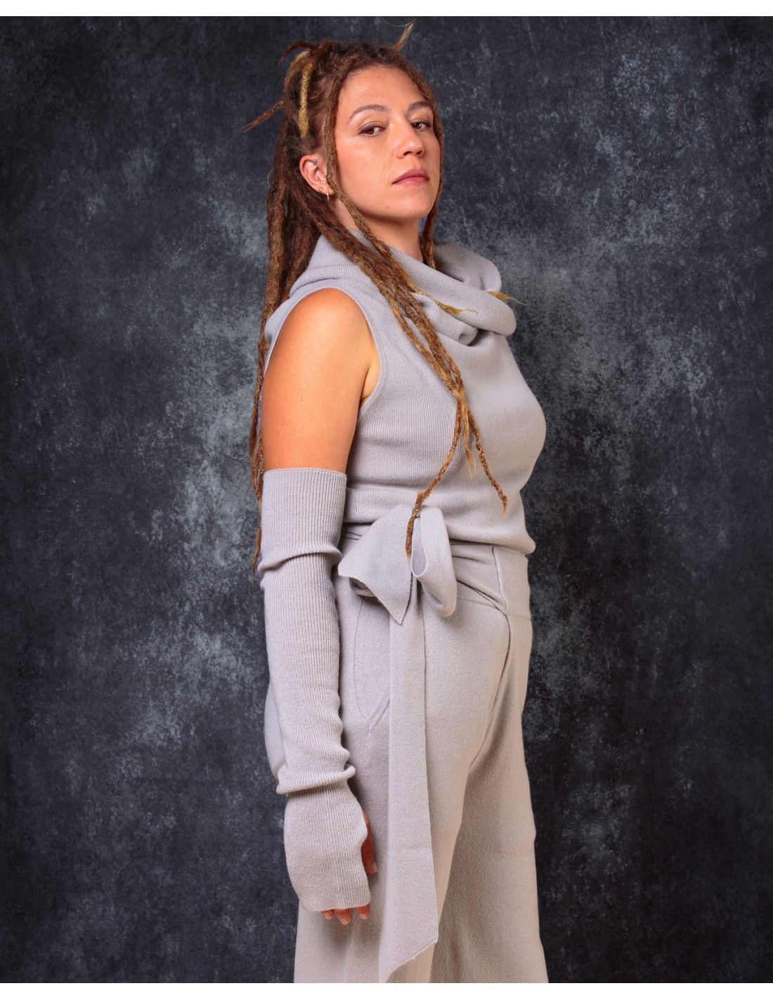Indossati con la maglia Luna, creano una continuità visiva perfetta, una silhouette fluida che si muove con grazia. Ma i MYSTIC sono anche bellissimi da soli, sopra abiti, camicie o cappotti, per aggiungere calore e stile a qualsiasi outfit.